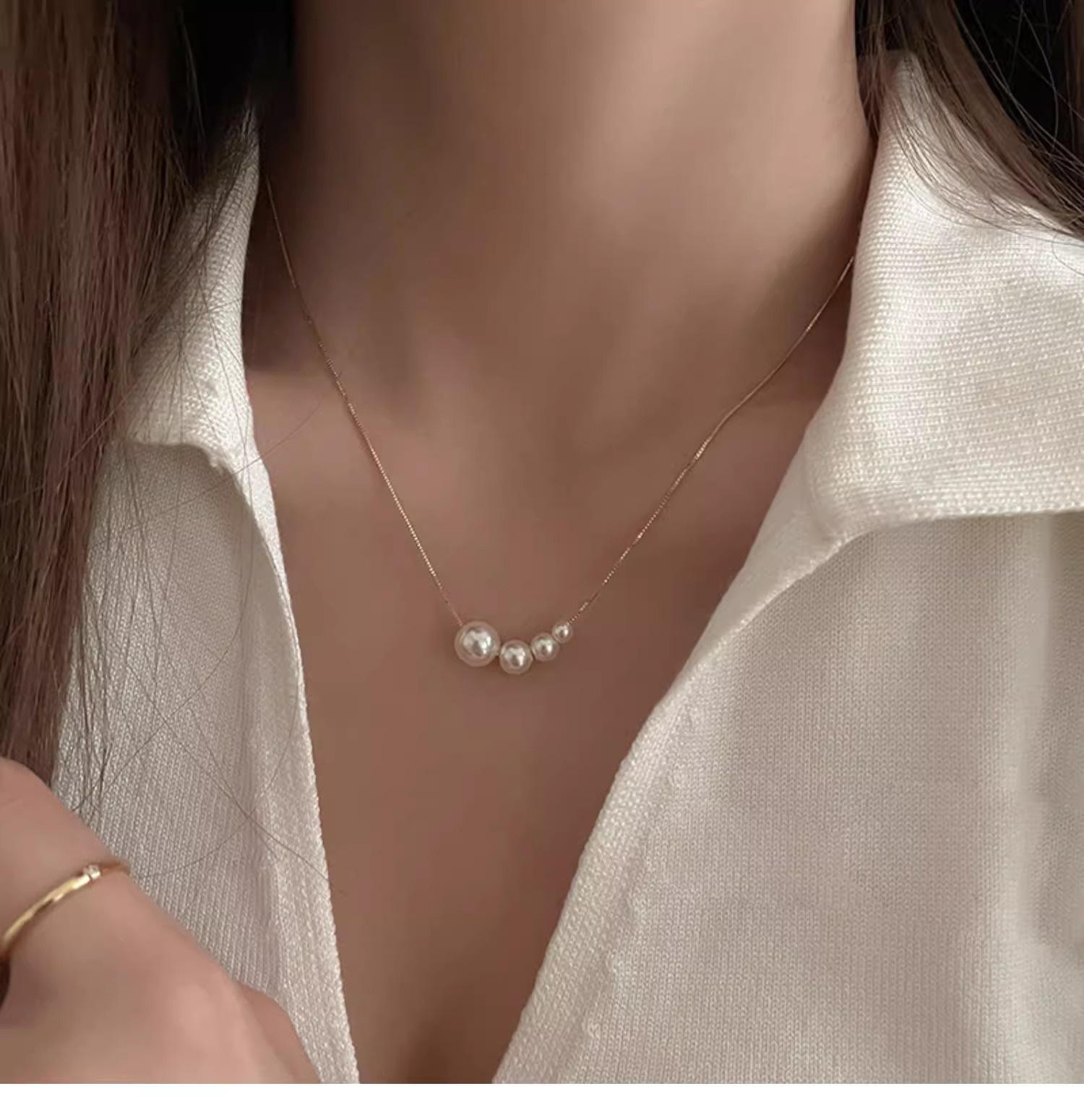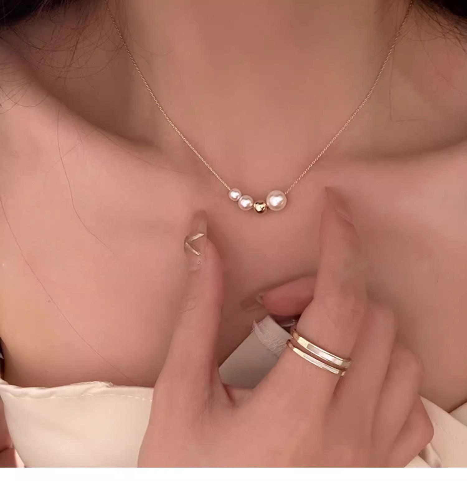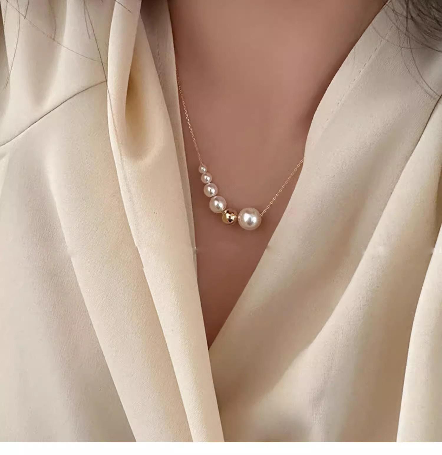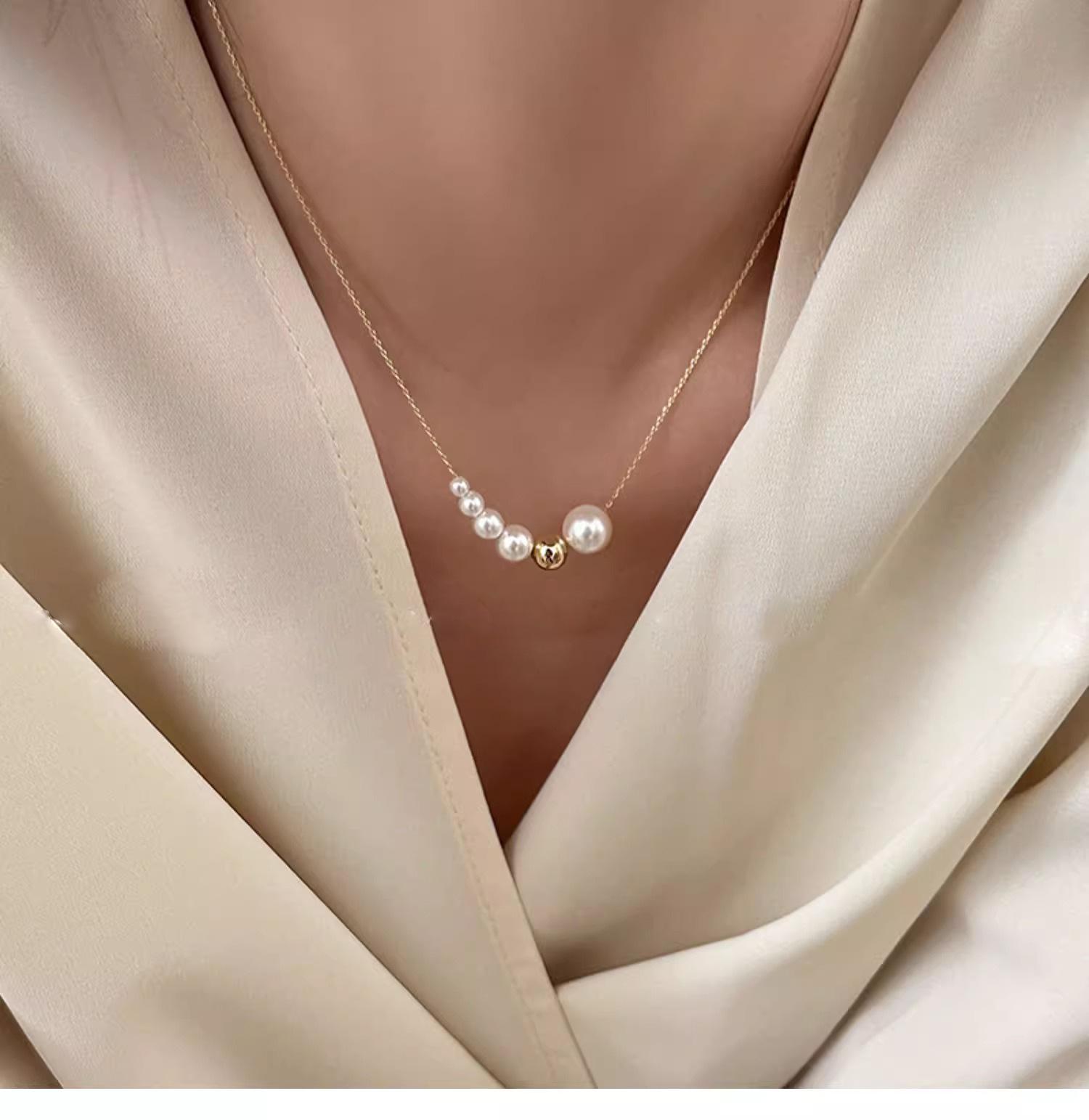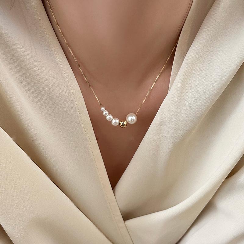 Large and small pearl clavicle chain, Large and small pearl love clavicle chain, Silver chain large and small bead clavicle chain