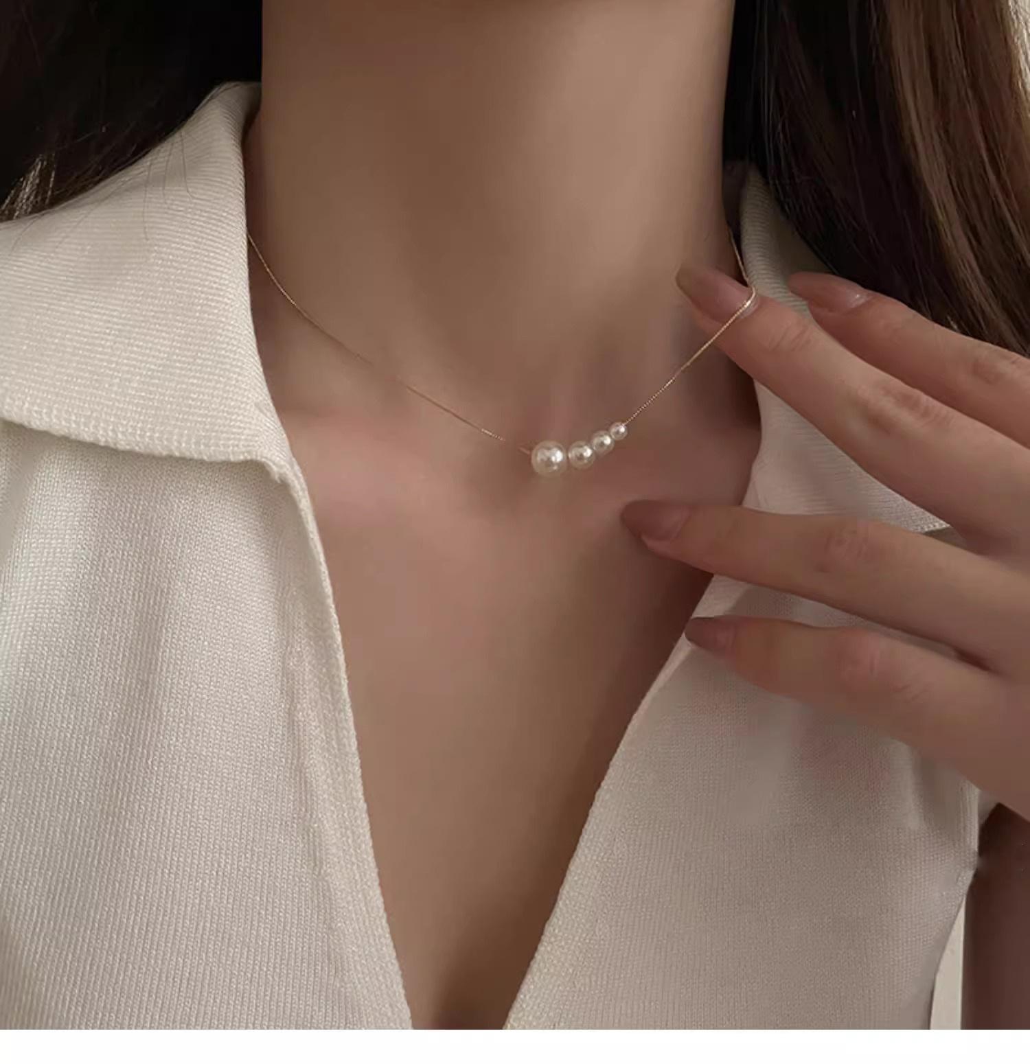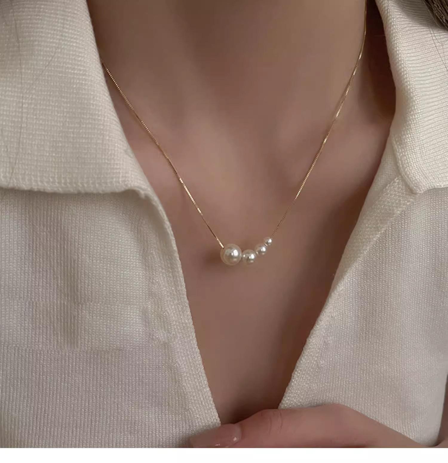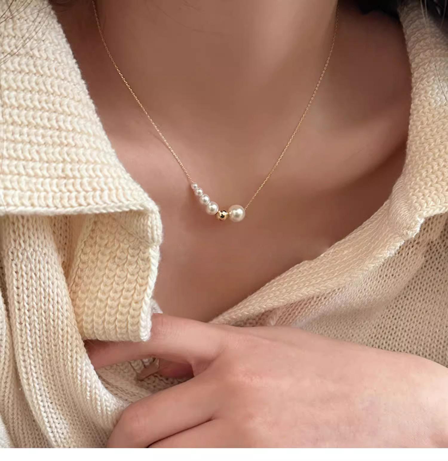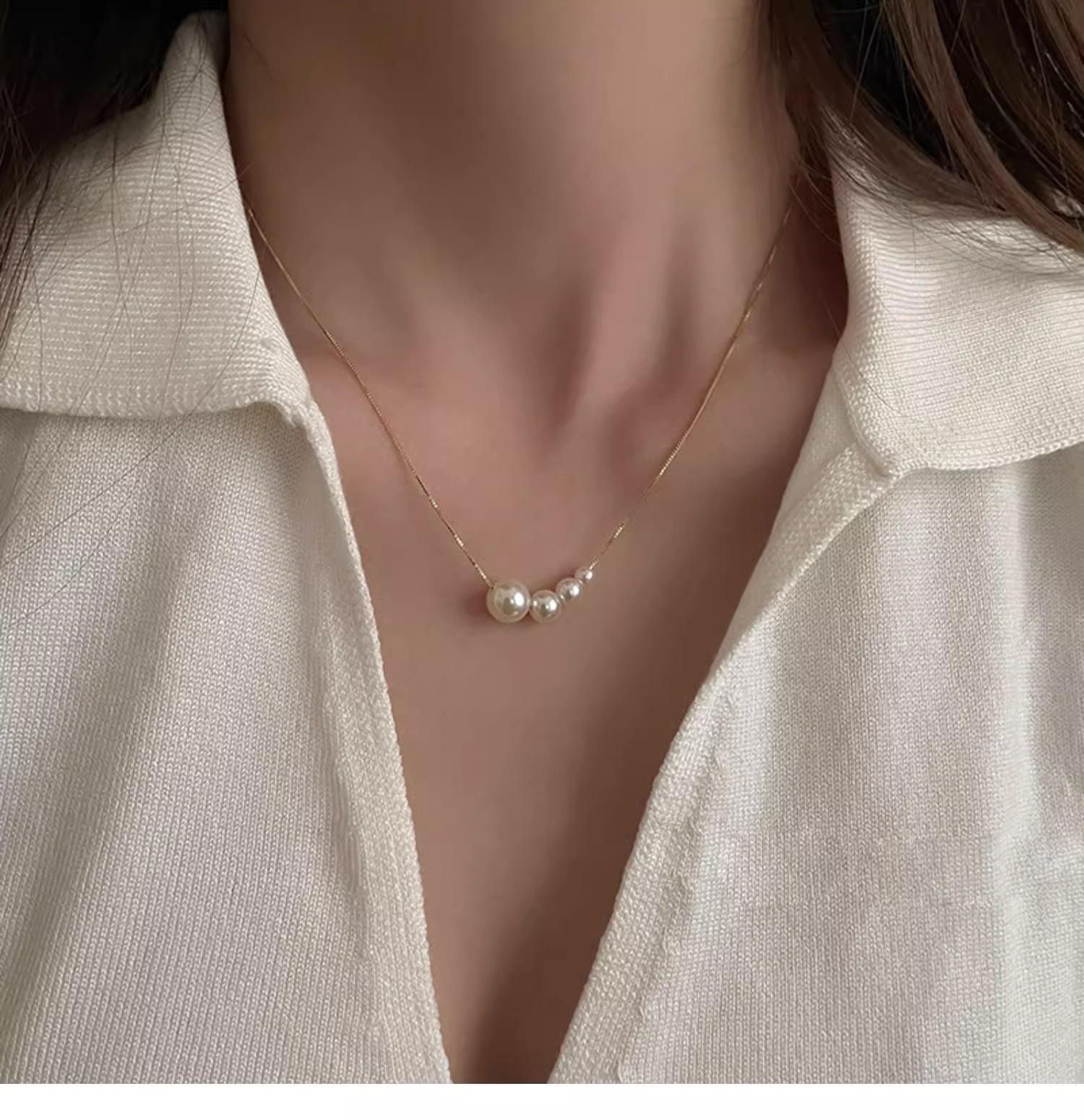 Large and small pearl clavicle chain, Large and small pearl love clavicle chain, Silver chain large and small bead clavicle chain