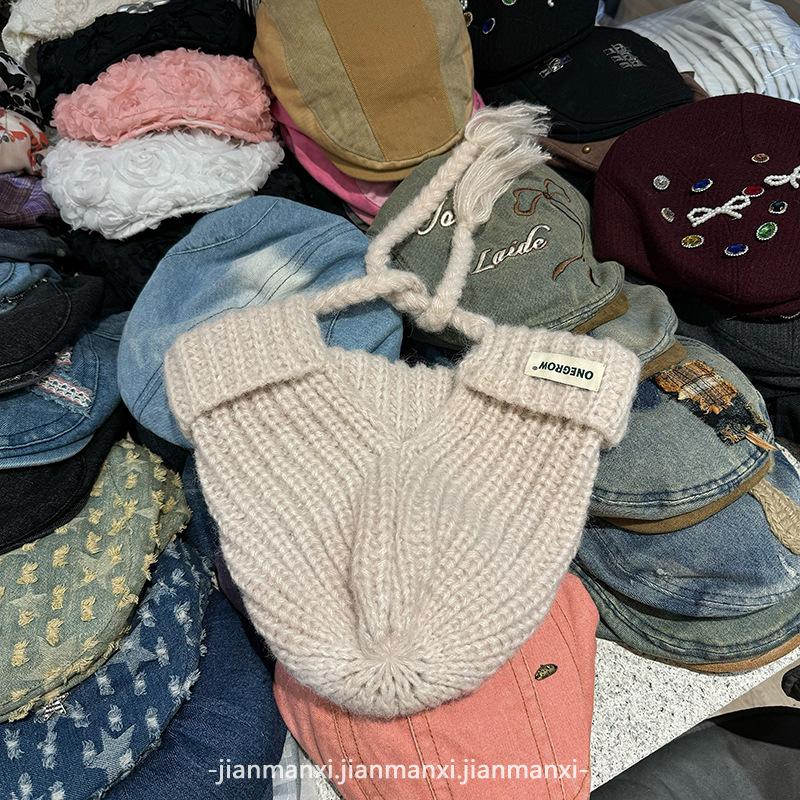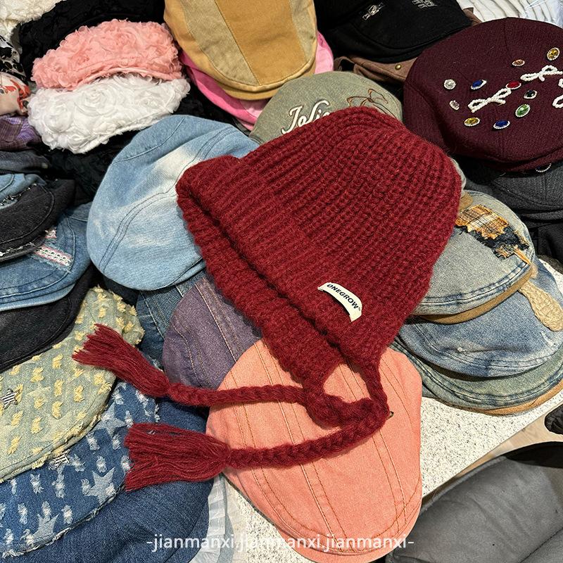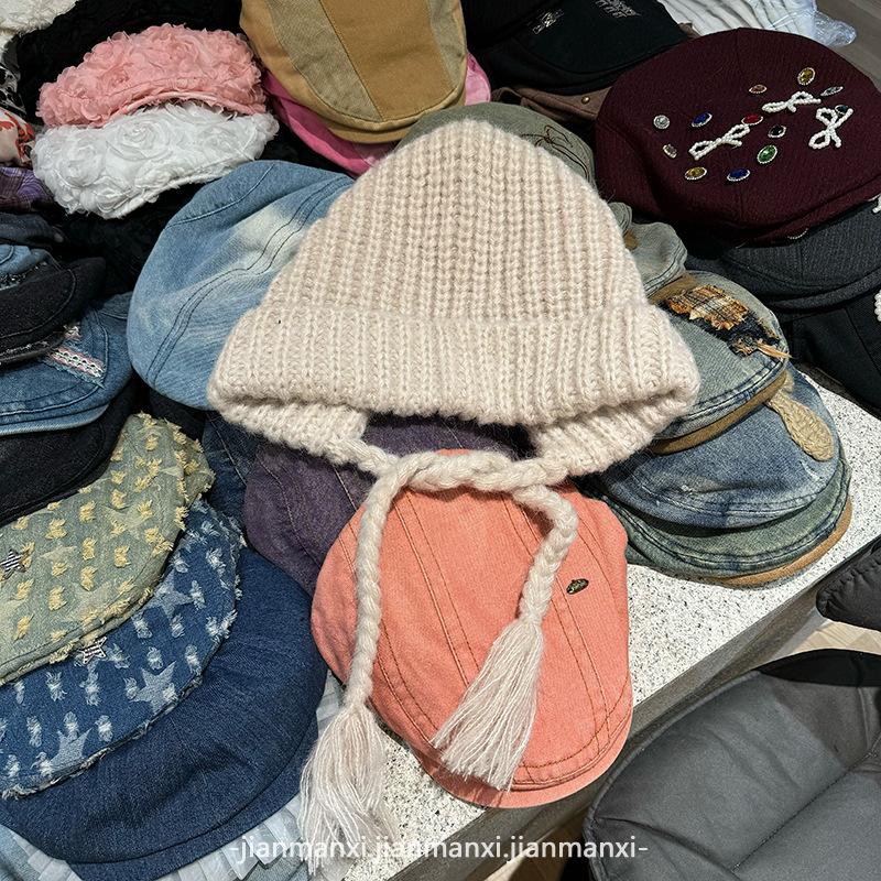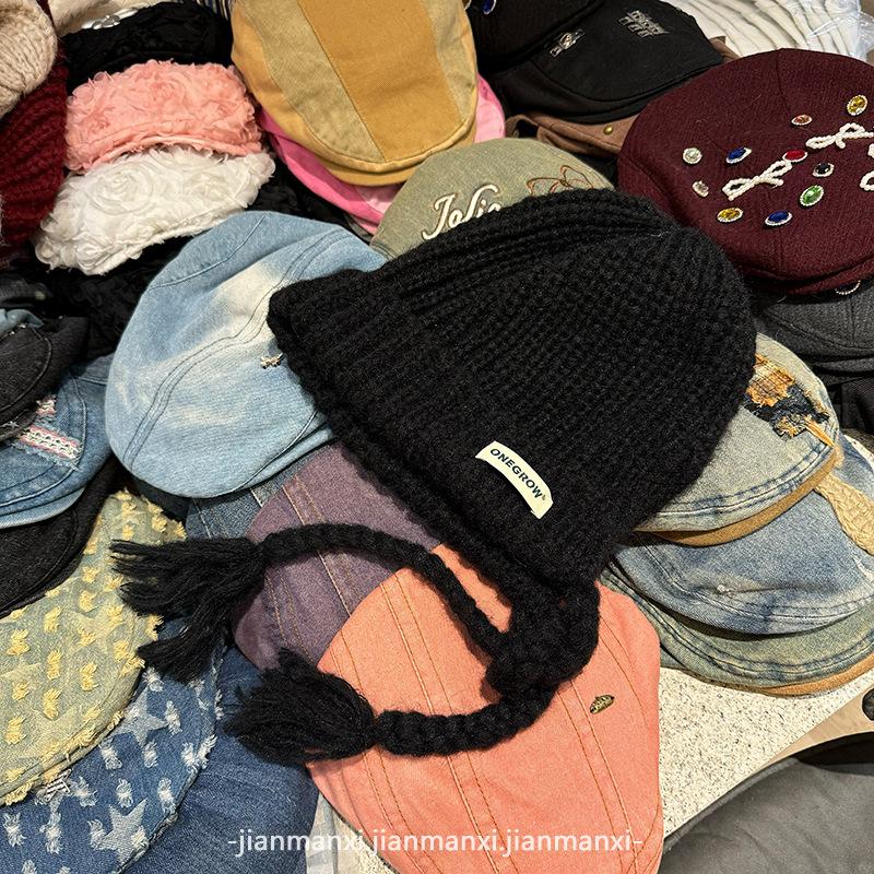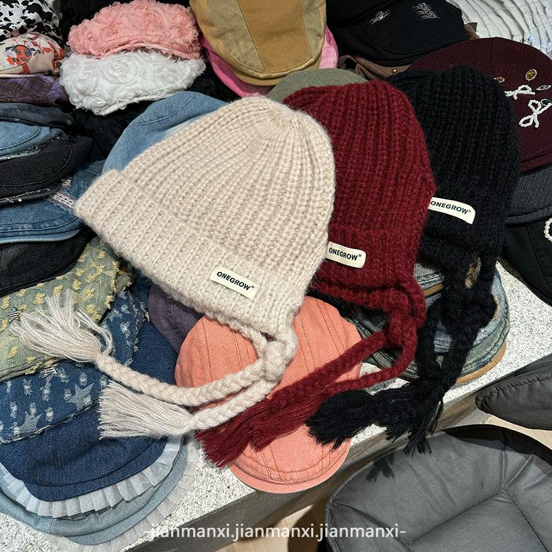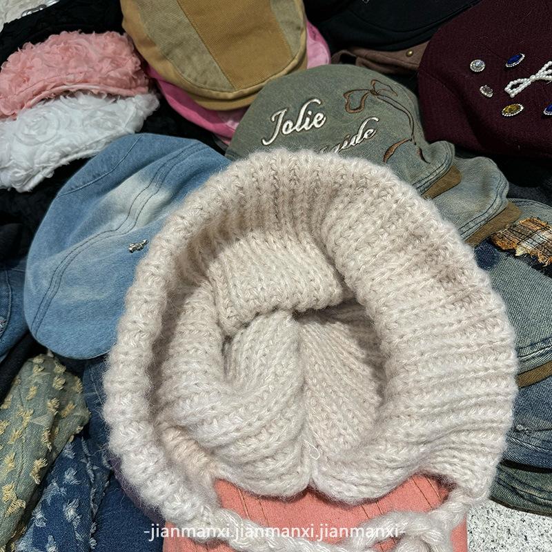 Gorro de lana de color sólido, bonito y dulce, estilo coreano, para niños, otoño e invierno, cálido, con protección para las orejas, gorro Lei Feng de punto, gorro volador.