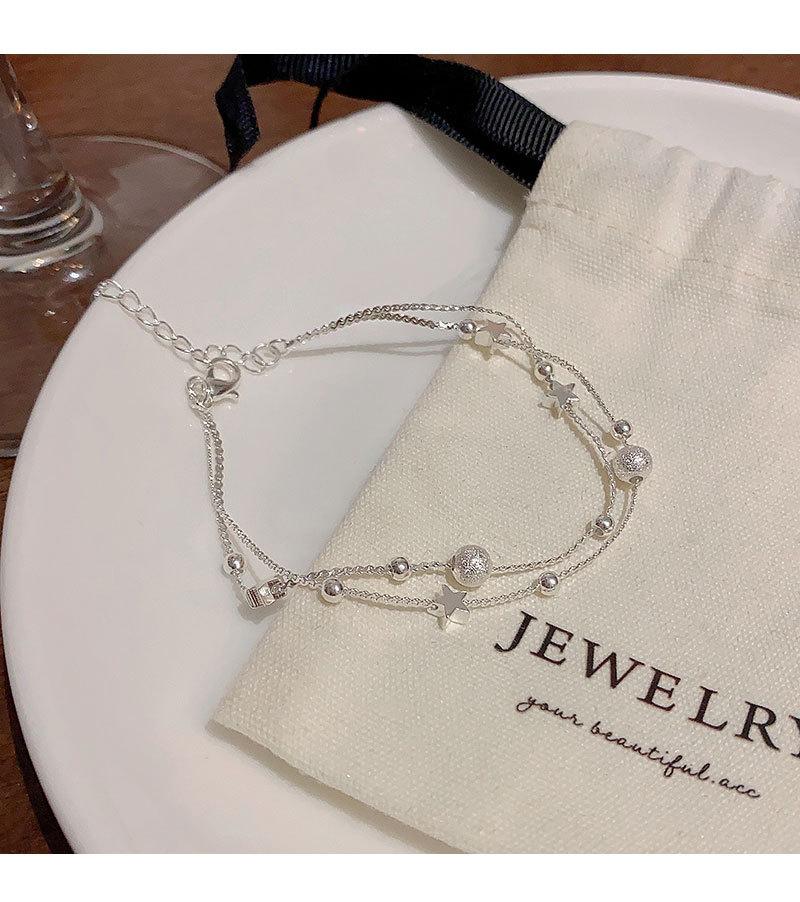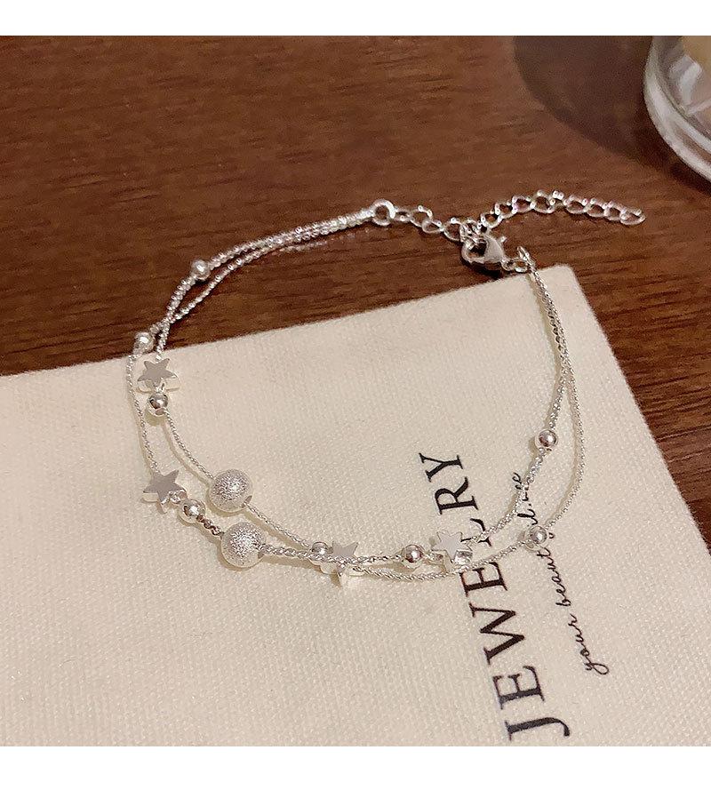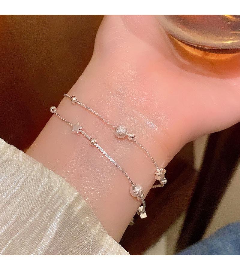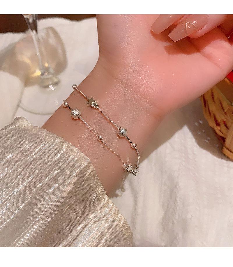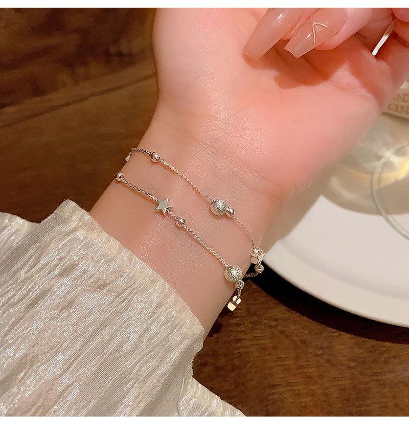 Pulsera de Bola Estrella Escarchada Plateada de Doble Capa para Mujer, Pulsera Nicho Exquisita de Lujo Ligero, Nuevo Estilo, Pulsera para Novia