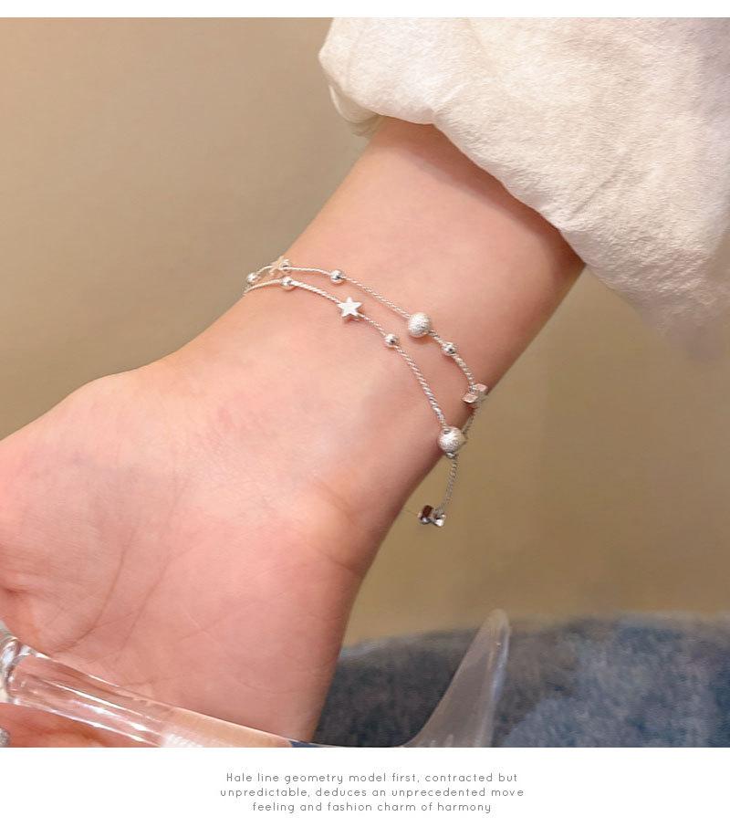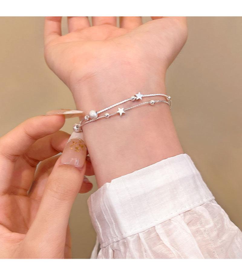 Pulsera de estrella de bolitas pequeñas plateadas esmeriladas de doble capa para mujer, pulsera exquisita de nicho de lujo ligero de alta gama, joyería de mano para nuevas novias