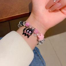 Pulsera de estrella con cuentas de gato monstruo negro para mujer, estilo dulce y cool, pulsera nicho y versátil para chica hot, joyería de mano popular