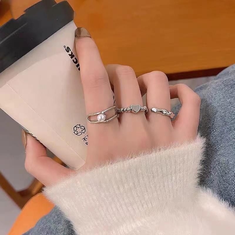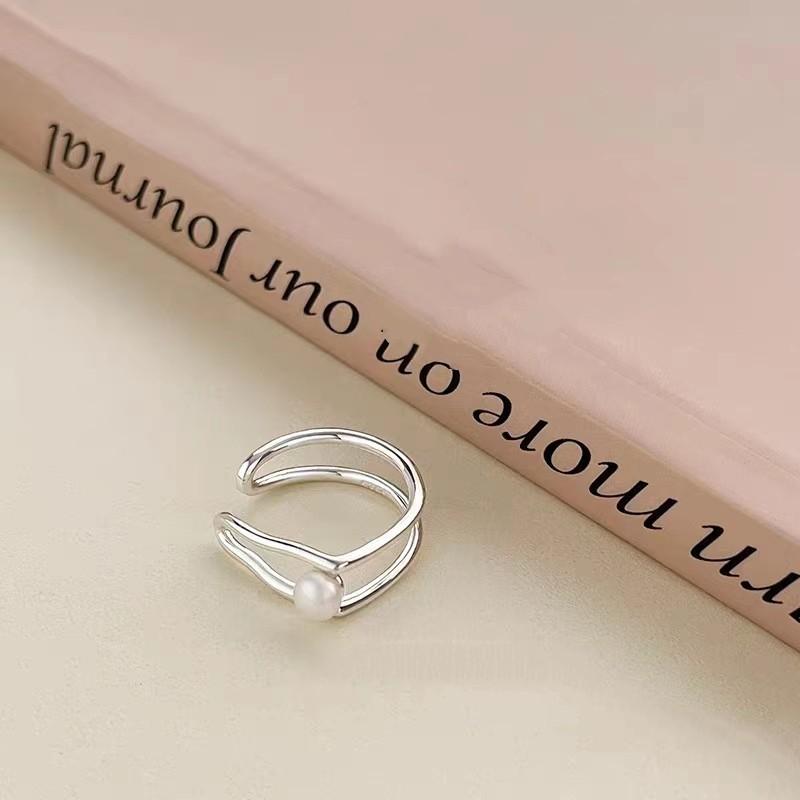 Anillo de Perlas Irregular Simple de Doble Capa para Mujer Ins Nicho Elegante Diseño Versátil Sentido Anillo Abierto Trendy