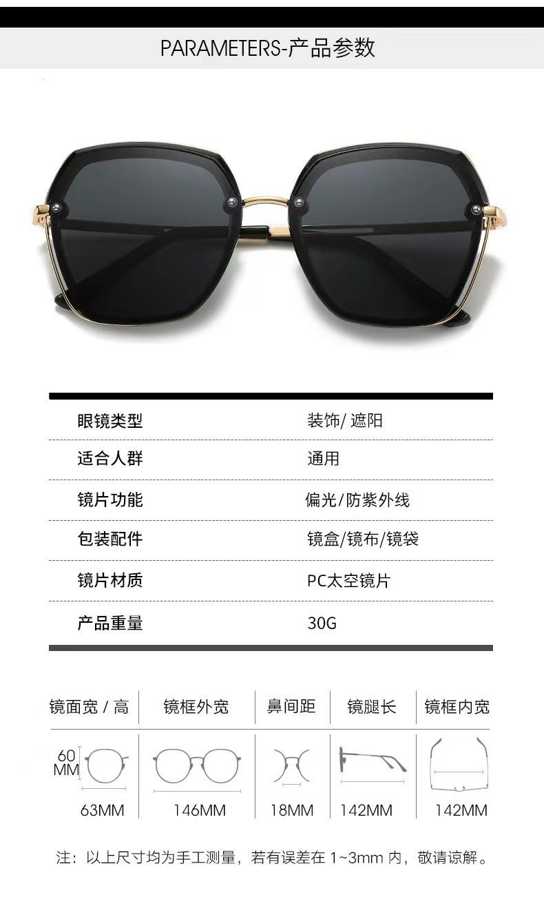 Gafas de sol de estilo coreano 2023 para mujer, nuevas gafas de sol polarizadas anti-UV de verano, de cara redonda grande y populares.