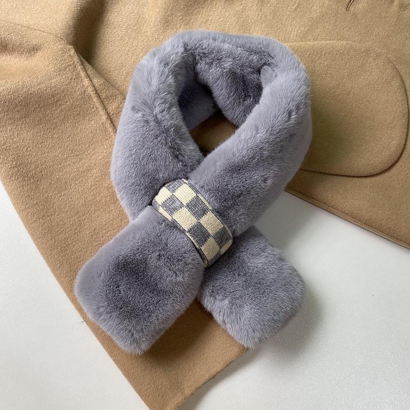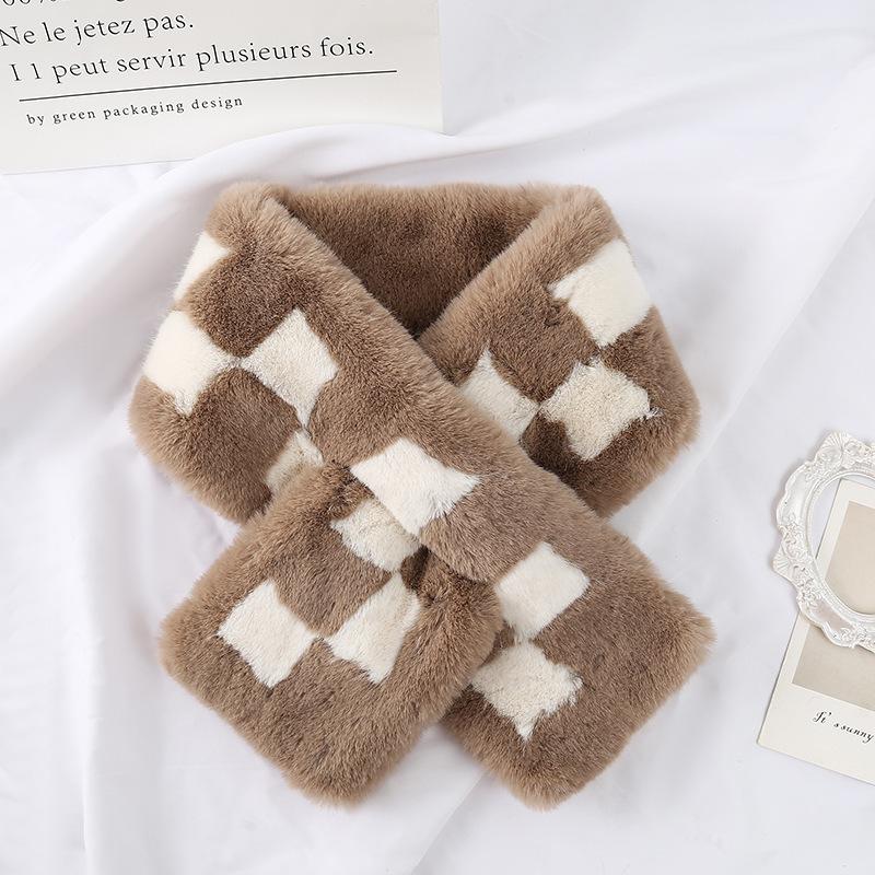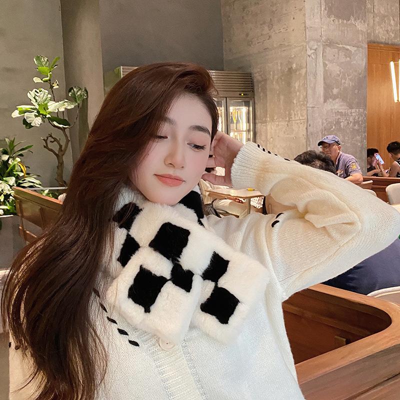Bufanda a cuadros de tablero de ajedrez para mujer, invierno, estilo coreano, Ins, combina con todo, cruzada, felpa para el cuello, linda, para niña, manga cálida para el cuello