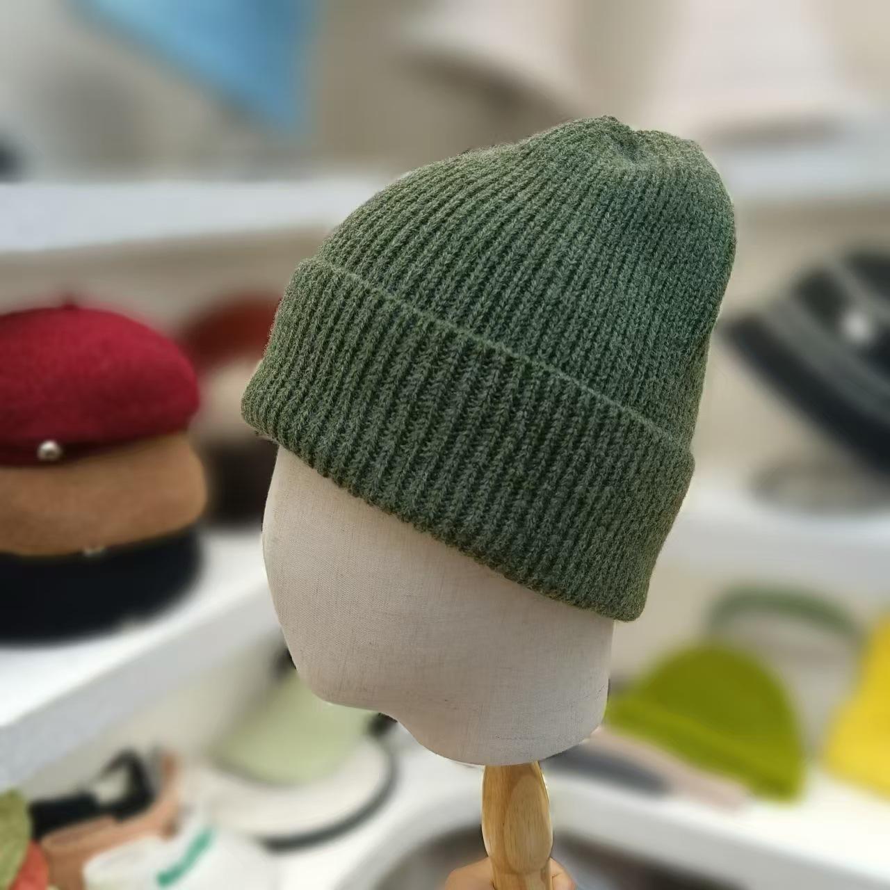 Gorro de punto de otoño e invierno para mujer, moda de cachemira, estilo coreano, cálido gorro de lana, color sólido, con vuelta, para hombre, moderno