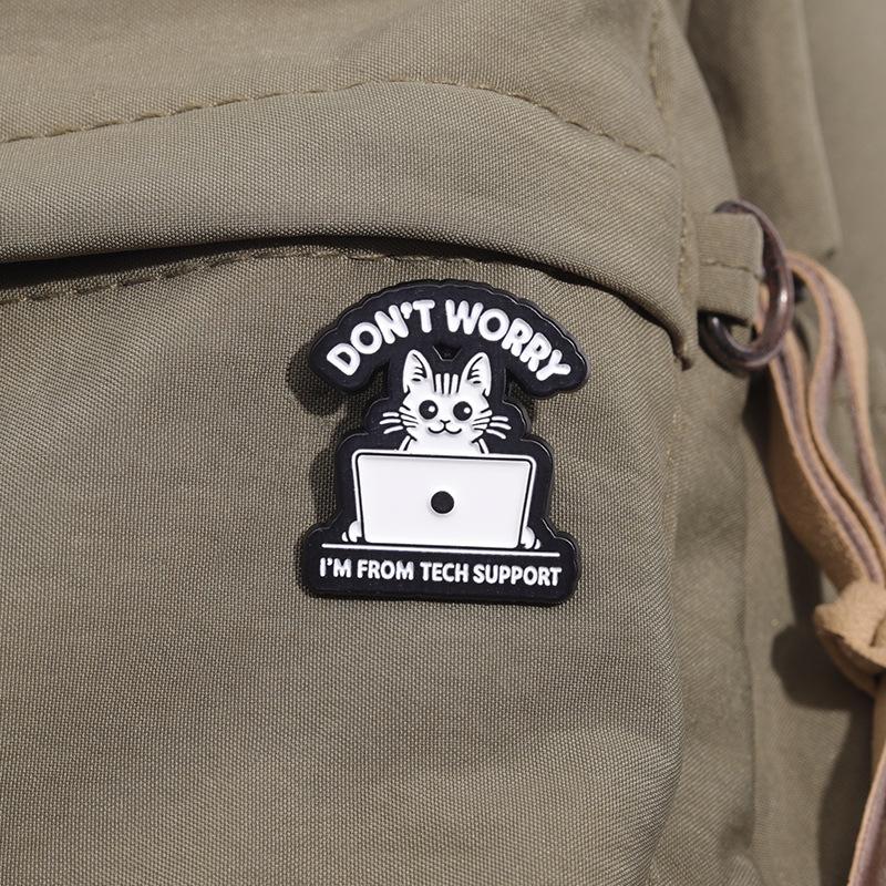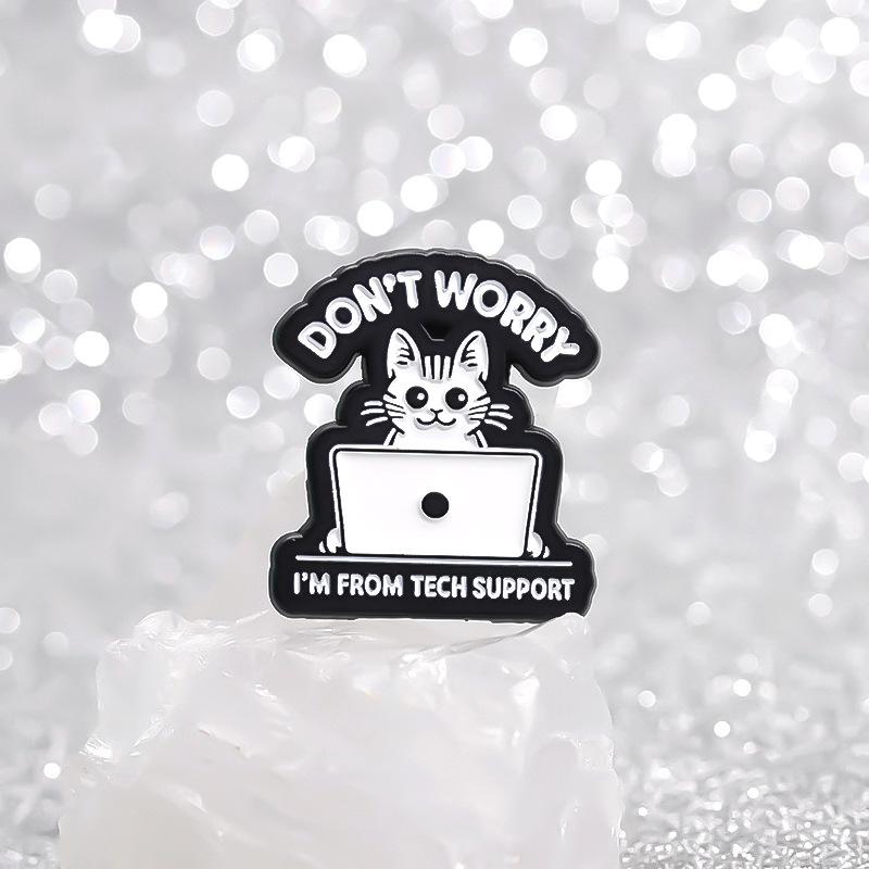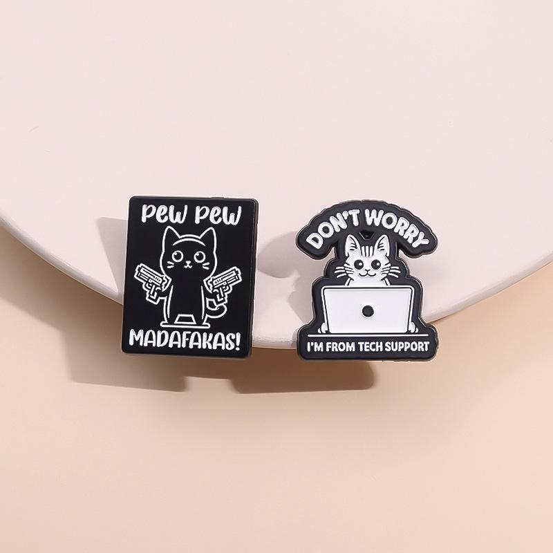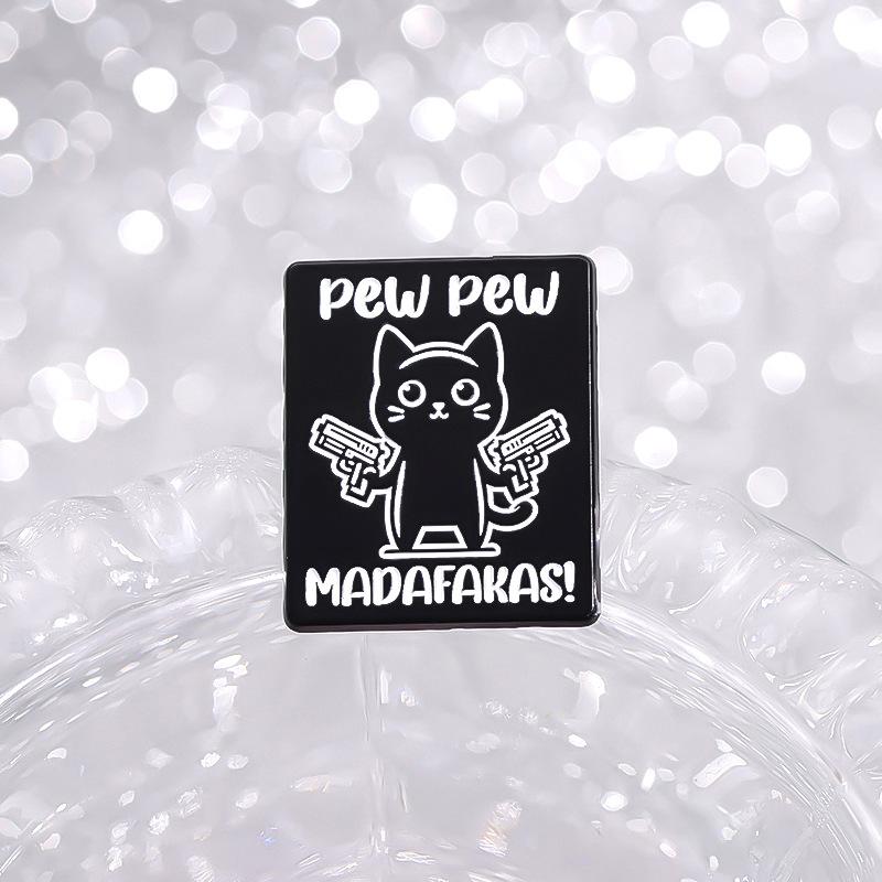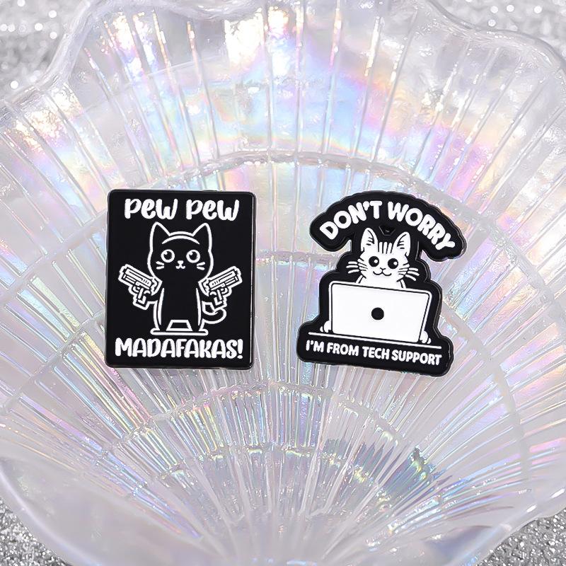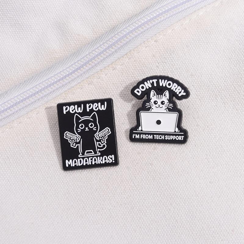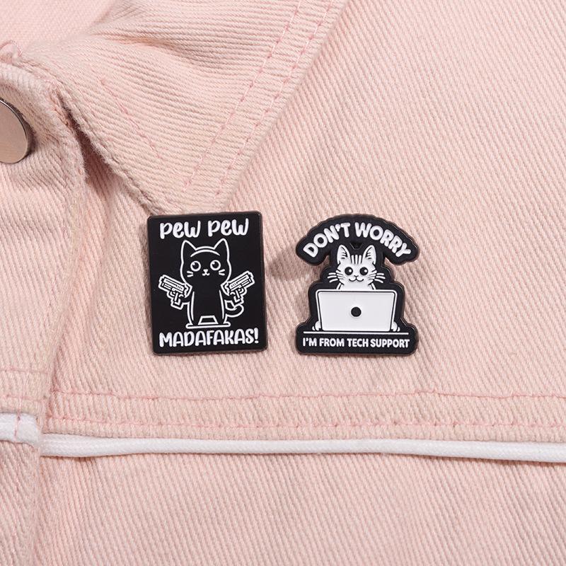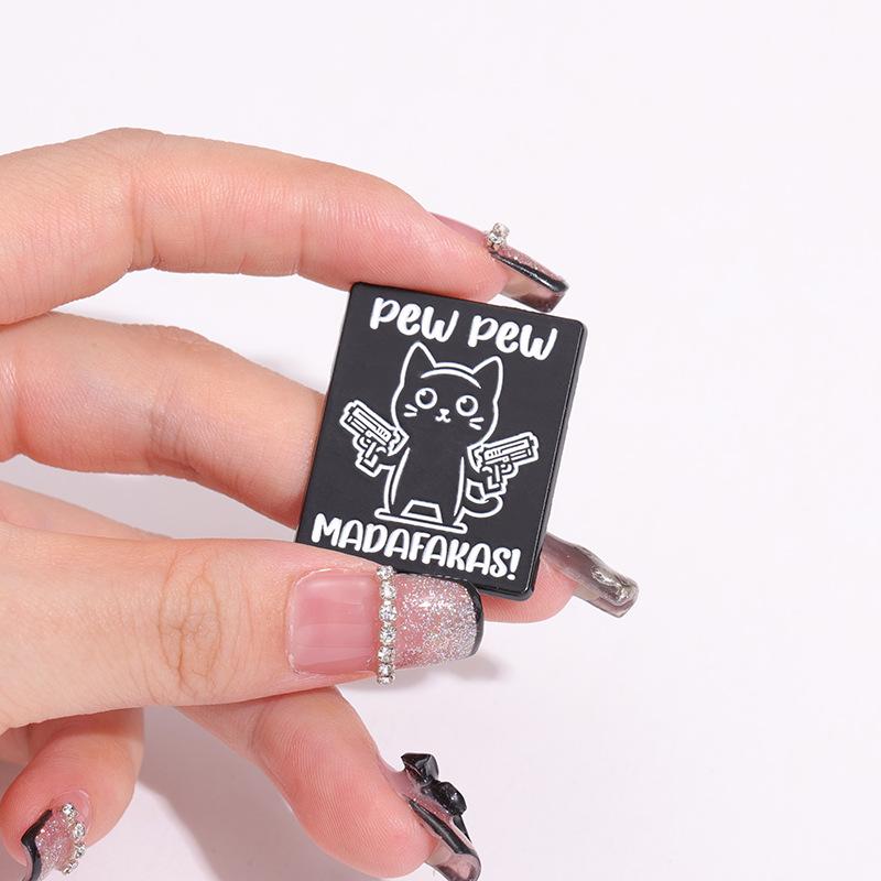 Interesante Divertido Dibujo Animado Animal Gato Levantar Pistola Golpear Teclado de Computadora Modelado Broche de Metal Personalidad Insignia Blanco y Negro