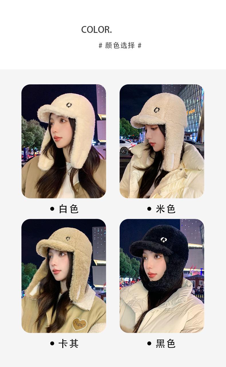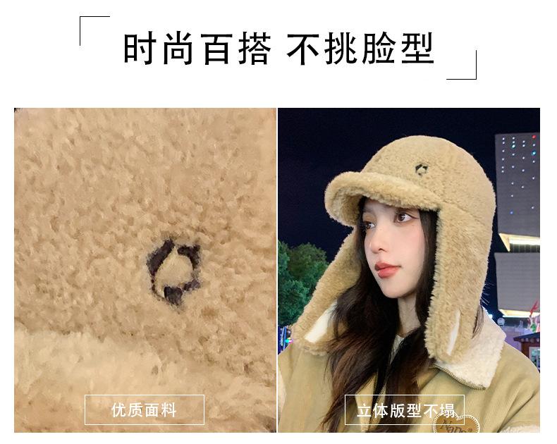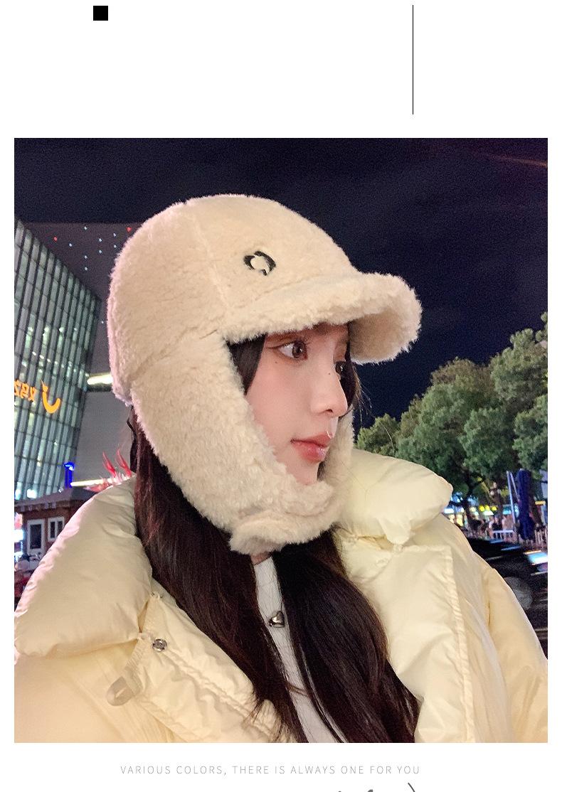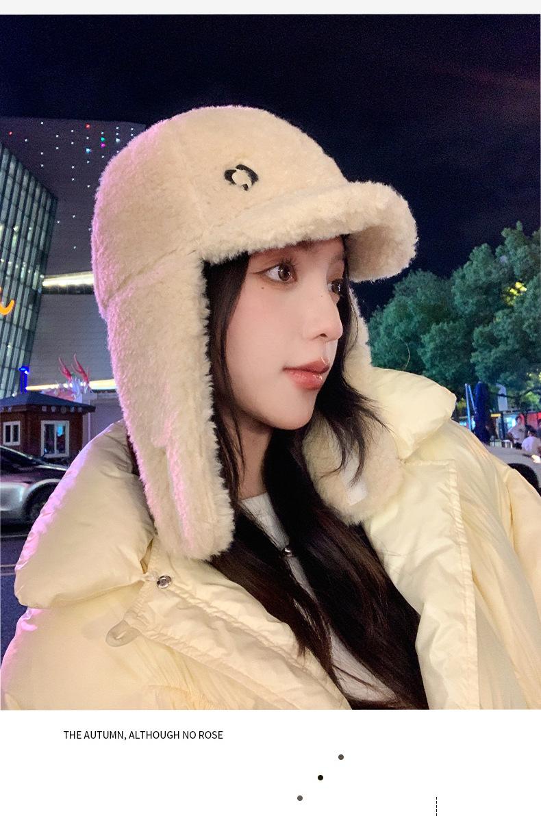 Sombrero de Mujer Estilo Coreano Otoño e Invierno Nuevas Gorras de Felpa Invierno Cálido Gorro con Protección para las Orejas para Montar a Prueba de Frío Grueso Gorro Lei Feng