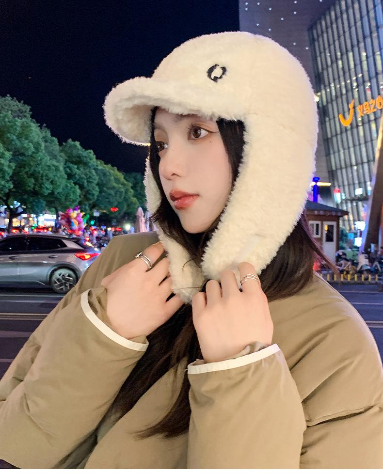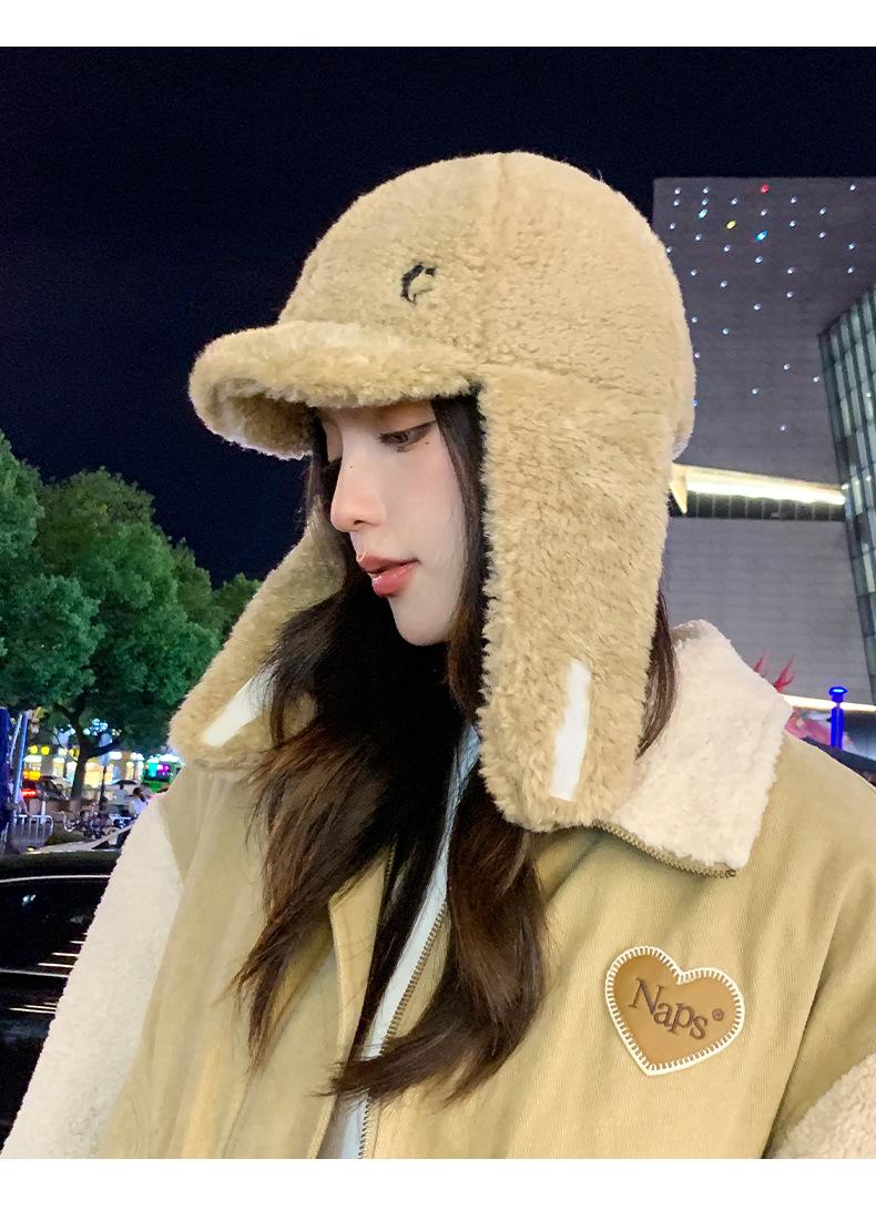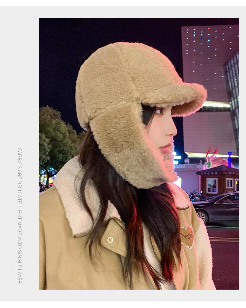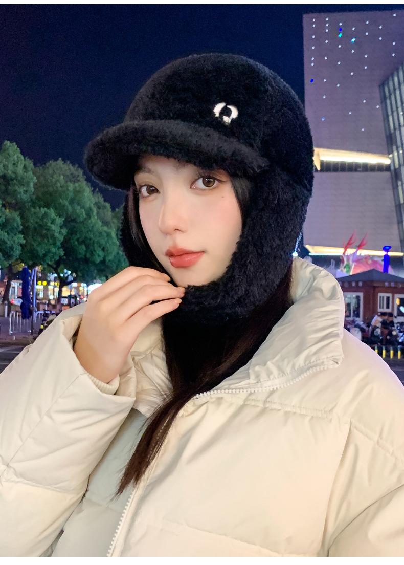 Sombrero de Mujer Estilo Coreano Otoño e Invierno Nuevas Gorras de Felpa Invierno Cálido Gorro con Protección para las Orejas para Montar a Prueba de Frío Grueso Gorro Lei Feng
