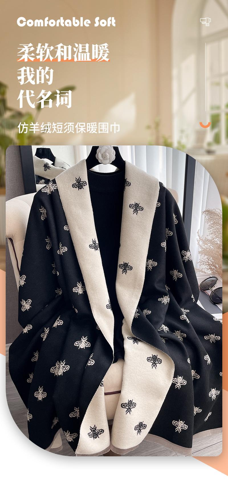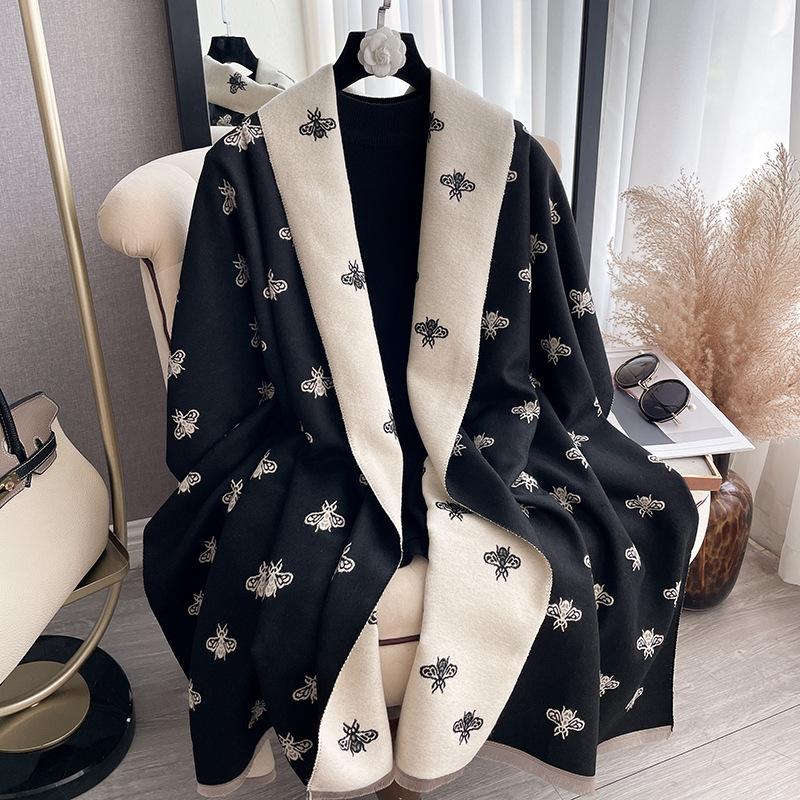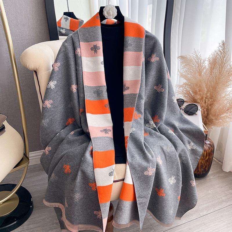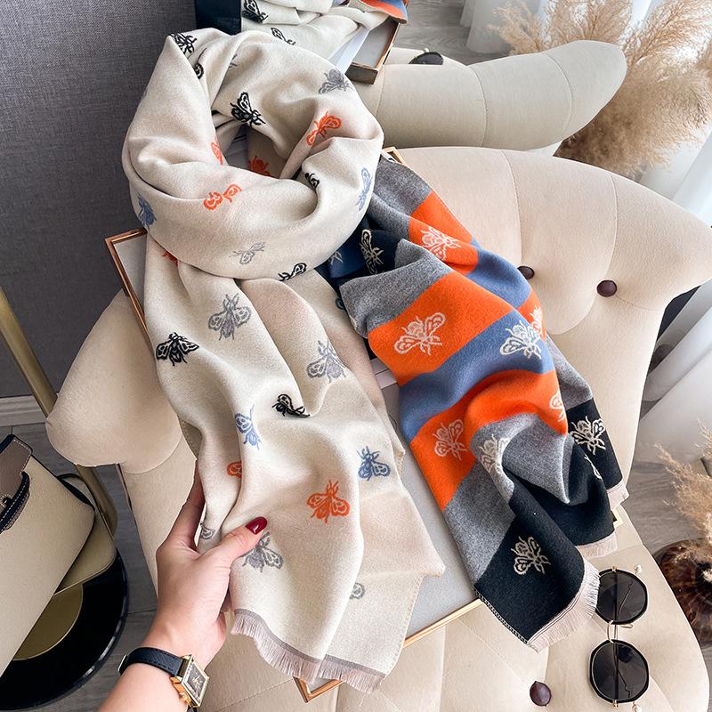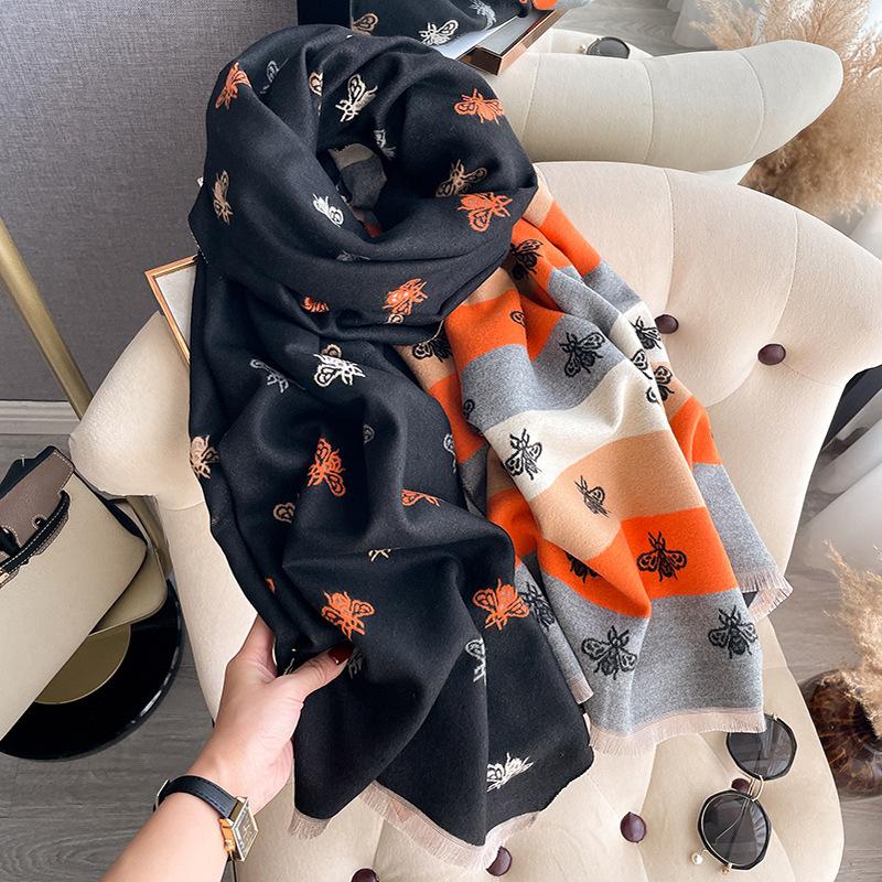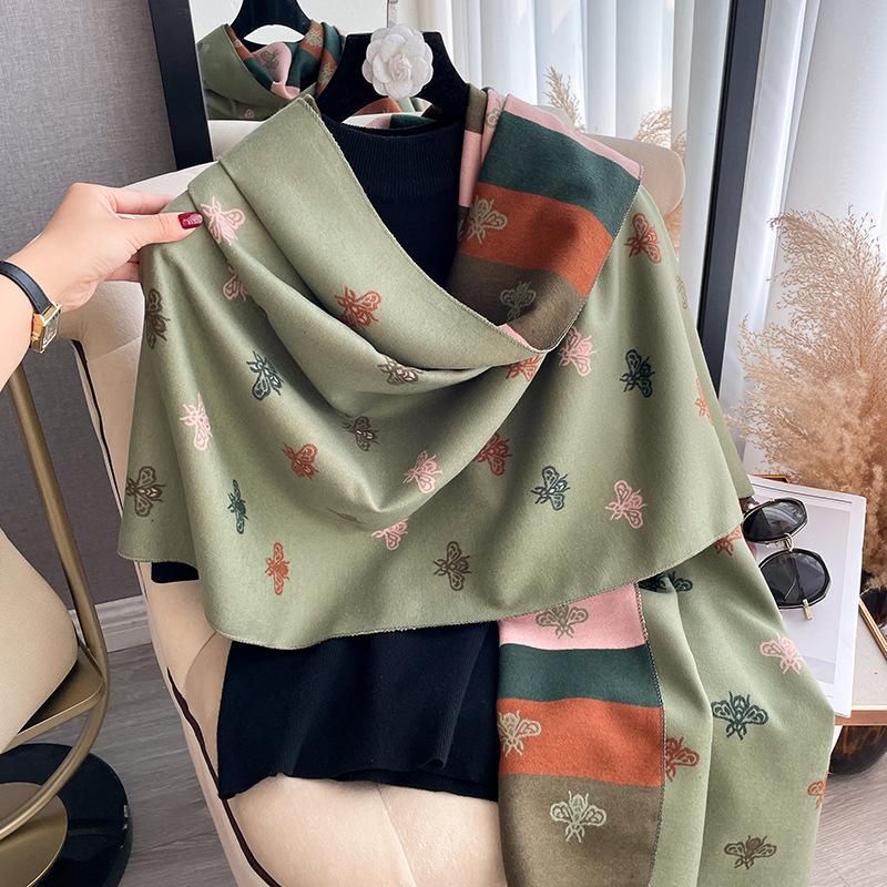 Bufanda de cachemira de alta gama para mujer, nueva bufanda de invierno con estampado de mariposas de doble cara, cálida y cálida para habitación con aire acondicionado.