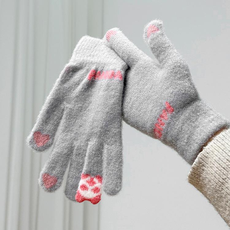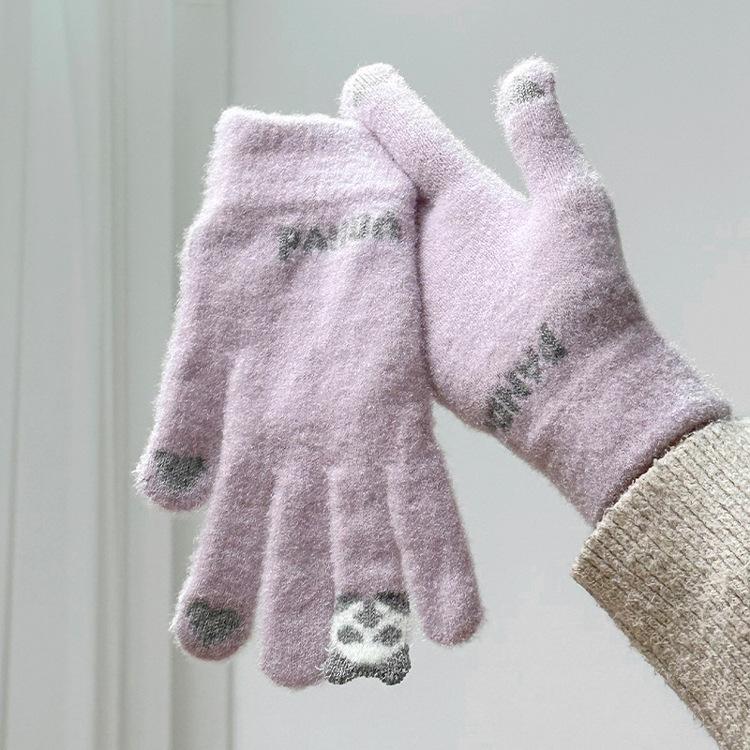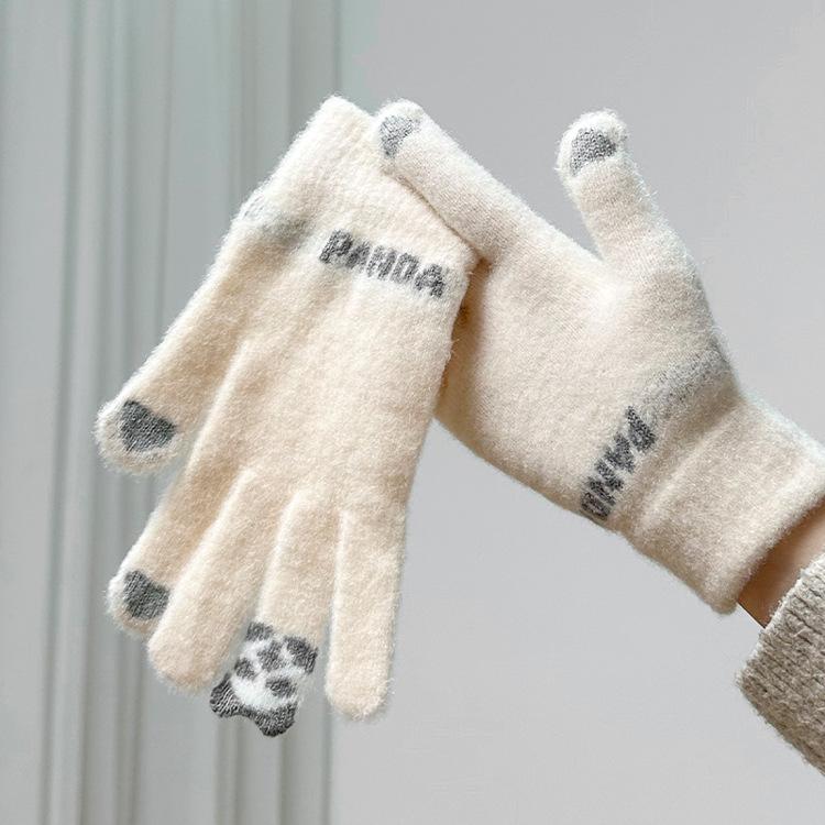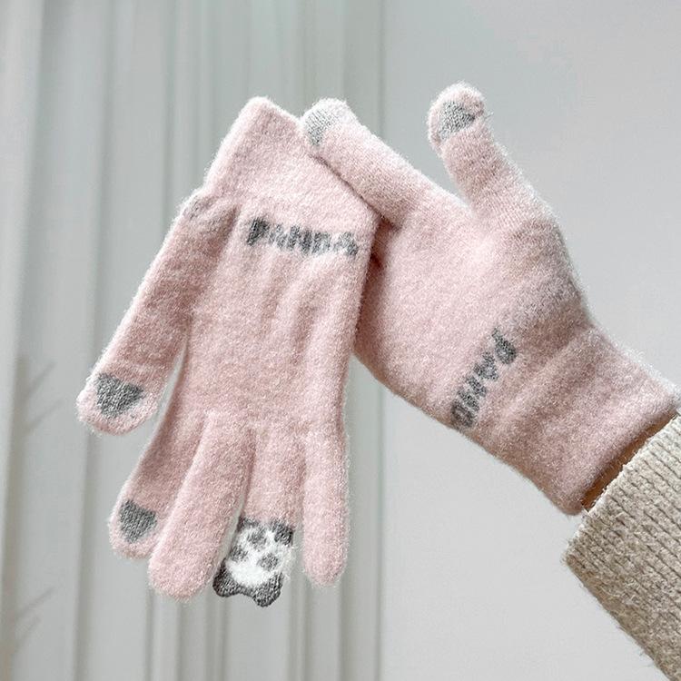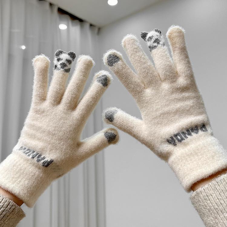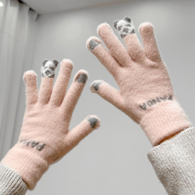 Guantes de invierno para ciclismo, nuevos guantes de imitación de piel de conejo de peluche para mujer, forrados de vellón, cálidos y bonitos, a prueba de frío, para estudiantes de 2024.