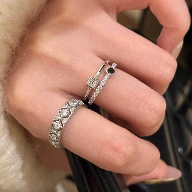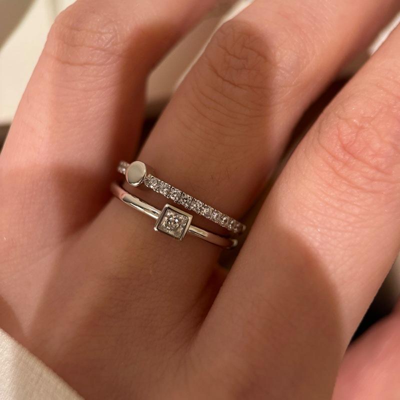 Silver micro-embedded double layer small square diamond ring