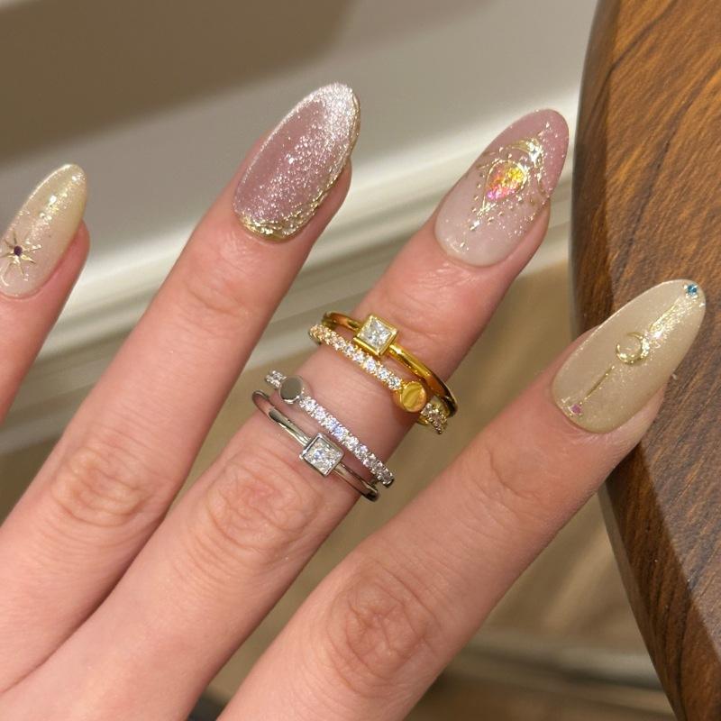 Gold micro-embedded double layer small square diamond ring