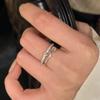 Anillo Francés Retro Micro-incrustado de Zircón Doble Capa Diamante Cuadrado Pequeño Diseño de Nicho Lujo Ligero de Alta Gama Simple Elegante Anillo de Dedo