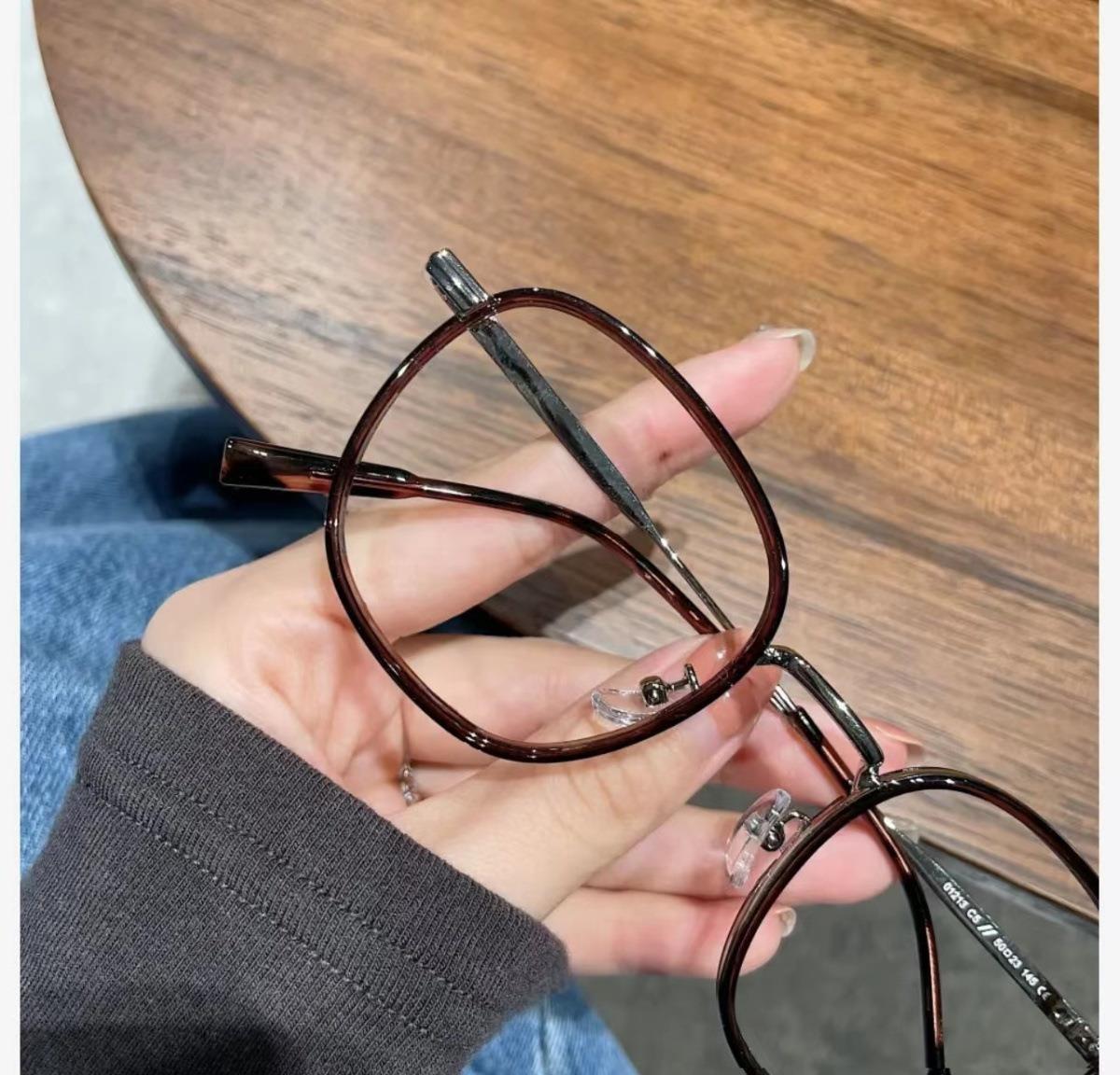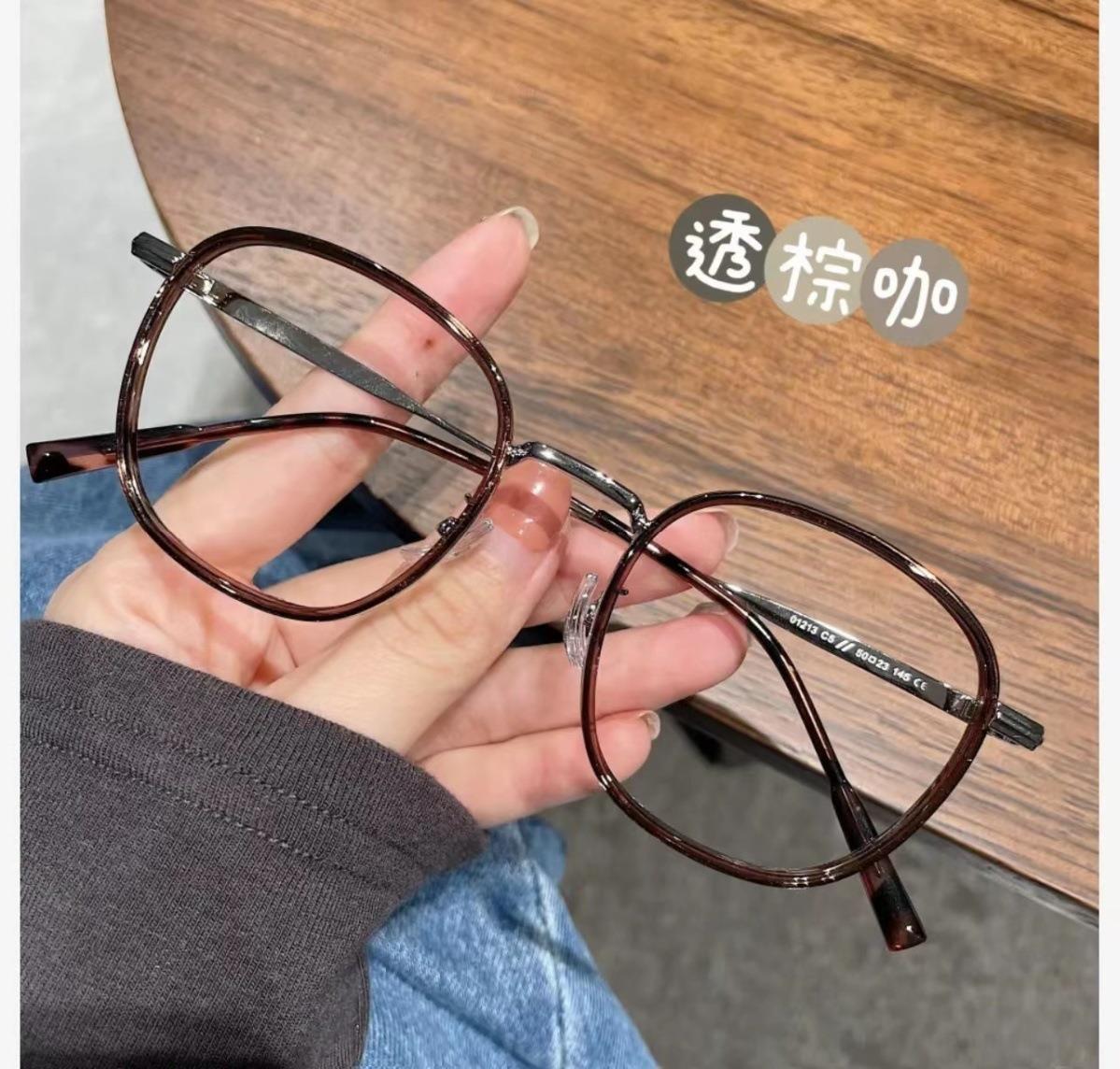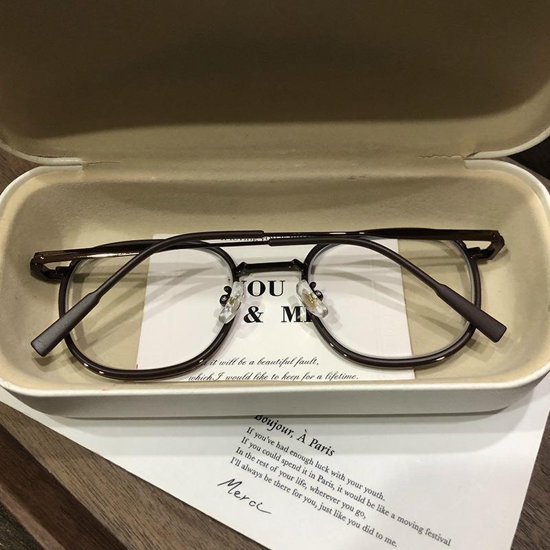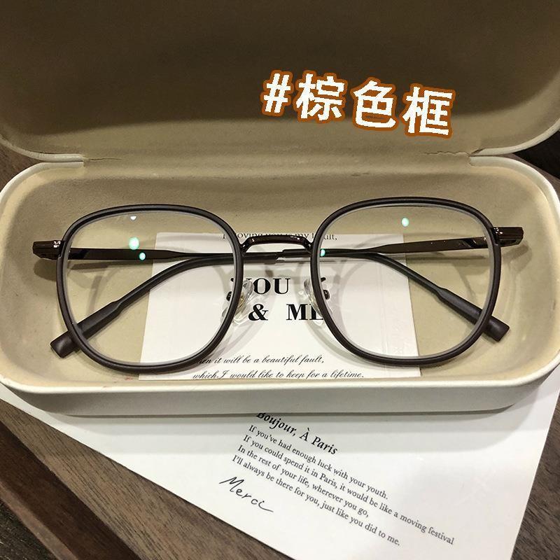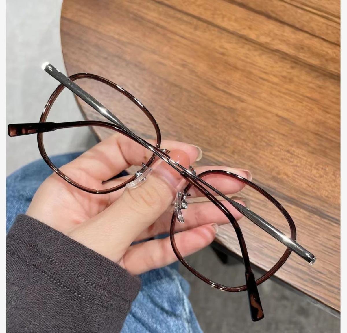 Libro rojo marrón té con montura redonda lente plana luz anti-azul puede combinar con montura para gafas de miopía montura sencilla