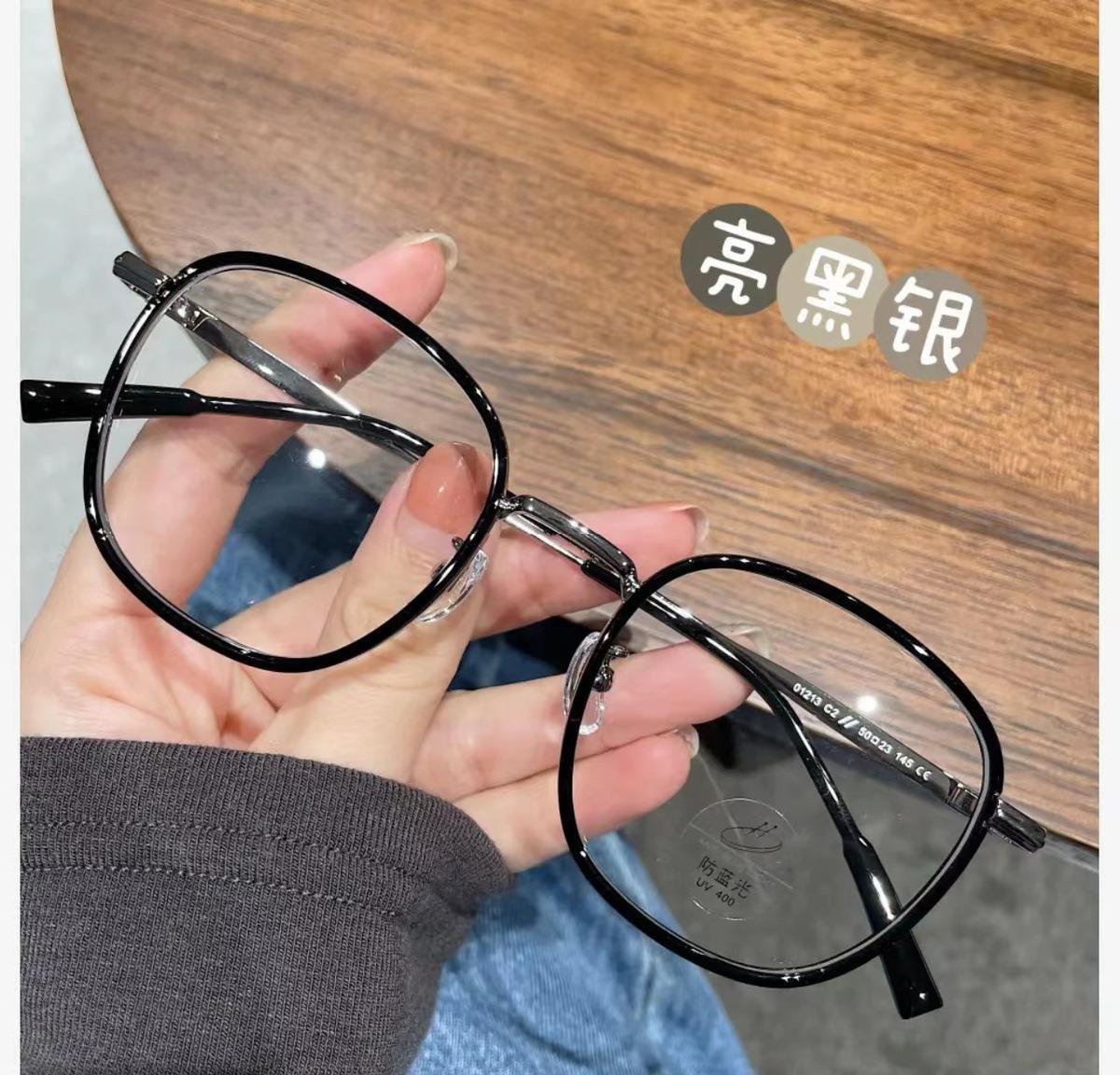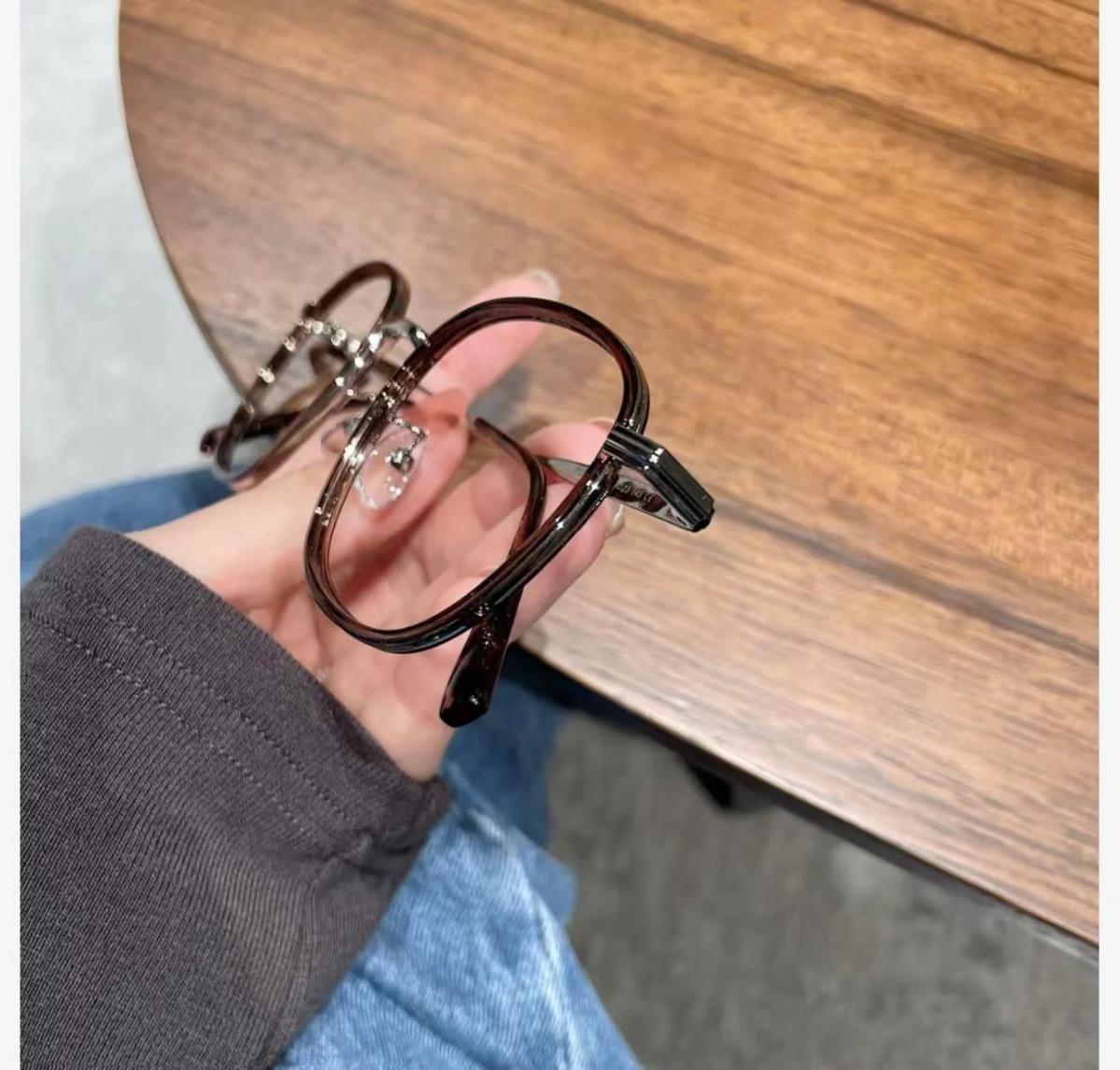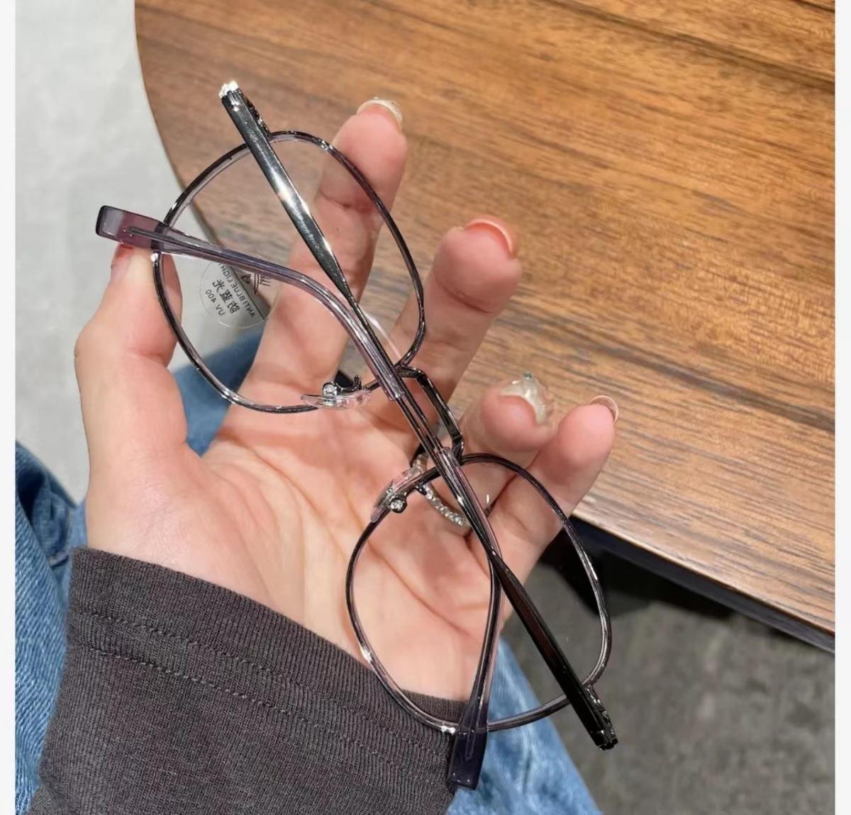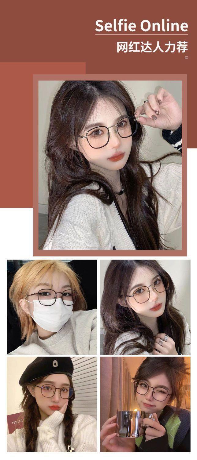 Libro rojo marrón té con montura redonda lente plana luz anti-azul puede combinar con montura para gafas de miopía montura sencilla