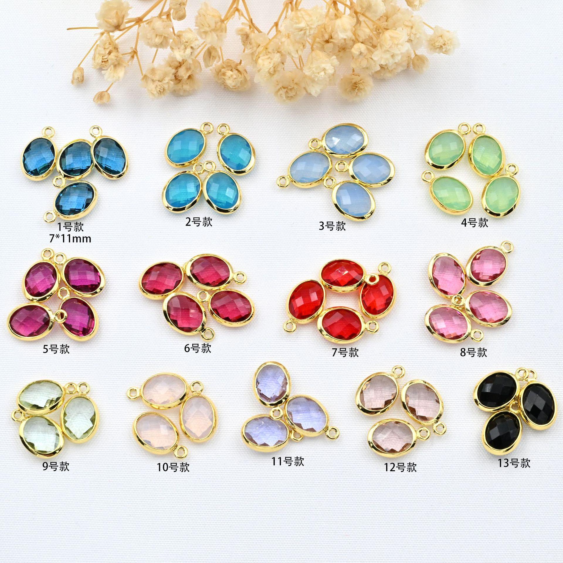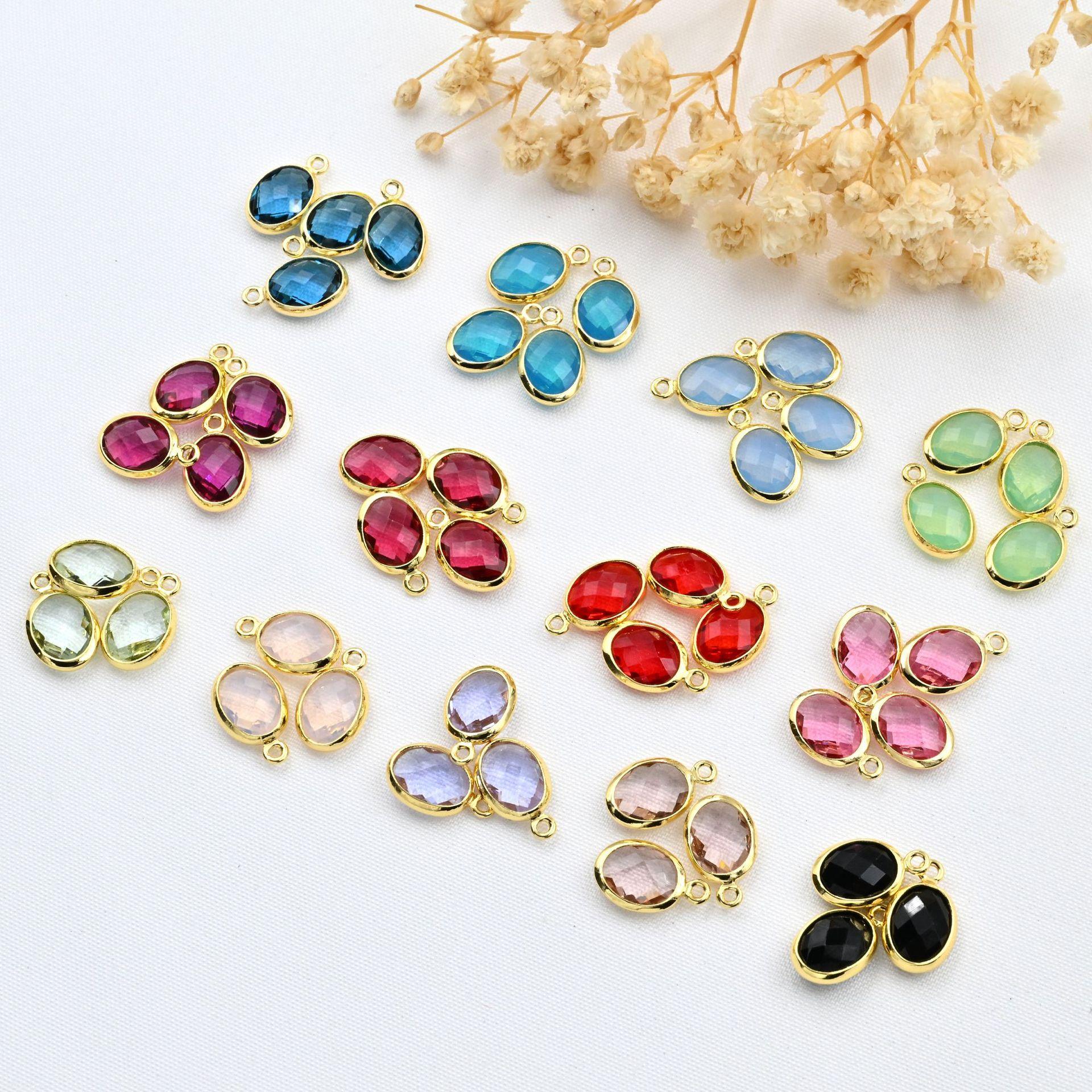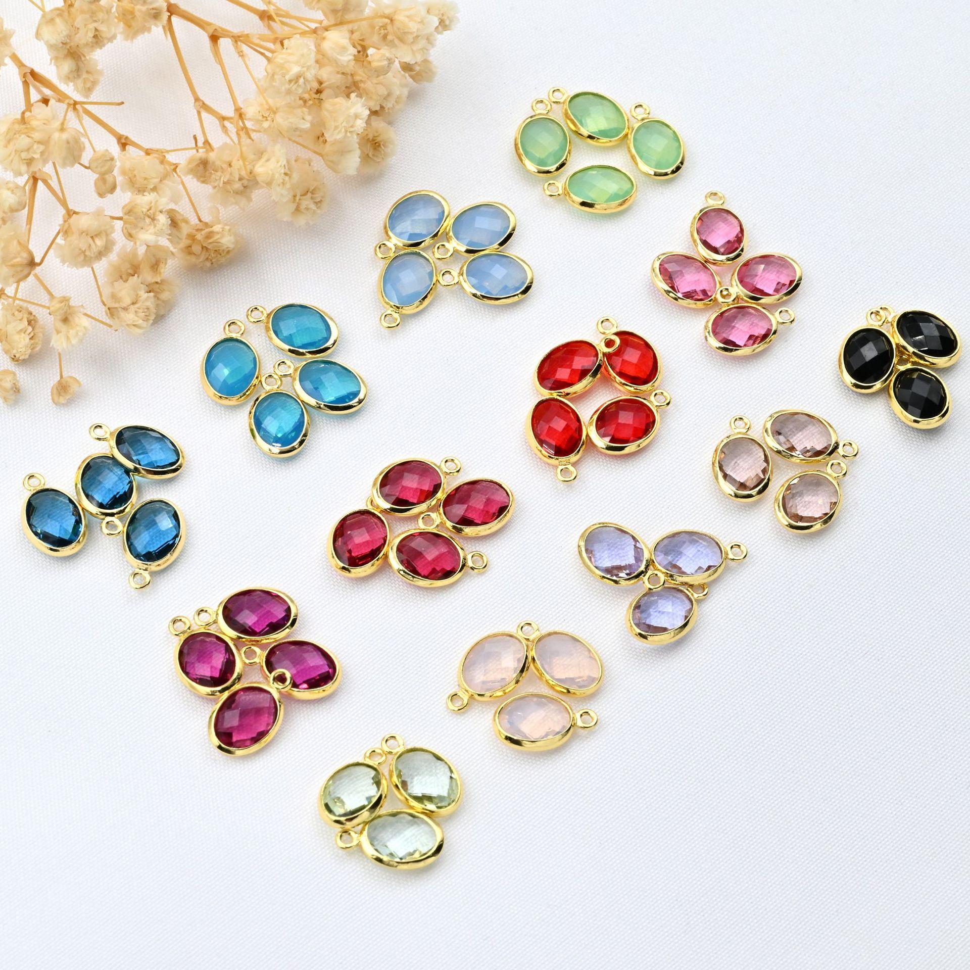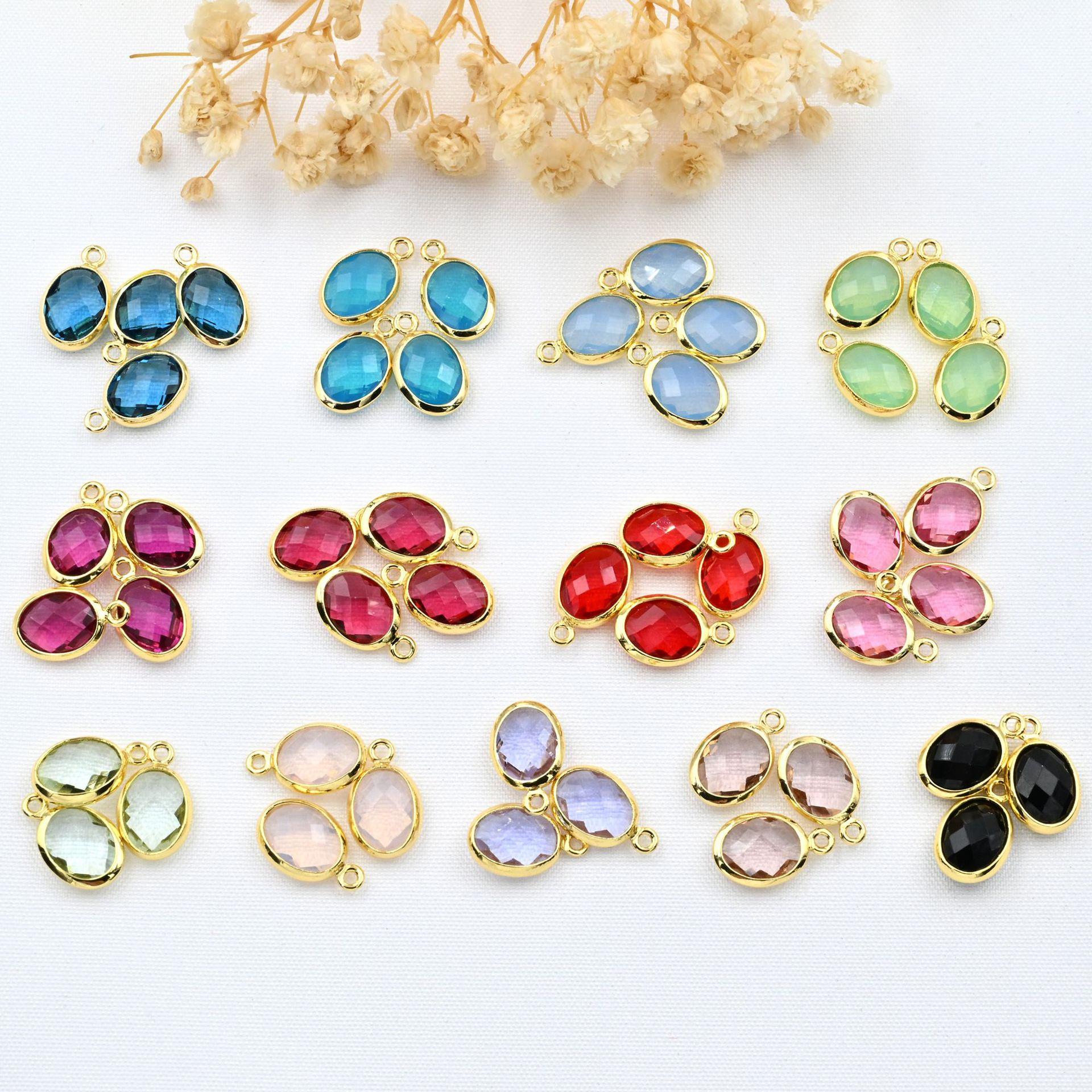 Colgante ovalado de doble cara con incrustaciones de oro de 18 quilates, cristal de color, ideal para pulseras, collares, pendientes y accesorios de joyería.