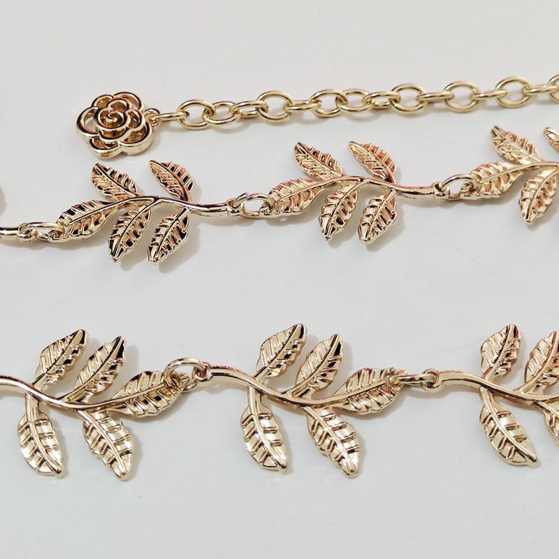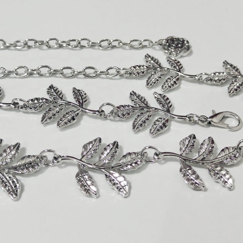 Cadena de cintura con forma de hoja de metal, joyería transfronteriza europea y americana, decoración sencilla y decorativa para la cintura, cadena fina con forma de hoja.