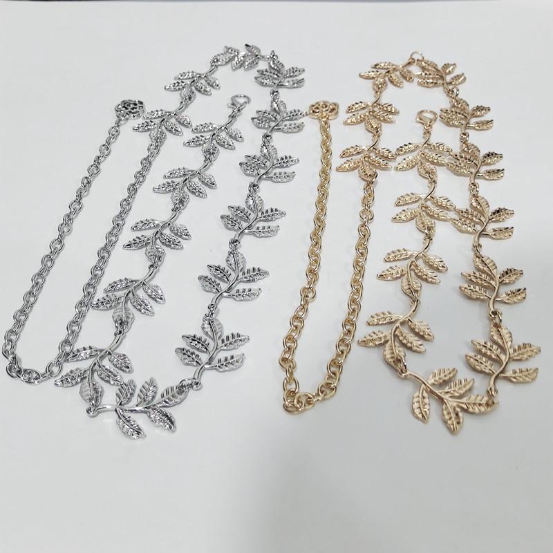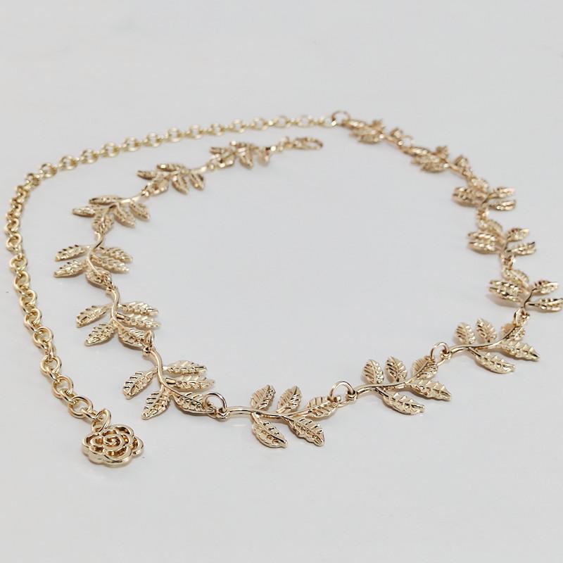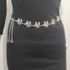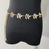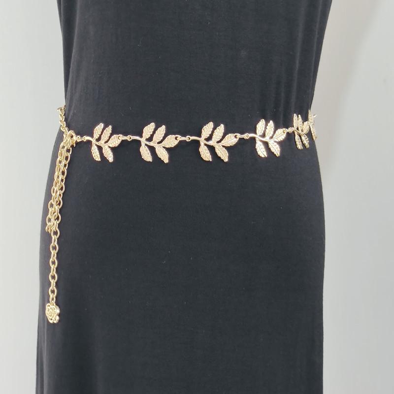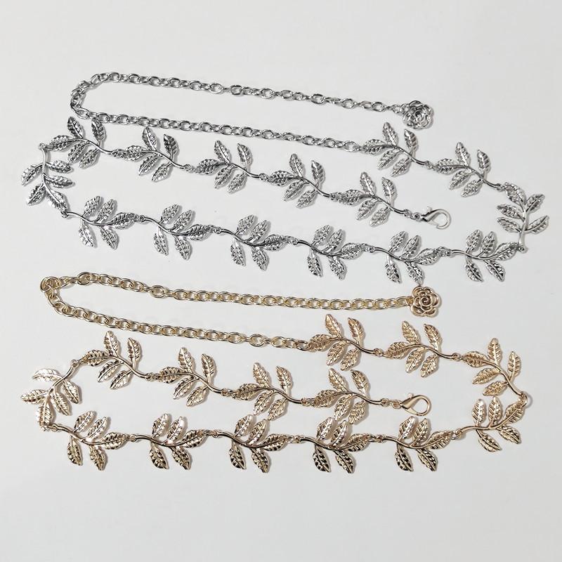 Cadena de cintura de hoja de metal de moda para mujer, cinturón delgado decorativo simple de cadena de hoja de cintura