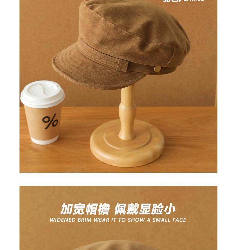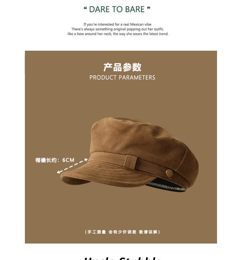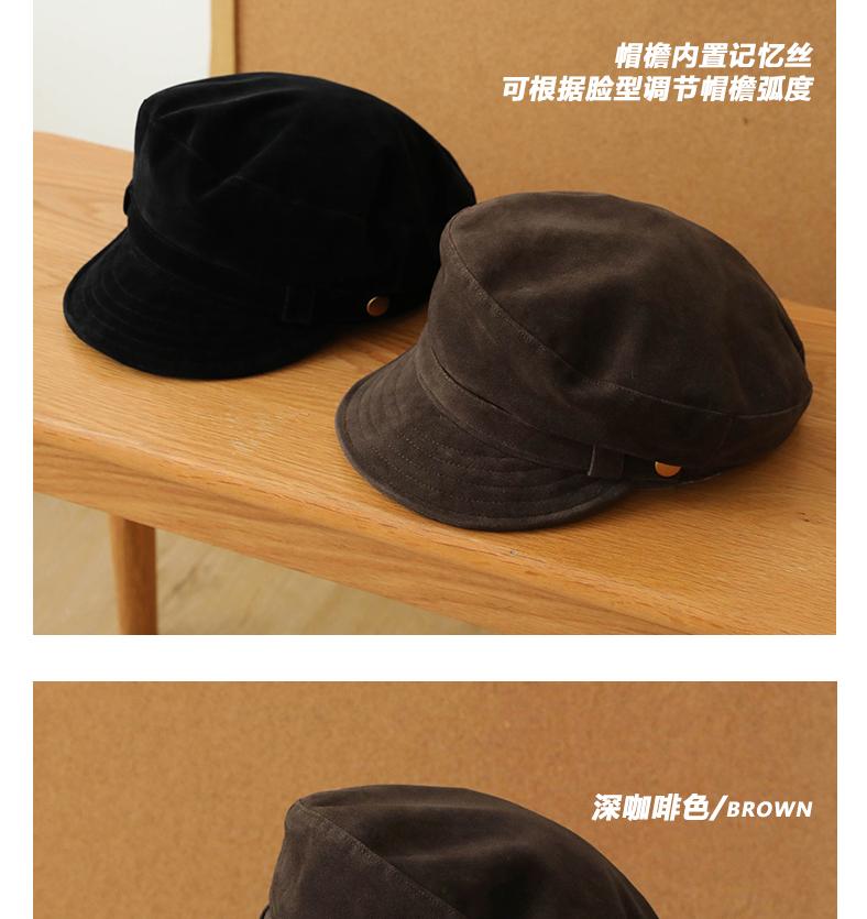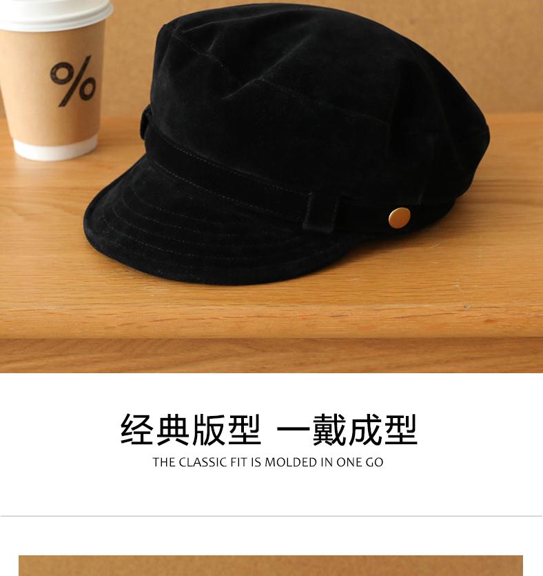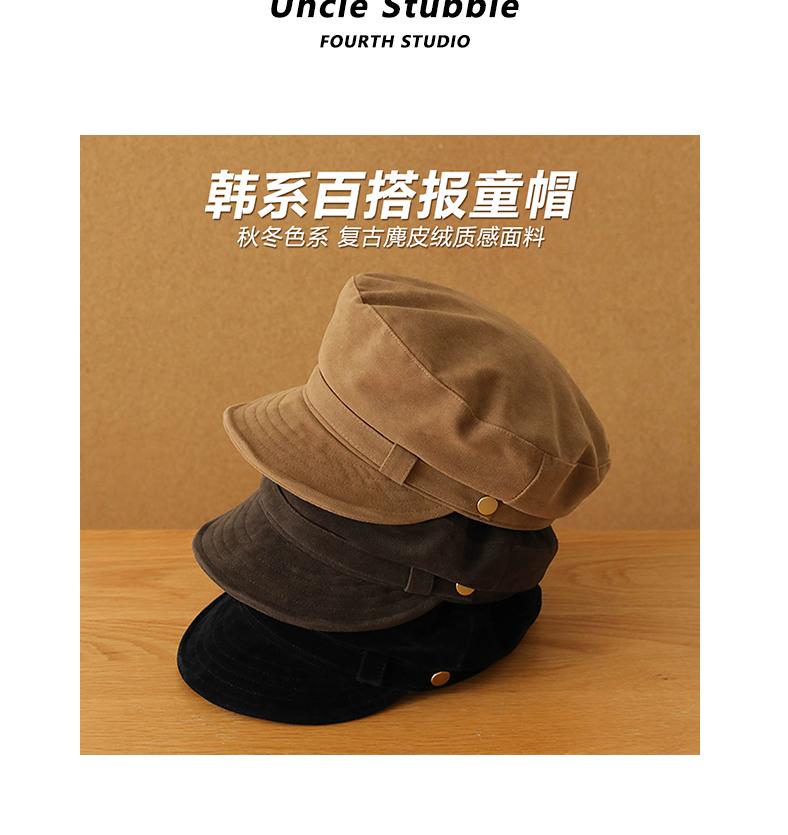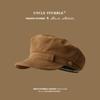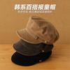 Sombrero estilo azul marino vintage de otoño e invierno, sombrero de vendedor de periódicos de gamuza de alta gama con parte superior plana, sombrero de pintor de estilo coreano para niñas, combinable con todo.