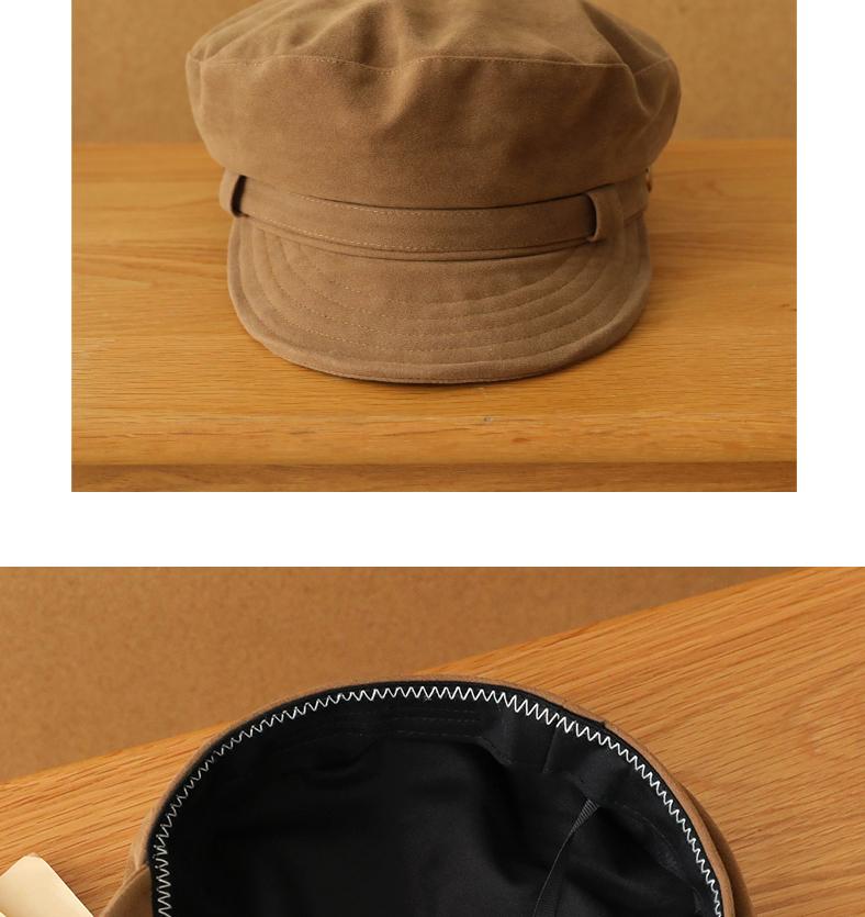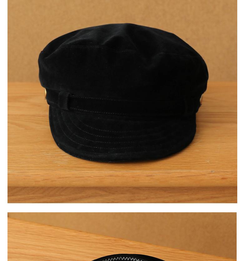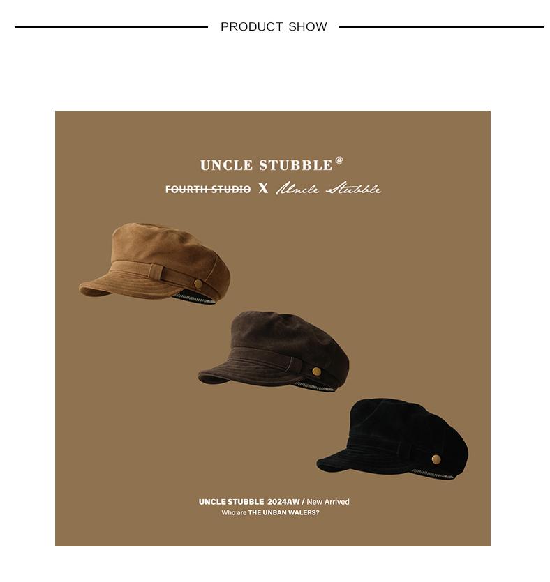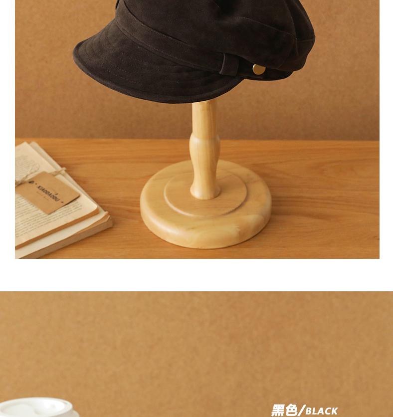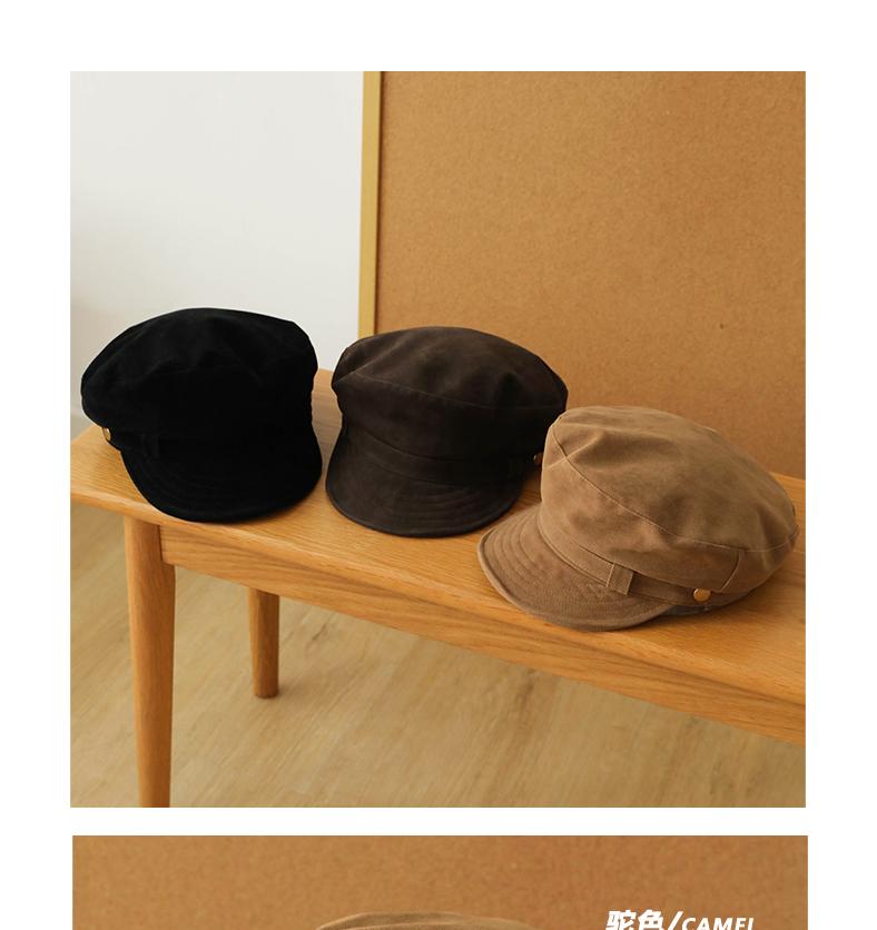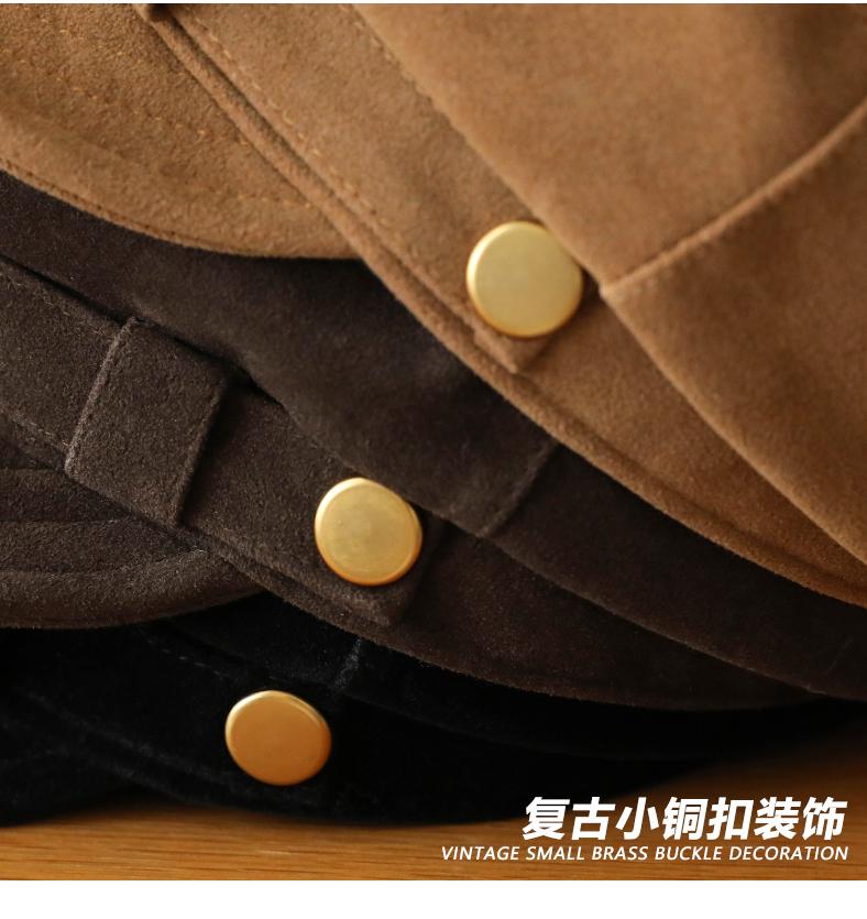 Sombrero estilo azul marino vintage de otoño e invierno, sombrero de vendedor de periódicos de gamuza de alta gama con parte superior plana, sombrero de pintor de estilo coreano para niñas, combinable con todo.