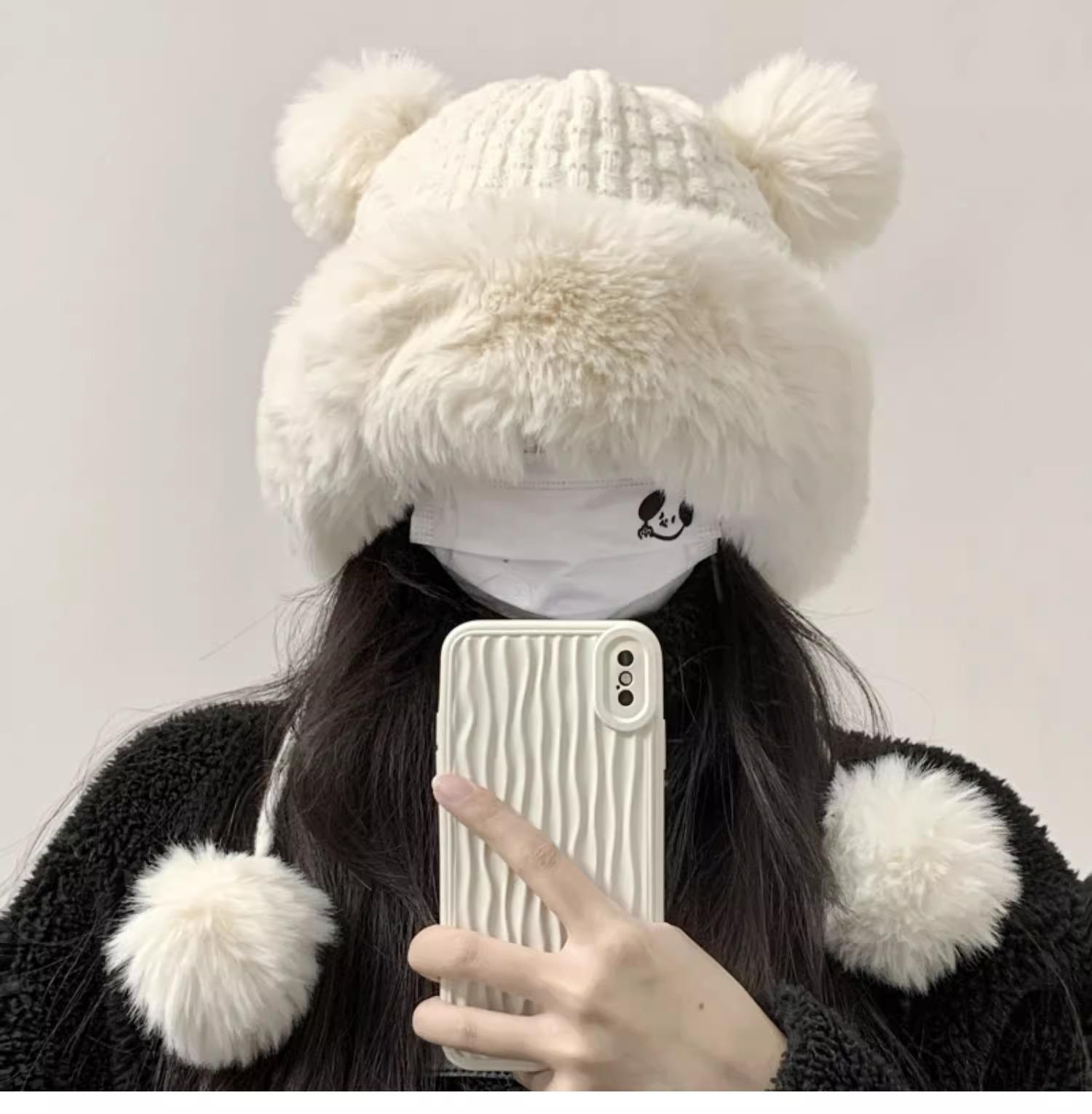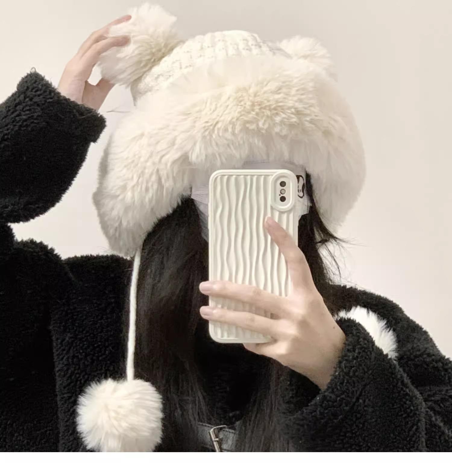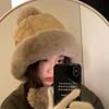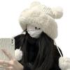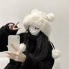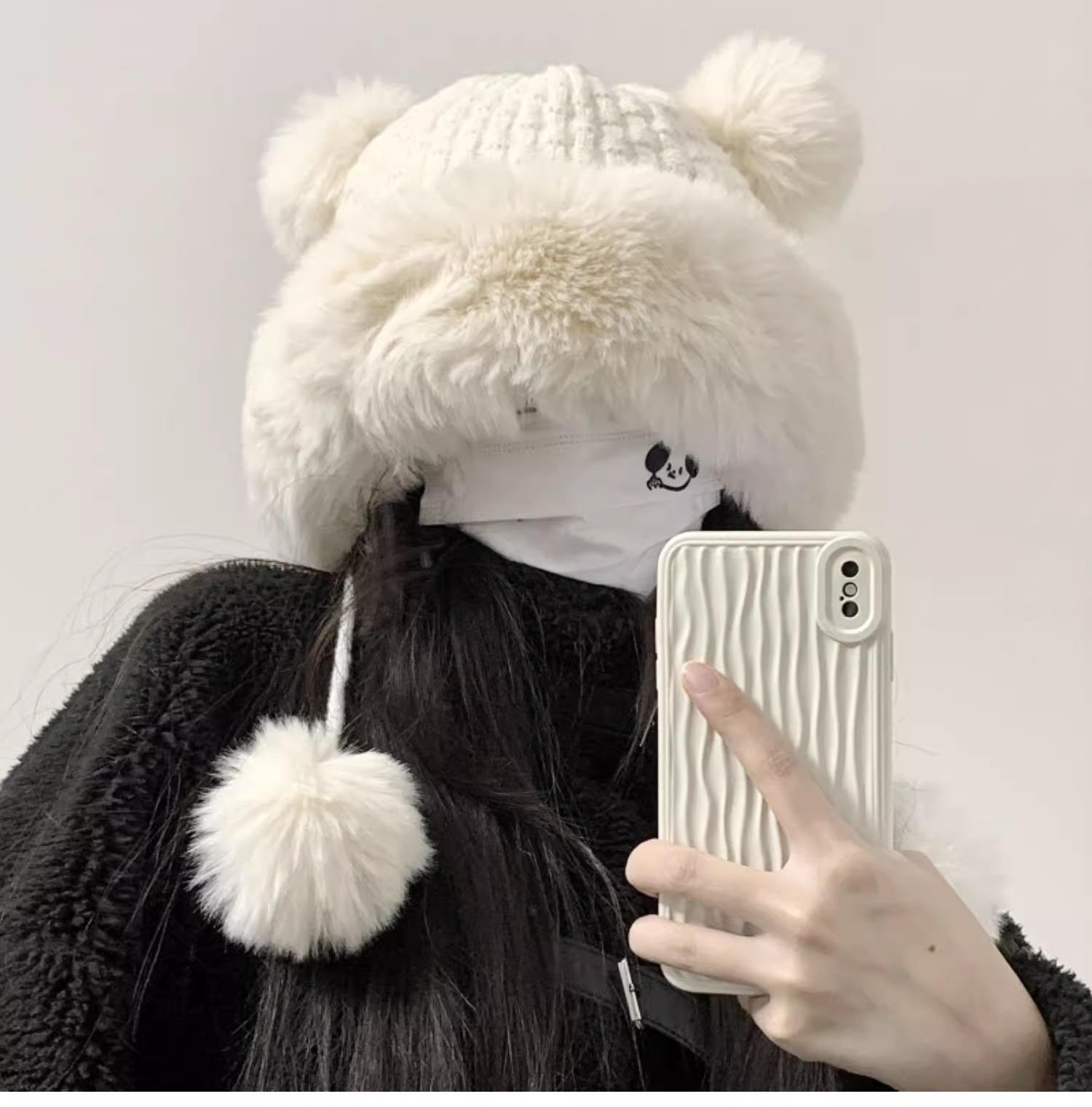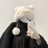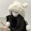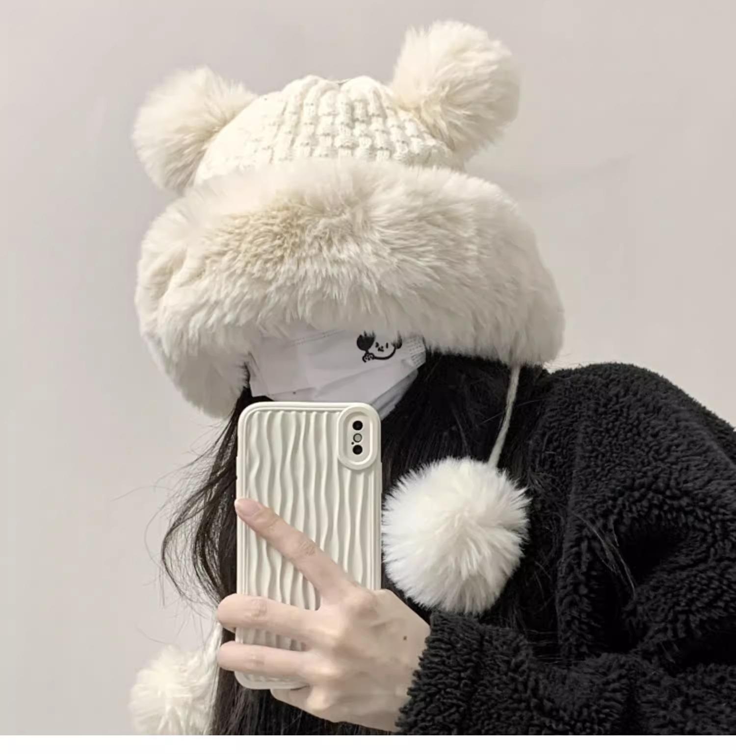 Gorro de lana de punto de terciopelo grueso para otoño e invierno para mujer, cálido jersey de invierno con protección para las orejas, bola de pelo de conejo, bonito gorro Lei Feng para mujer.