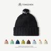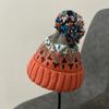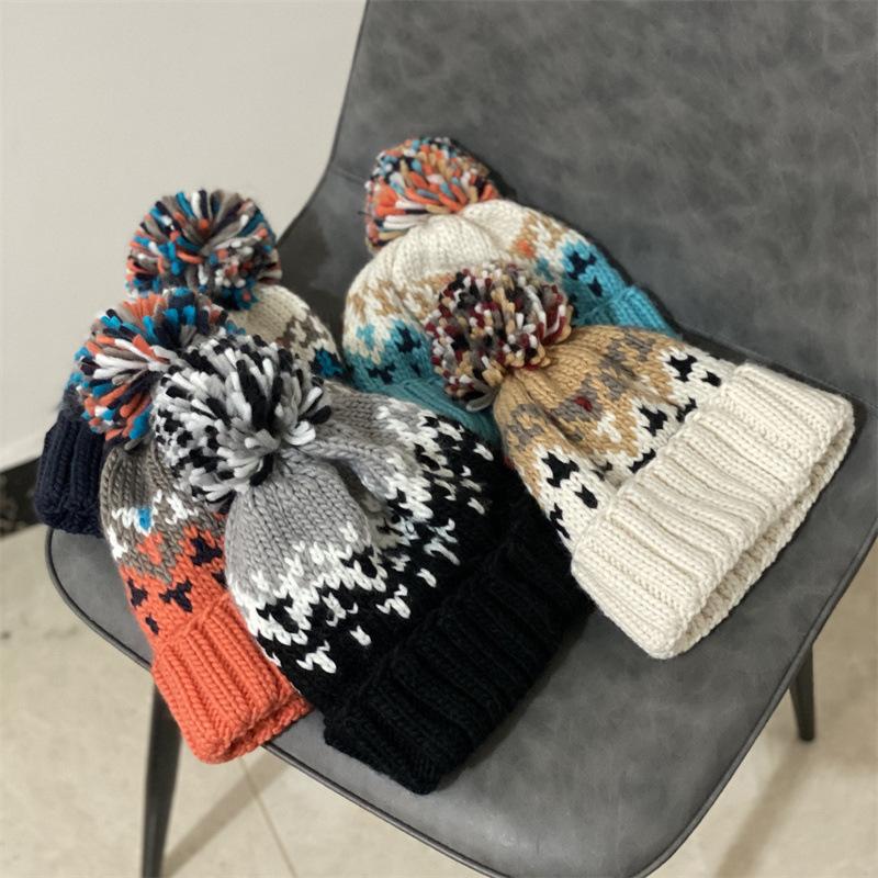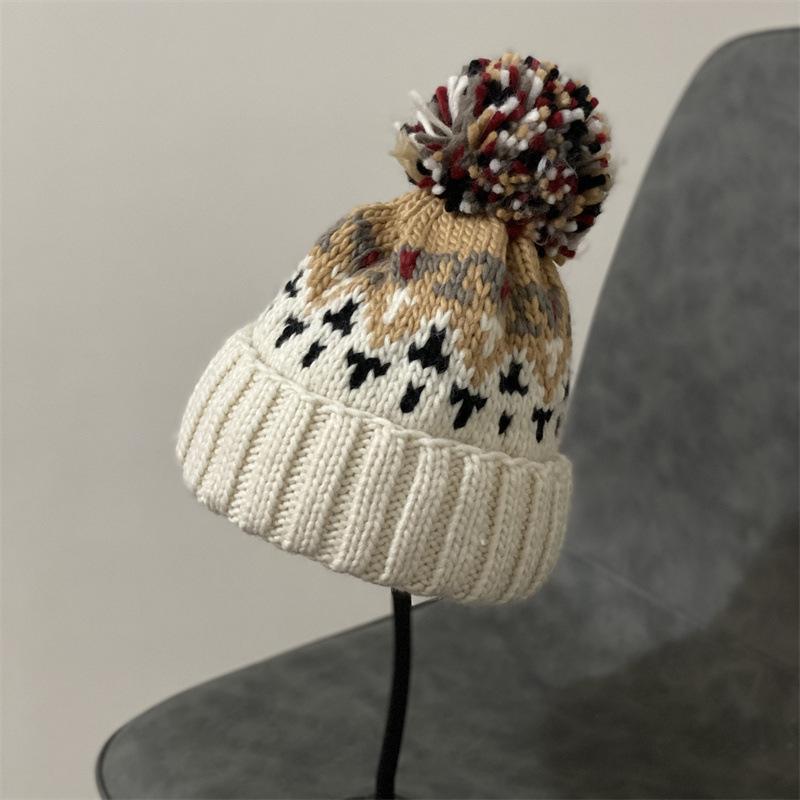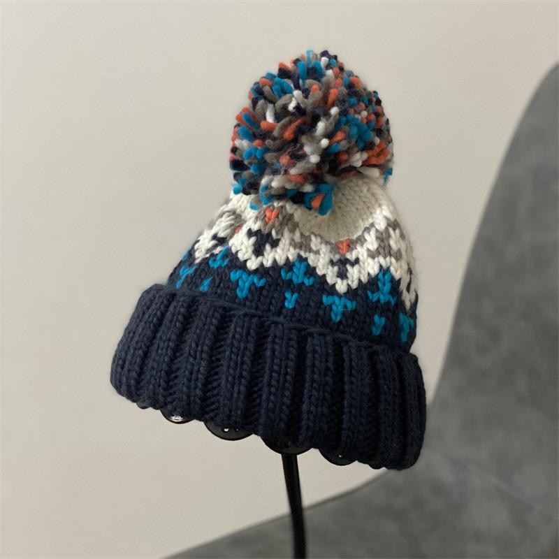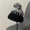Gorro de lana tejido con bola de pelo estilo coreano para mujer, grueso, cálido, con protección para los oídos, para el frío, para estudiantes, con sobre rojo de red