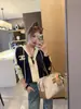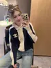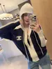 Chaqueta tipo suéter con capucha, diseño color block y letras bordadas, ideal para otoño e invierno. Nueva chaqueta tipo cárdigan de punto con doble cremallera, estilo casual y moderno.