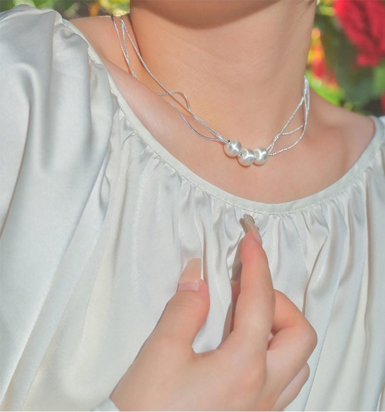Collar de Perlas Multicapa Cepillado Diseño Nicho Lujo Ligero Cadena Clavicular Sencillo Elegante Moda Collar Versátil