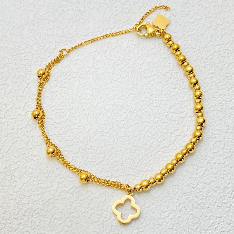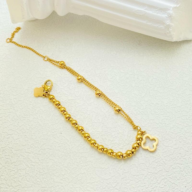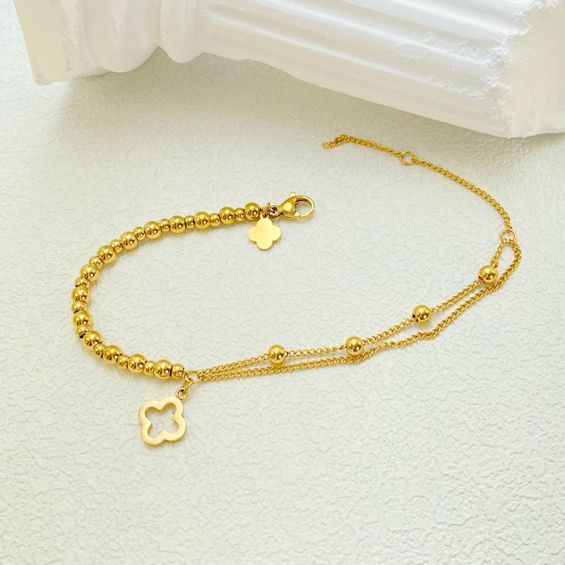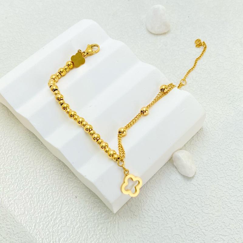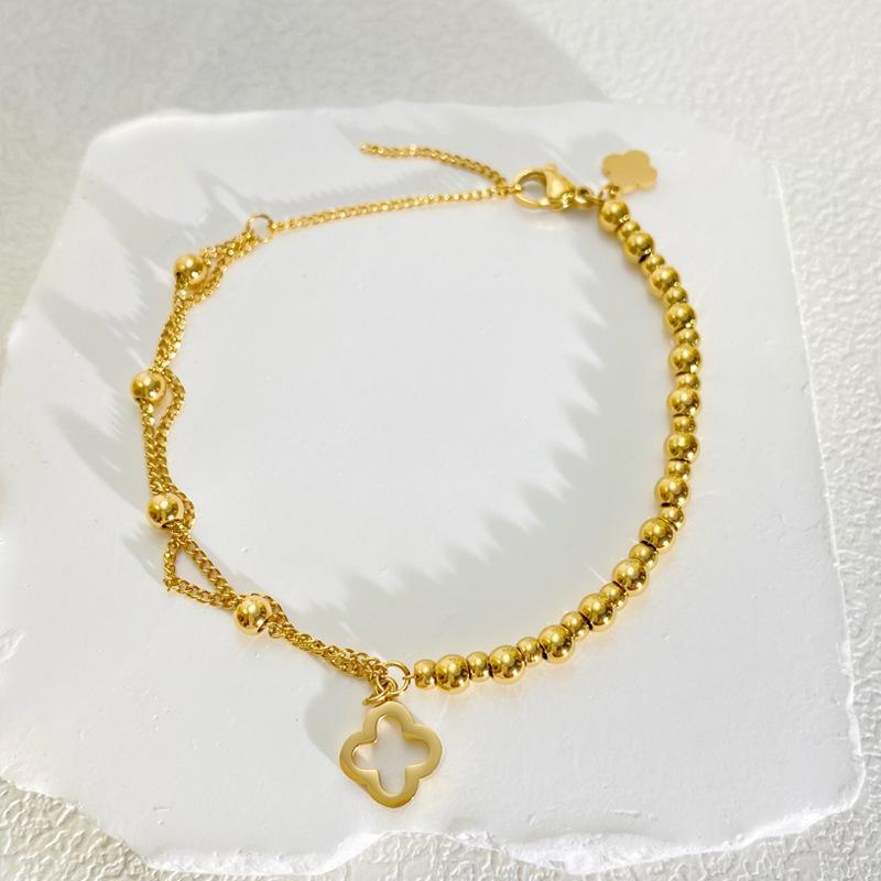 Pulsera de Cadena AB de Moda Acero de Titanio Transfronteriza Caliente Hueca Trébol de Cuatro Hojas Diseño Nicho Pulsera de Lujo Ligero Joyería para Damas