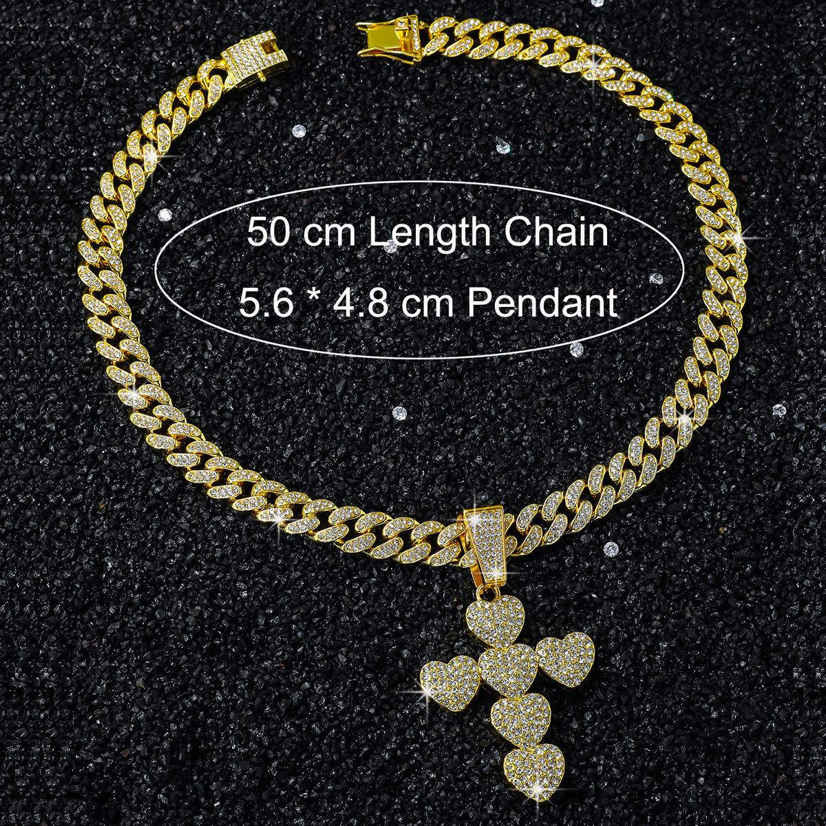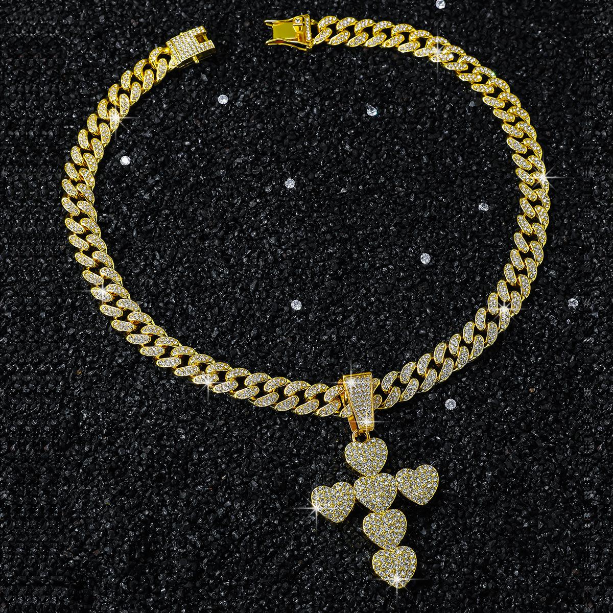 Collar dominante para hombre con colgante de letra de diamante completo, cadena cubana ancha, estilo hip hop, hip-hop, baile callejero europeo y americano