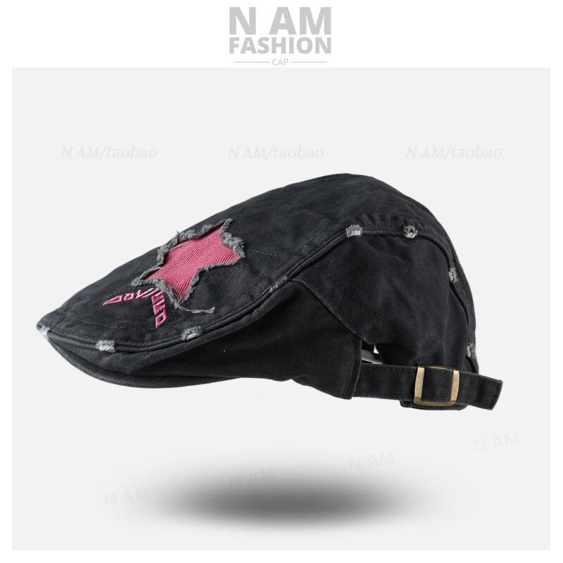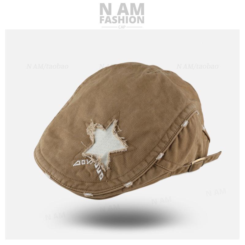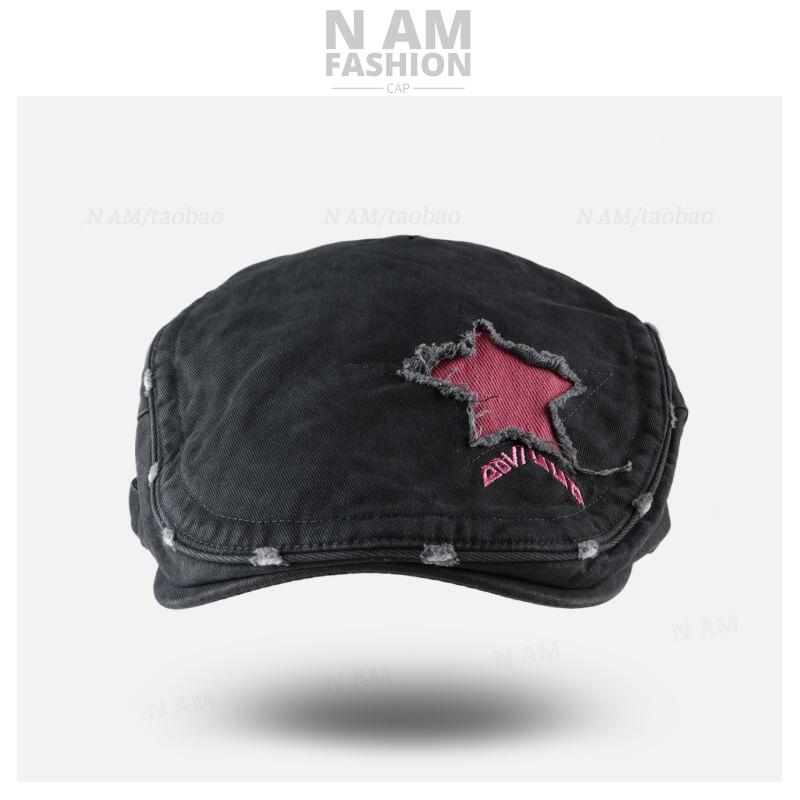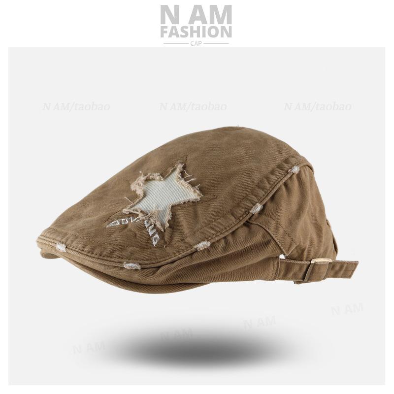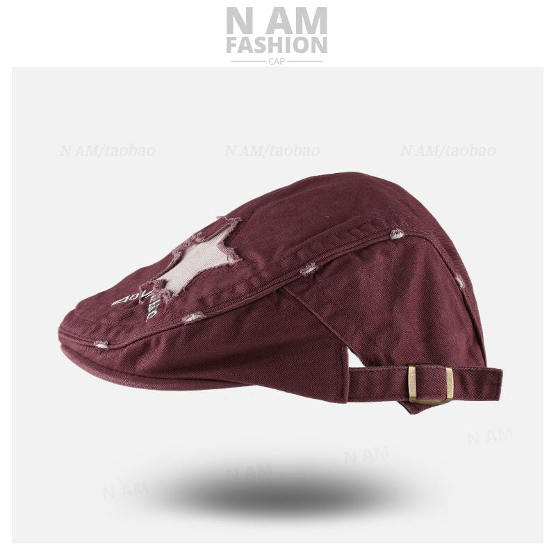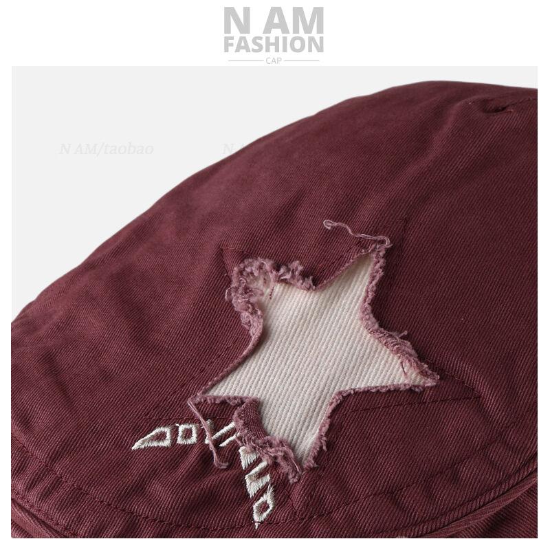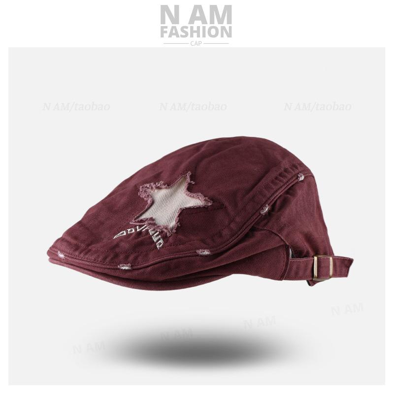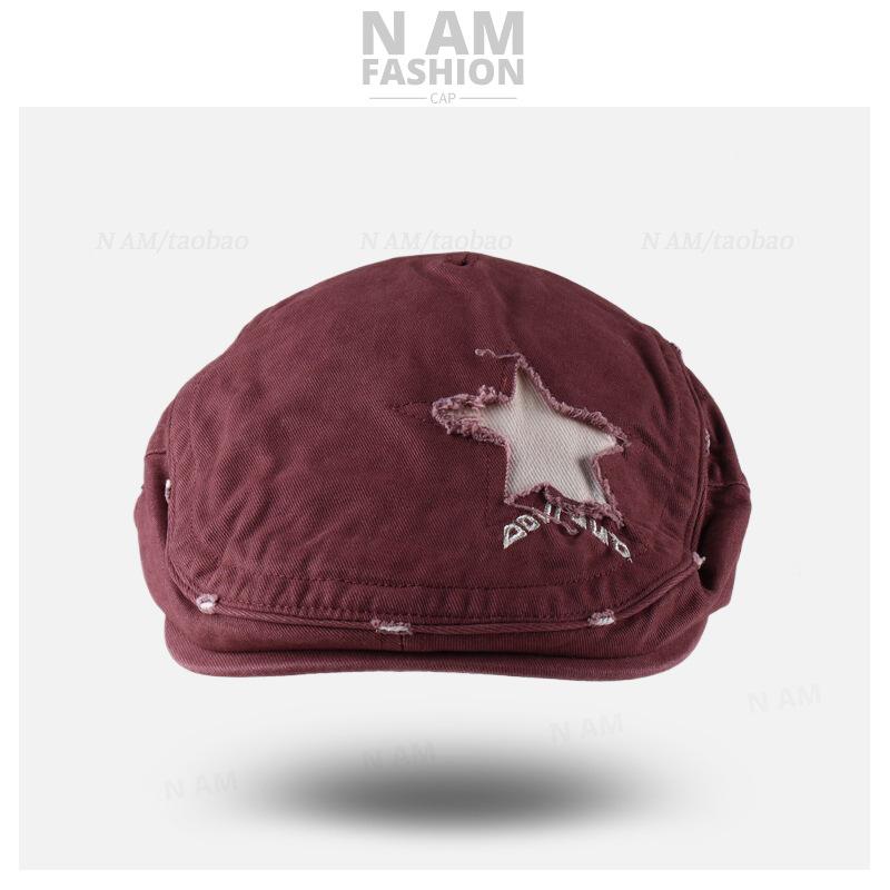 Cotton worn out five-pointed star forward cap burgundy, Cotton worn out five-pointed star forward hat khaki, C...