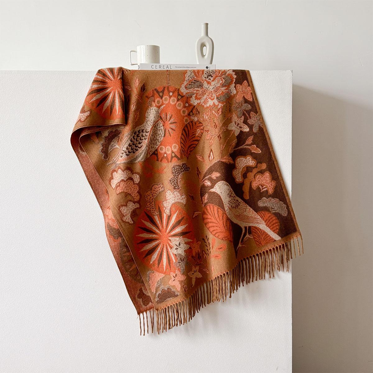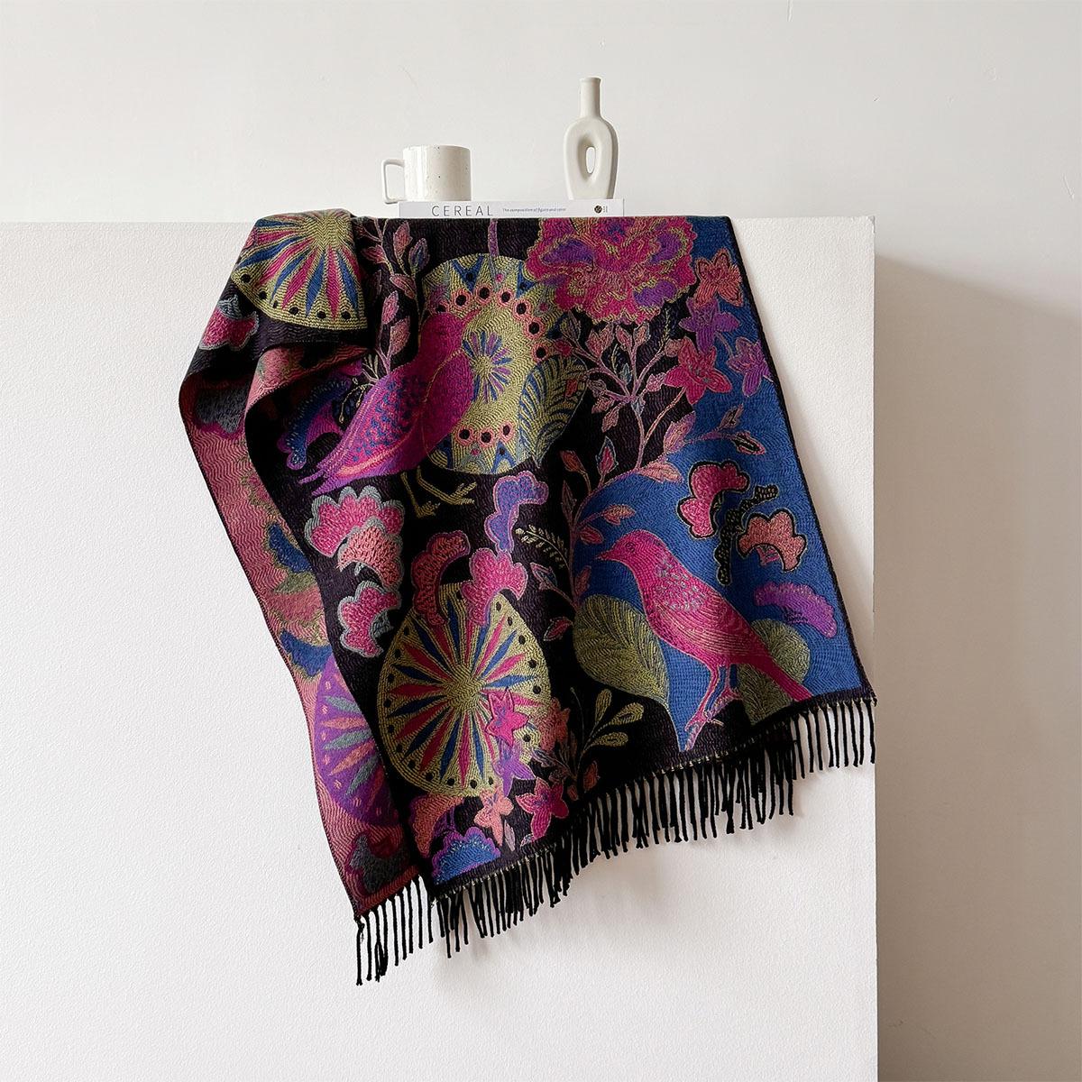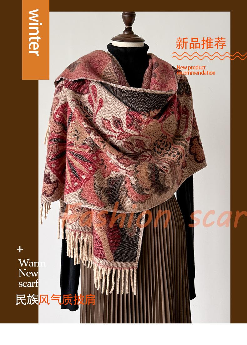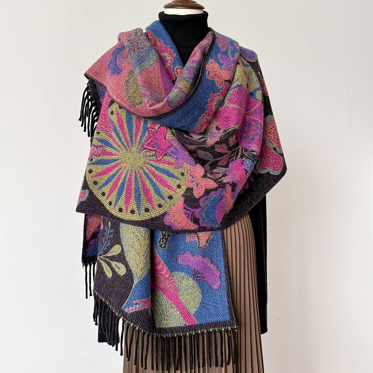 Chal étnico con bufanda decorativa de cachemira acolchada cálida para mujer, invierno, sentido de alta gama, chal para mujer al por mayor