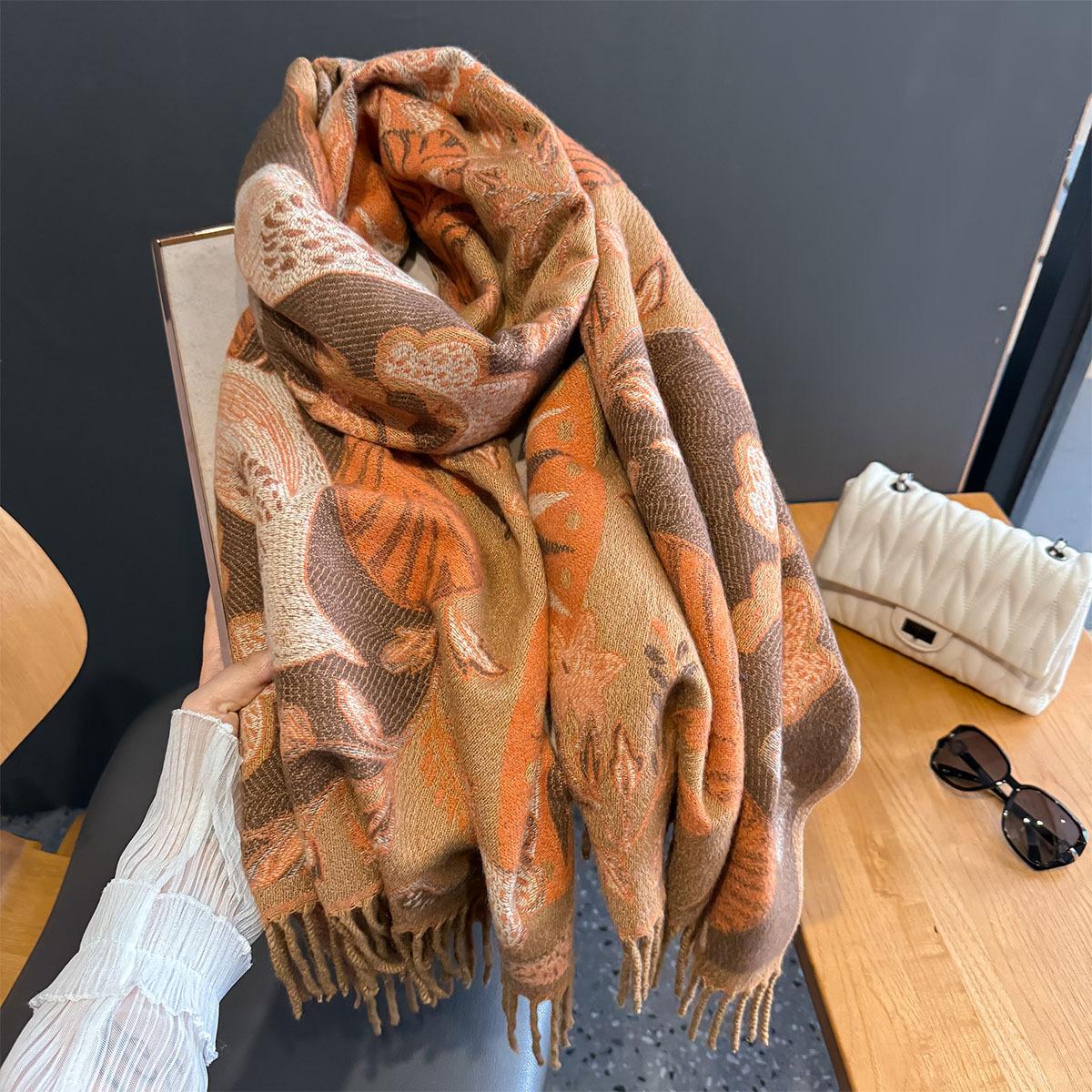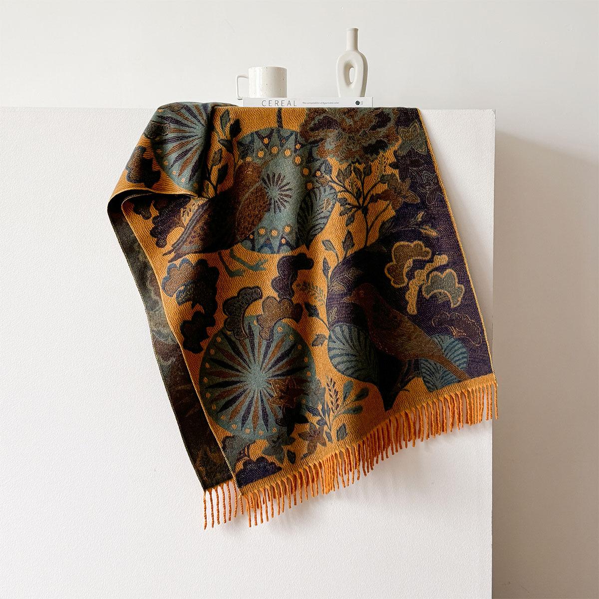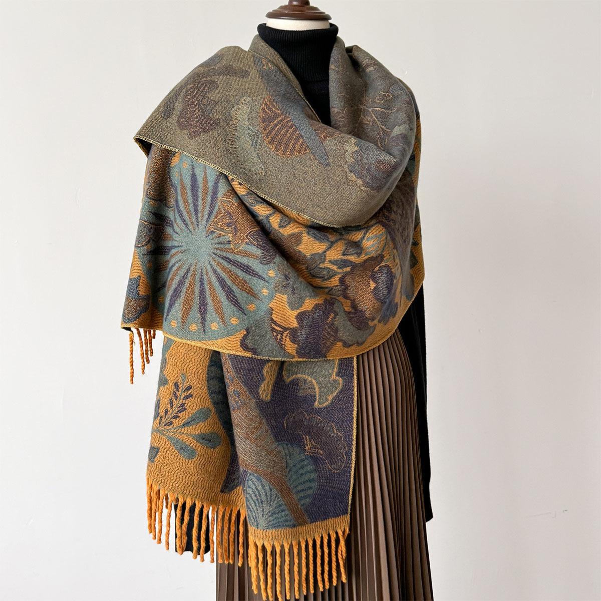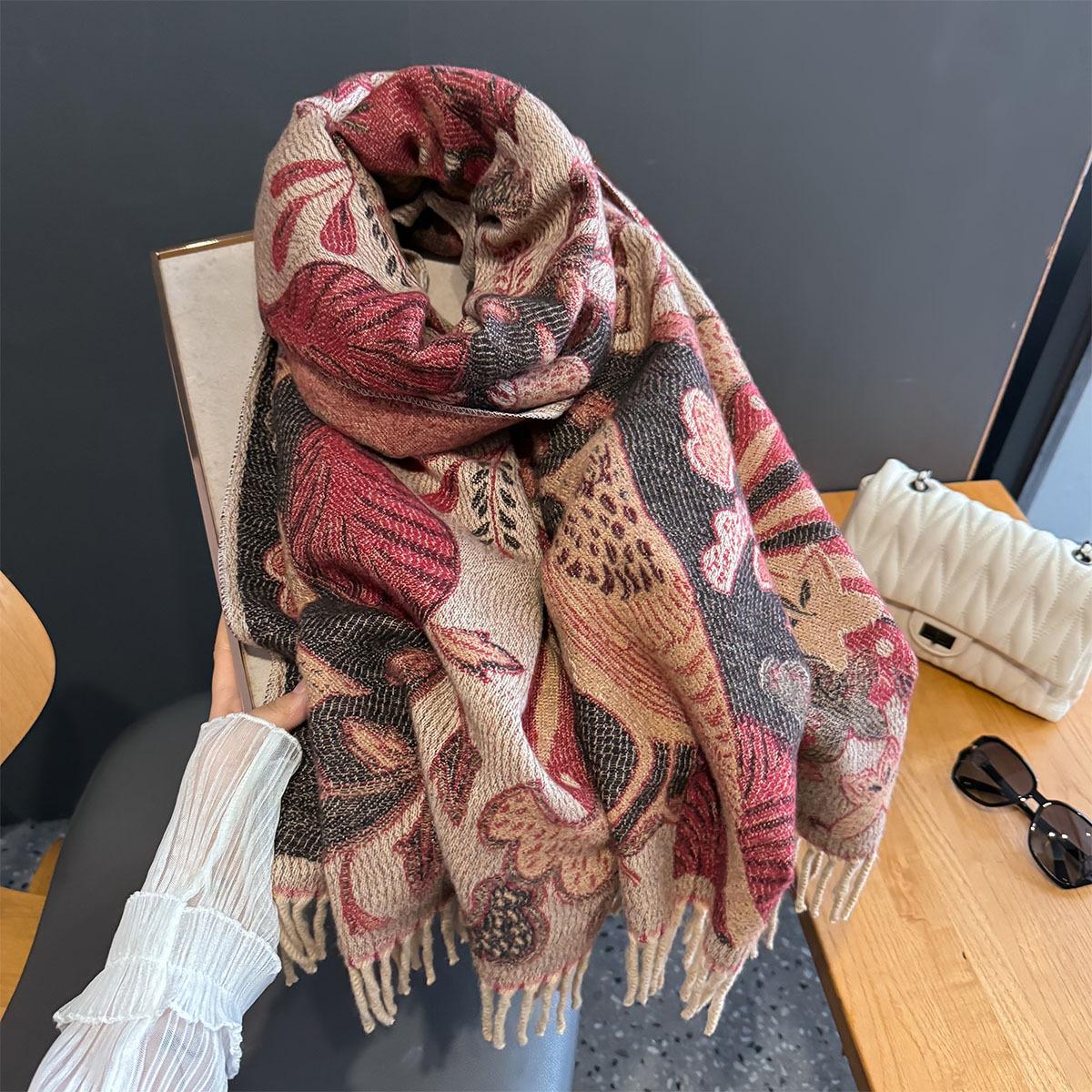 Chal étnico con bufanda decorativa de cachemira acolchada cálida para mujer, invierno, sentido de alta gama, chal para mujer al por mayor