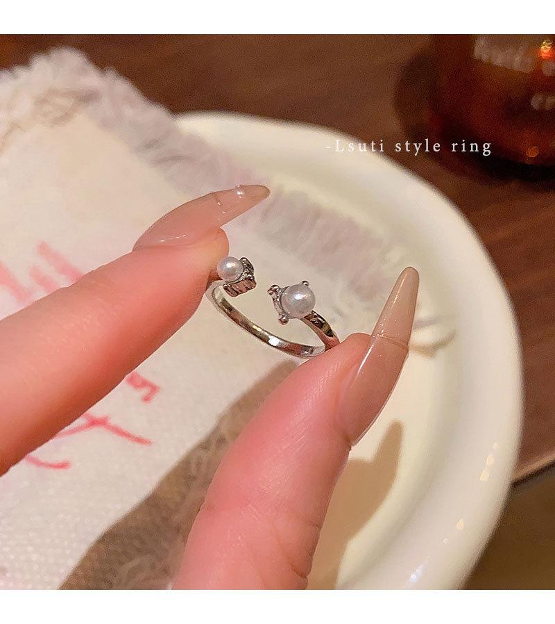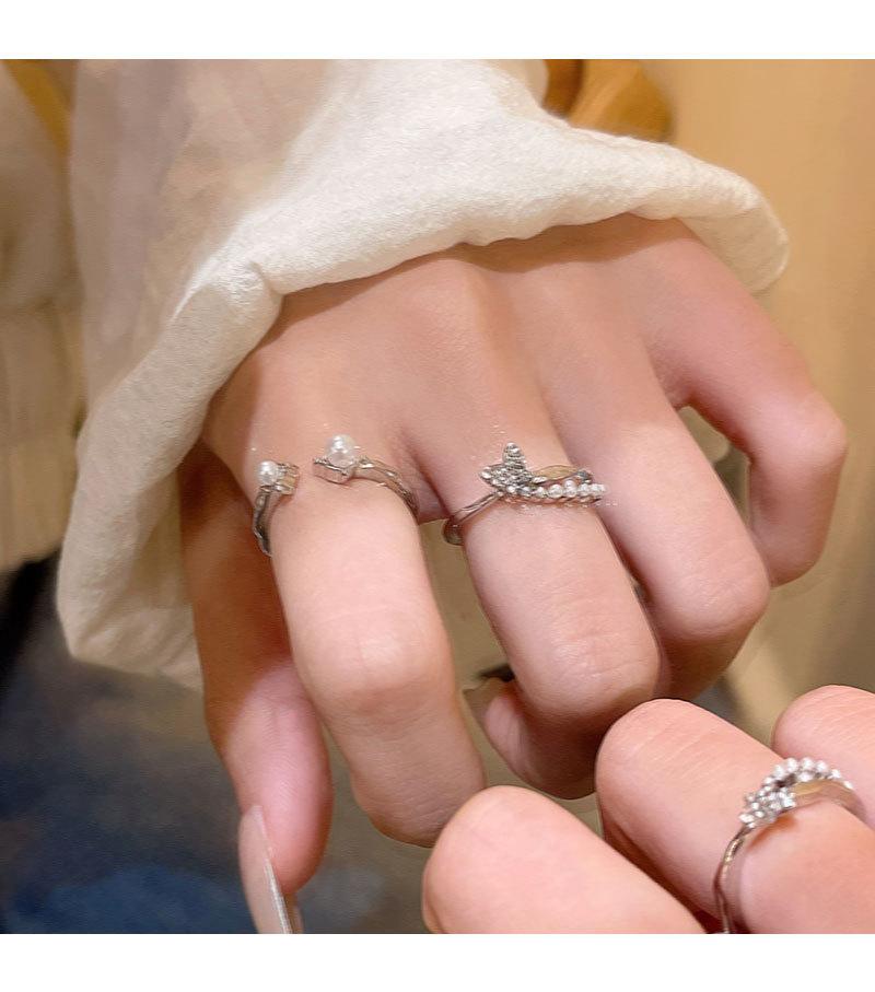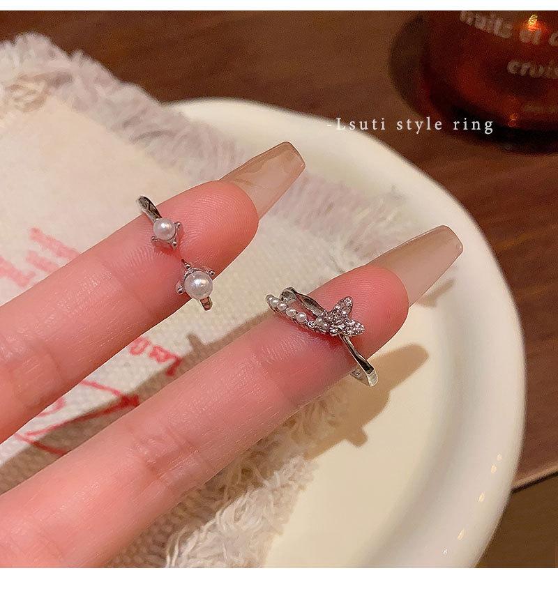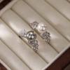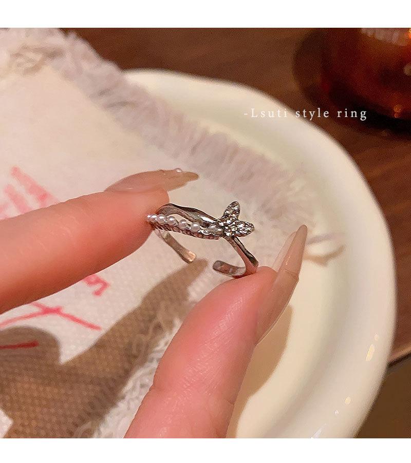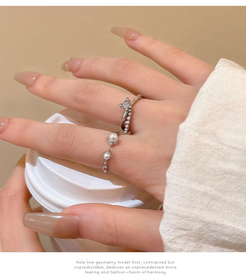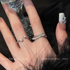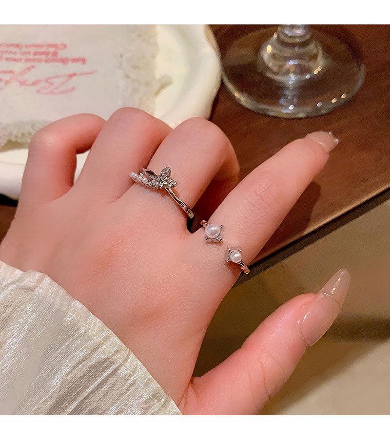 | |  | Versión coreana del anillo de perla de mariposa de diamante para mujer, diseño de nicho simple, anillo de dedo índice abierto, joyería de mano con personalidad de moda | | |