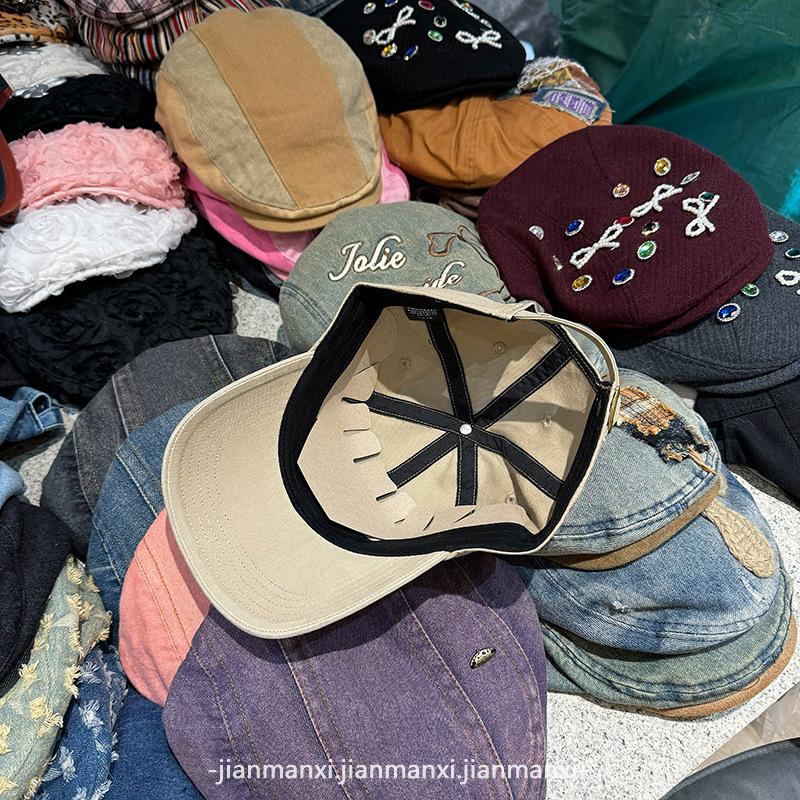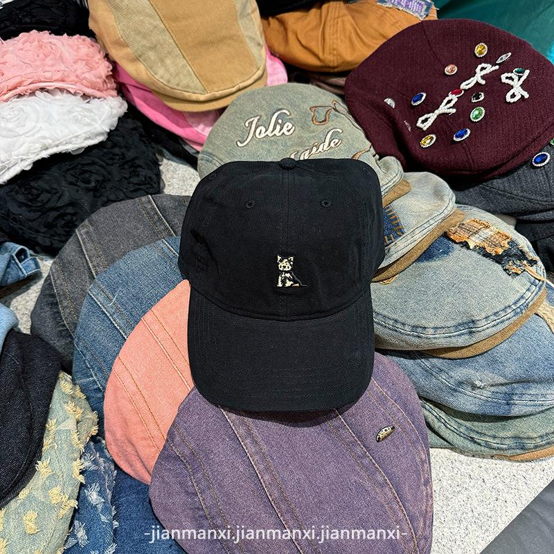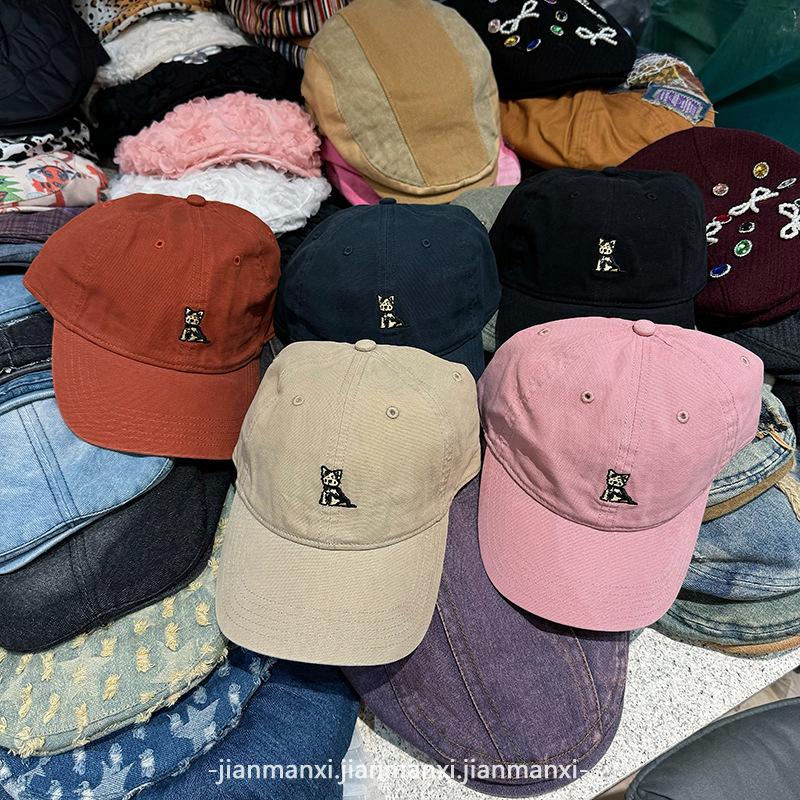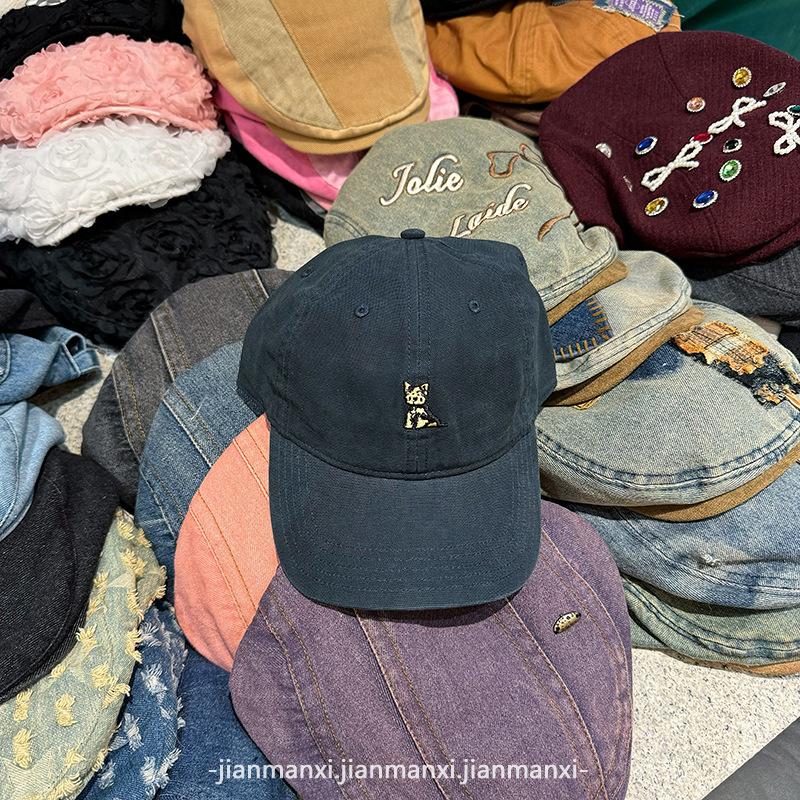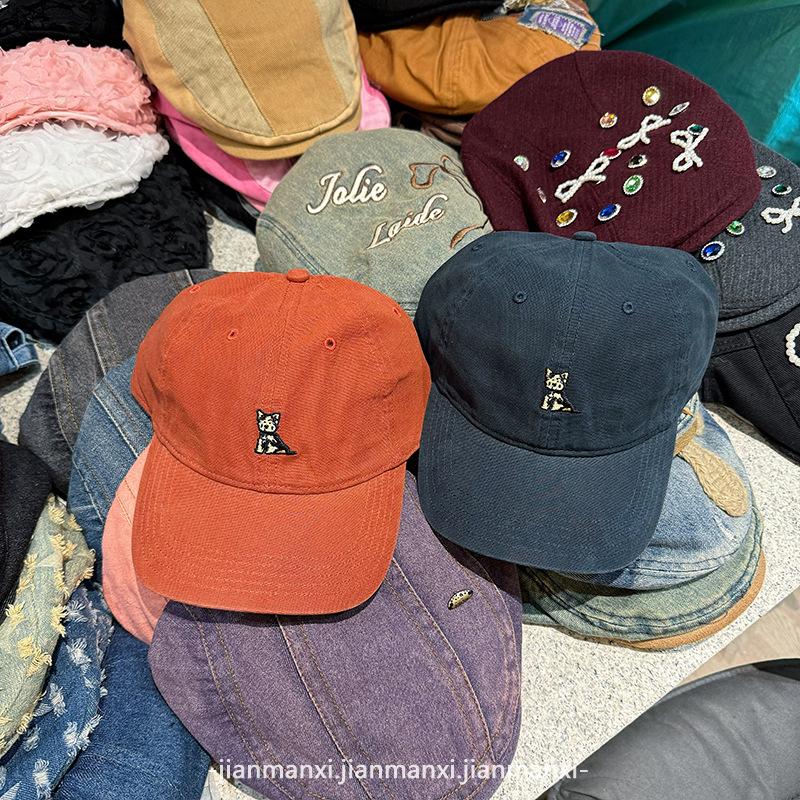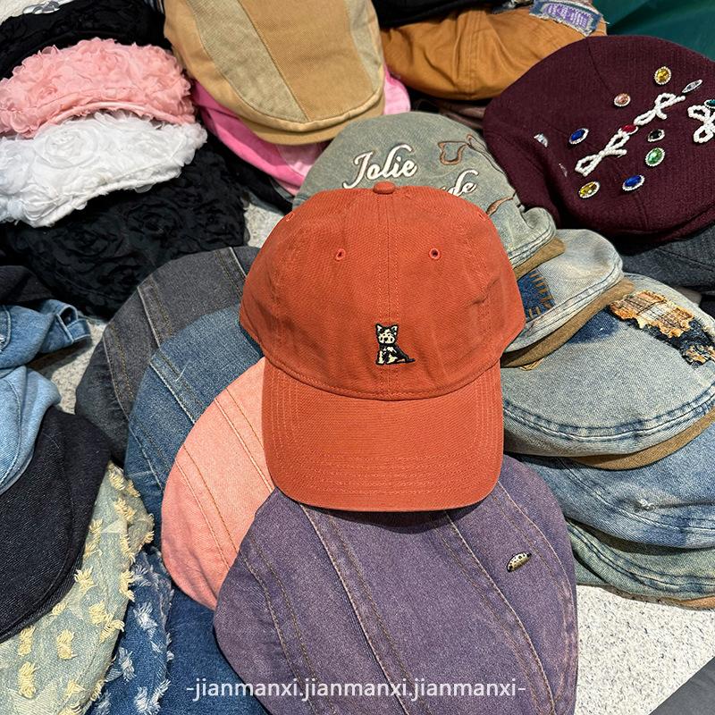 Gorra de Béisbol Bordada con Cachorro Lindo Estilo Perezoso Ala Ancha Todo Combinable Blanca Roja Mujer Cabeza Grande Trendy