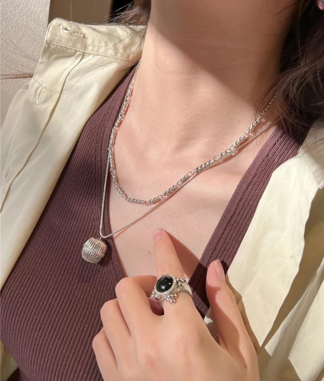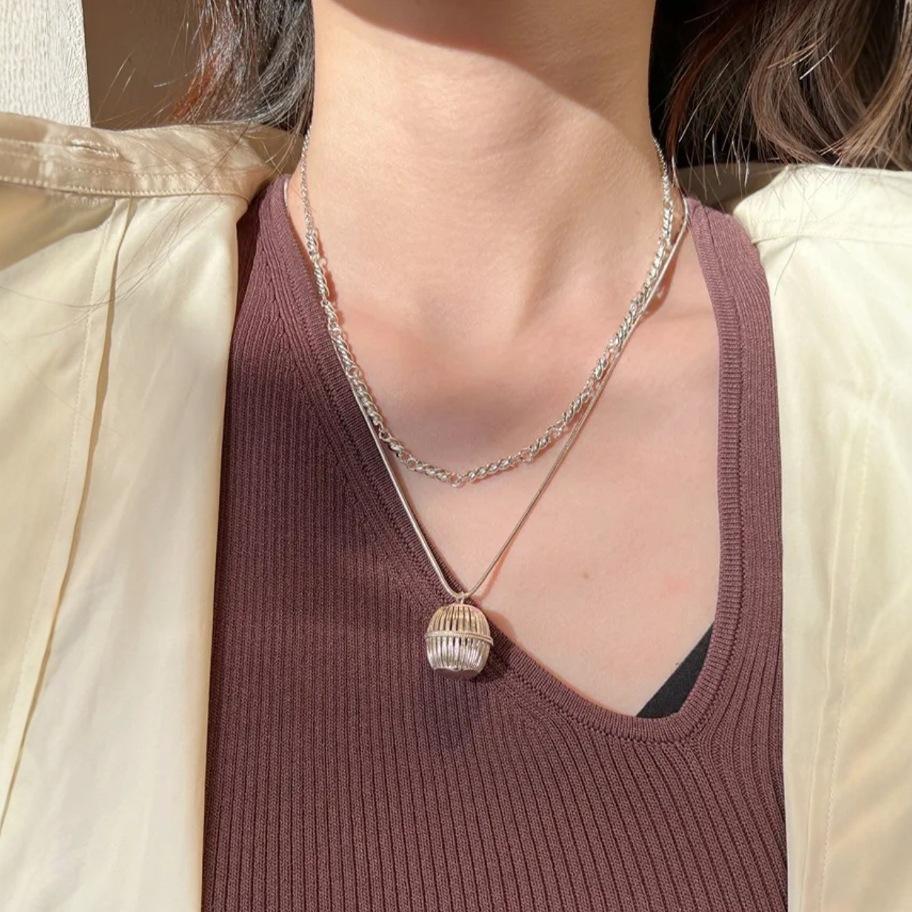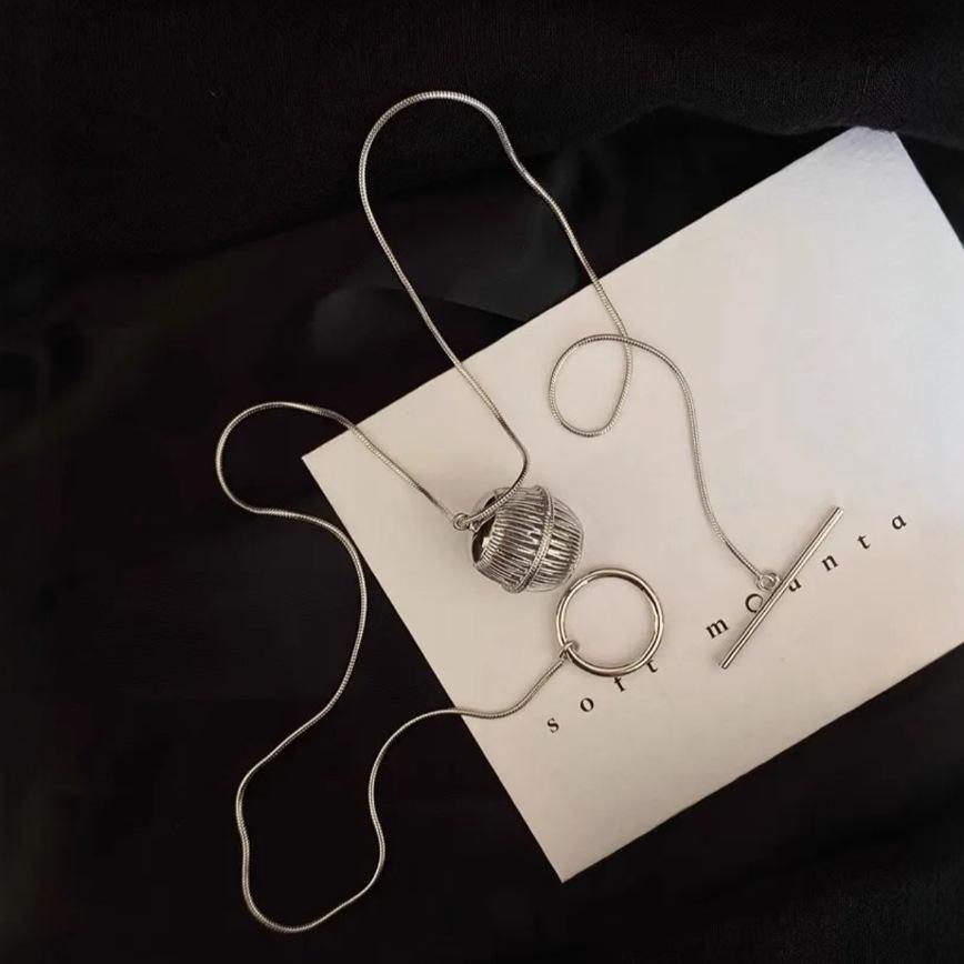 Nueva tendencia de moda, colgante de estilo europeo y americano, retro, de alta gama, con cadena de lana y hebilla, collar con cuentas huecas.
