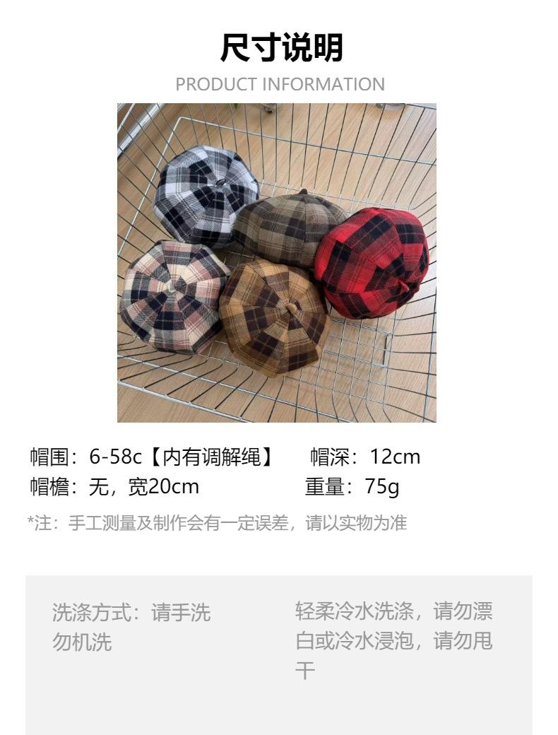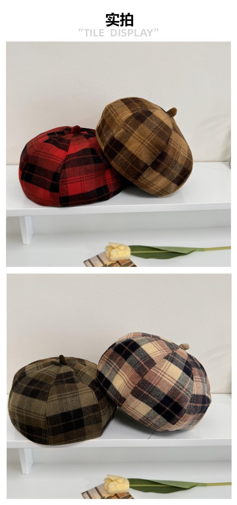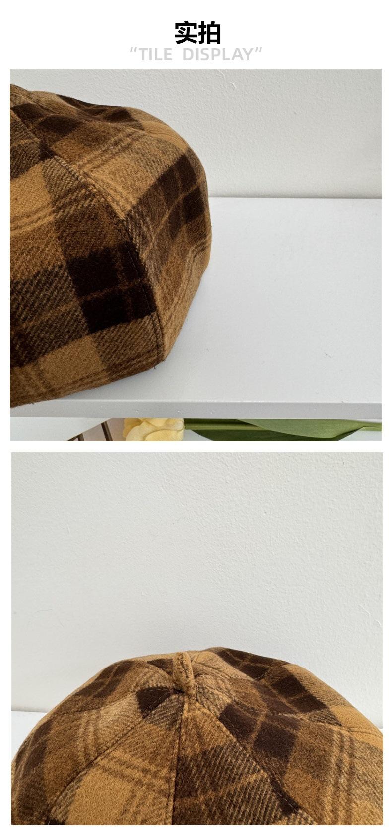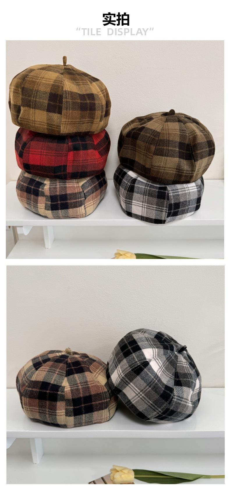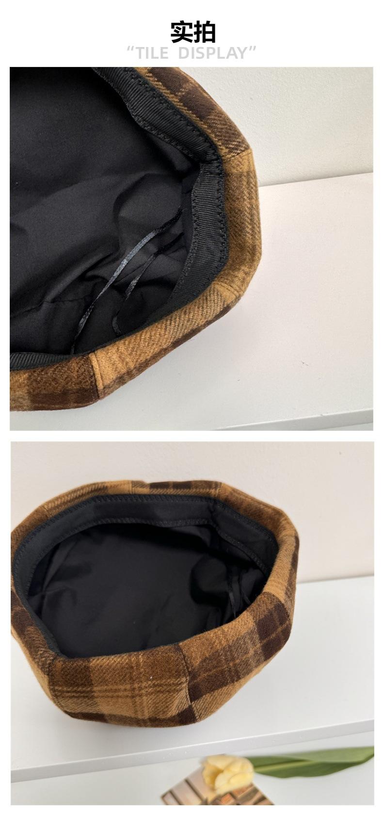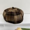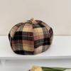 Otoño e Invierno Nuevo Color Gorra Octogonal a Cuadros Boina Artística Coreana para Mujer que Reduce la Edad Gorra de Lana Retro Británica