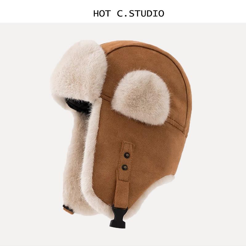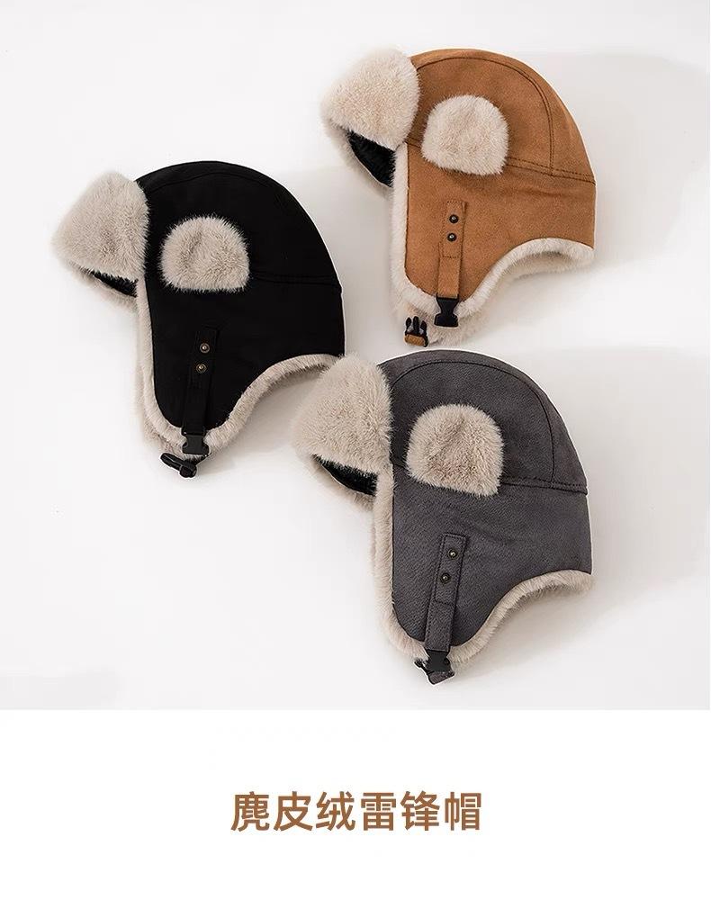 Sombrero Lei Feng para mujer invierno cálido gamuza sombrero con protección para las orejas para hombre ciclismo a prueba de viento a prueba de frío noreste engrosado estilo coreano combinable