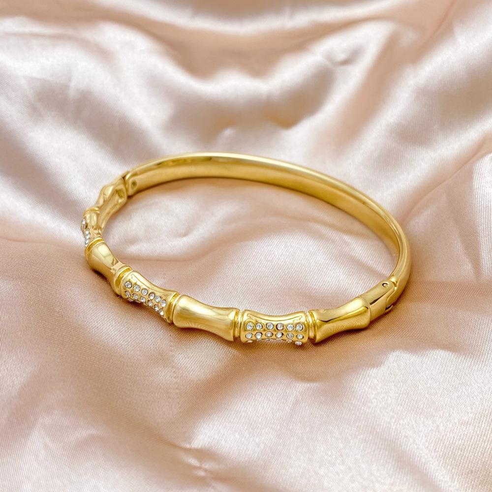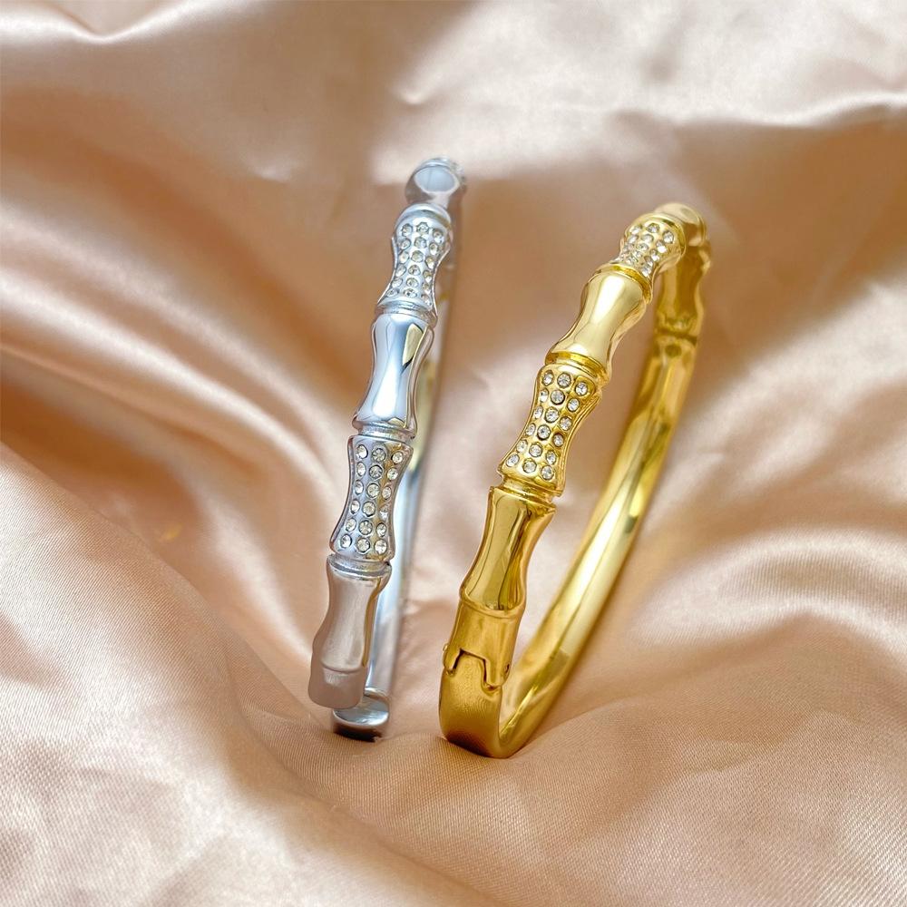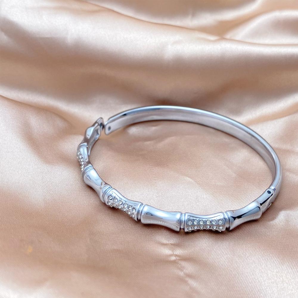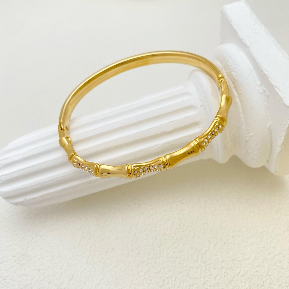 Pulsera Europea y Americana Transfronteriza Micro-incrustada de Zircón Bambú Acero Titanio para Mujer Nicho Exquisito Moda Combinable Pulsera Inmarcesible
