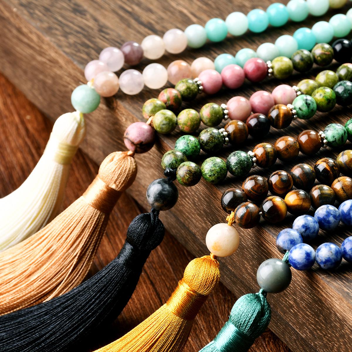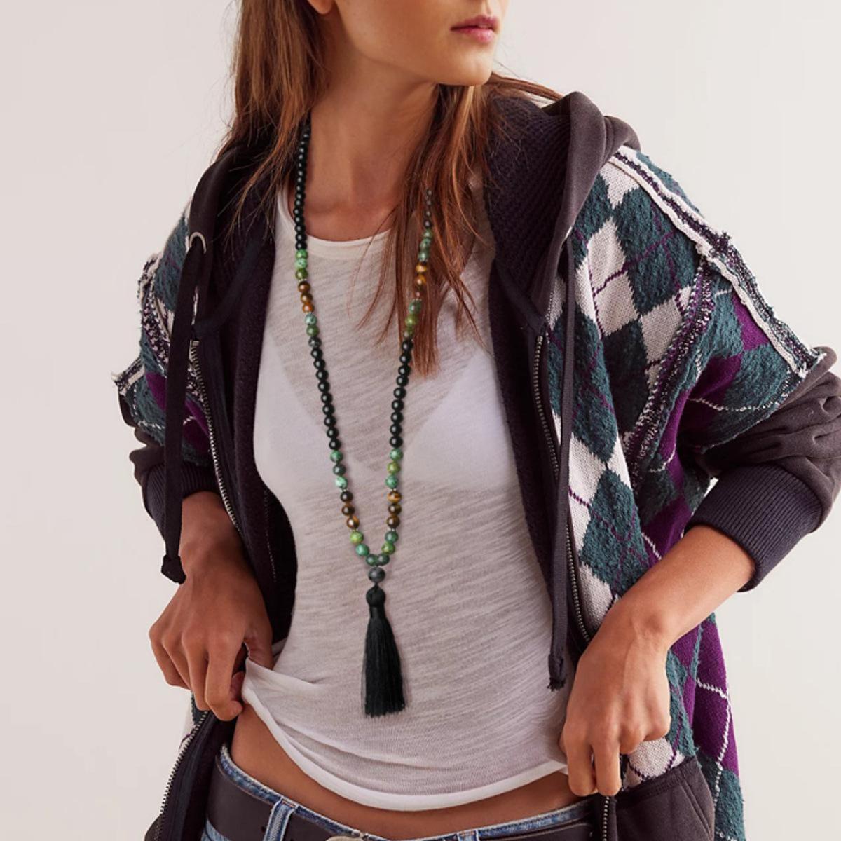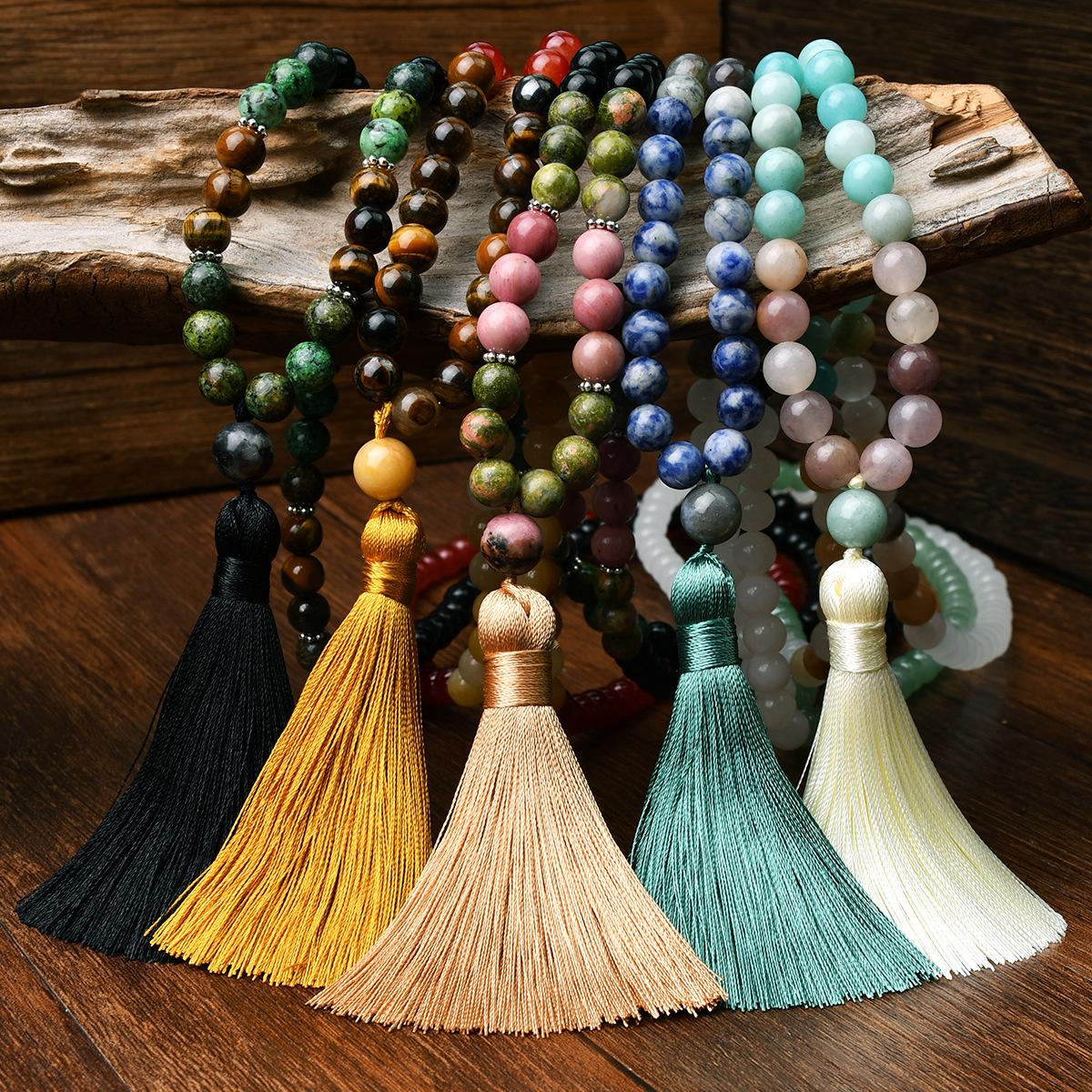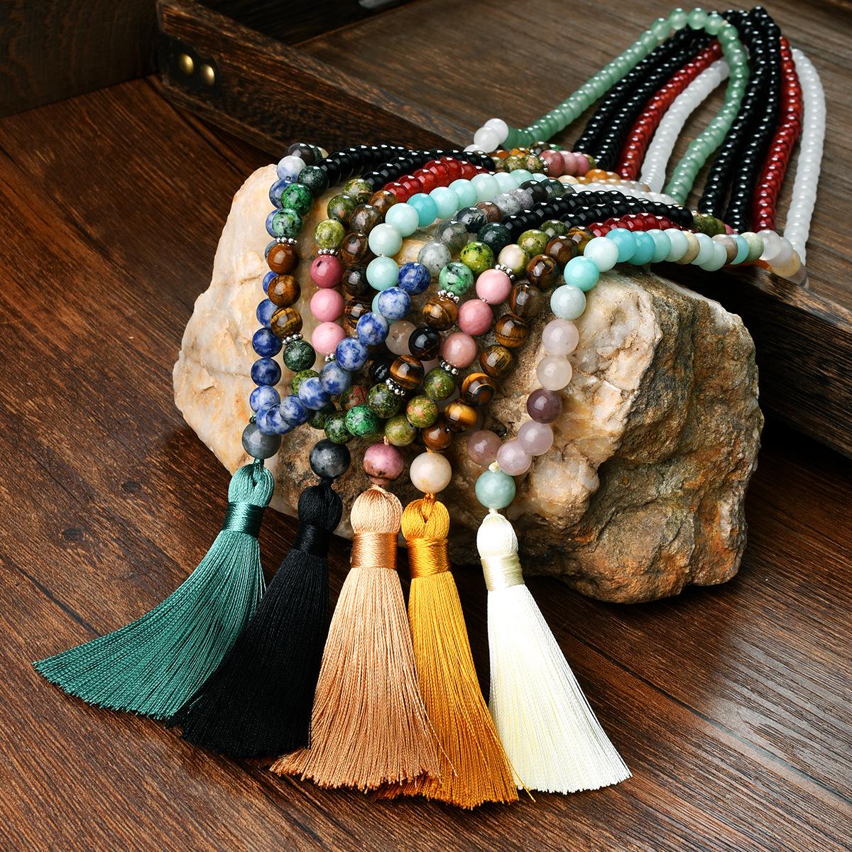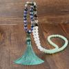 Collar largo bohemio cuentas de piedra natural borla de alta calidad cadena para suéter