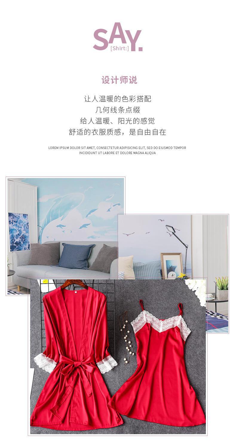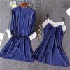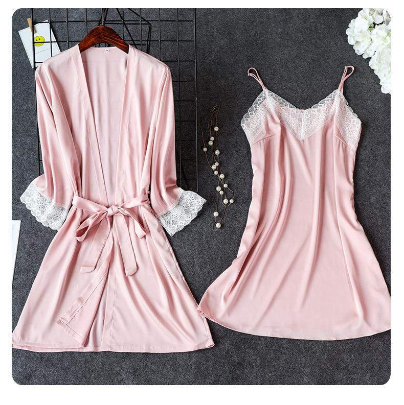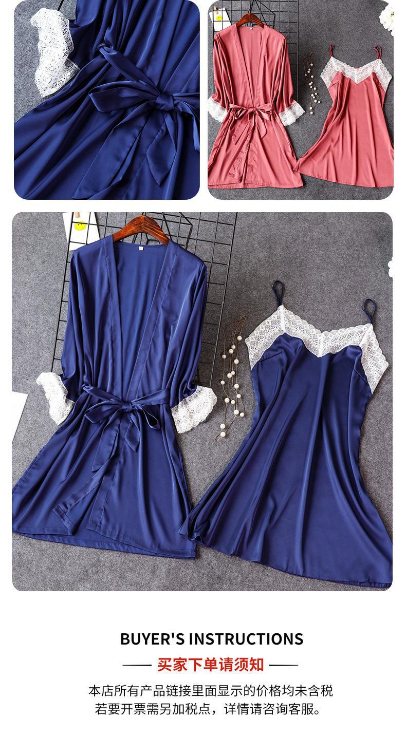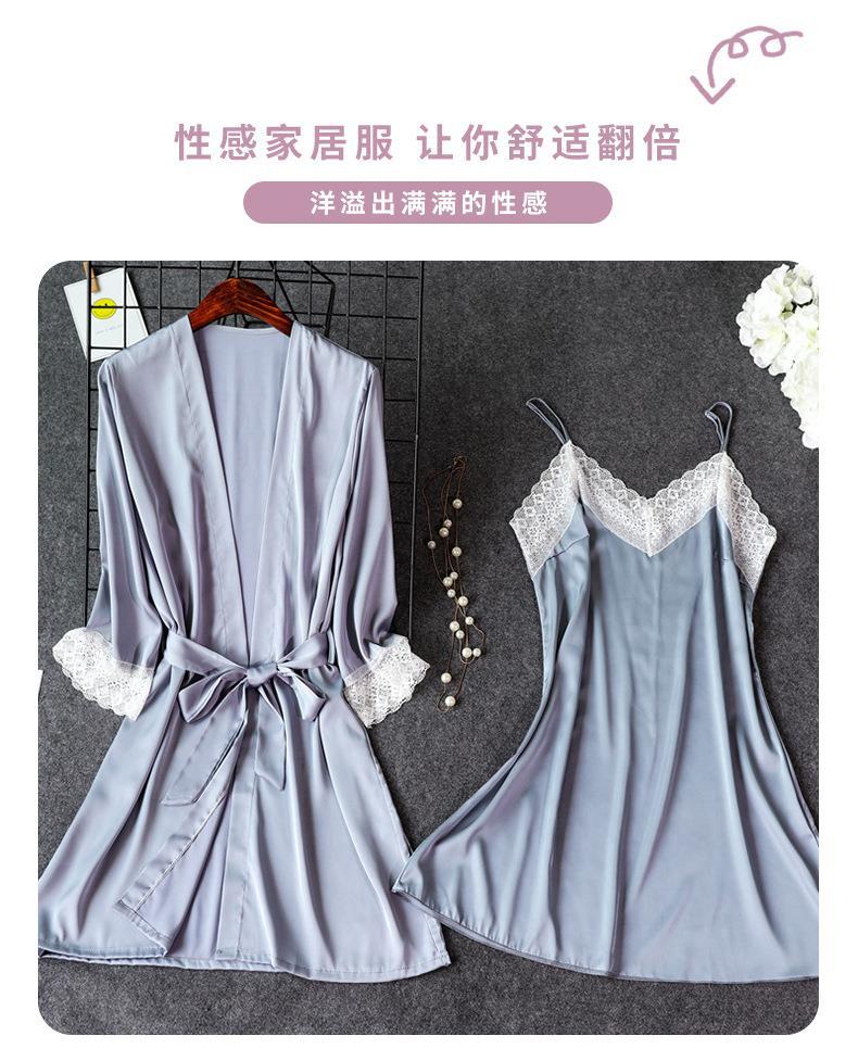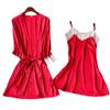 Primavera y Verano Sexy Dos Piezas Bata de Mañana Pijama para Mujer Imitación Seda Falda Colgante Camisón Bata Conjunto Delgado Ropa de Casa para Salir