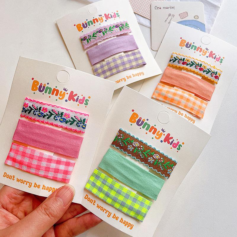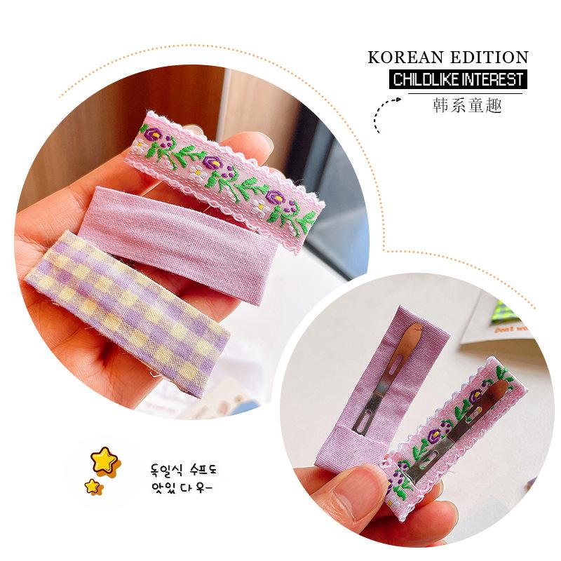 Pinza para flequillo cuadrada con bordado a cuadros estilo coreano, color brillante, para niños, pinza para el pelo rota, accesorios para el pelo del bebé