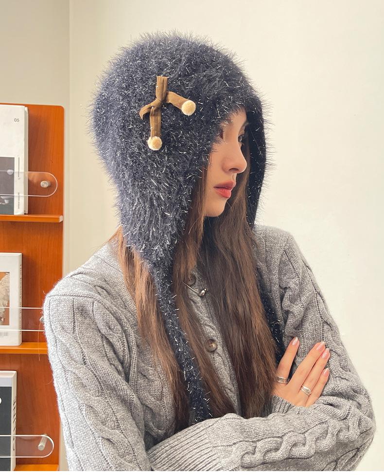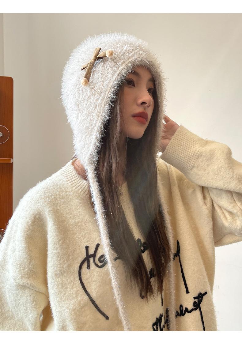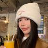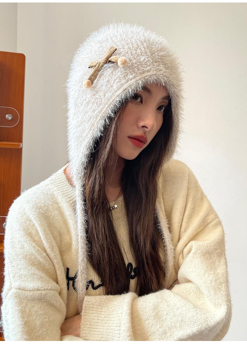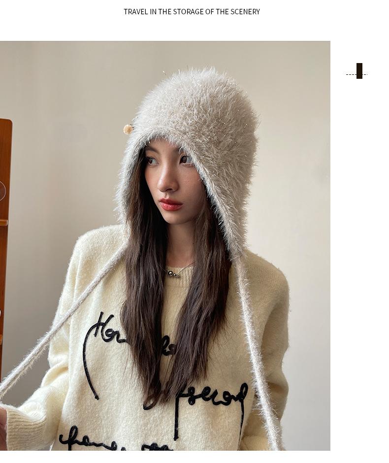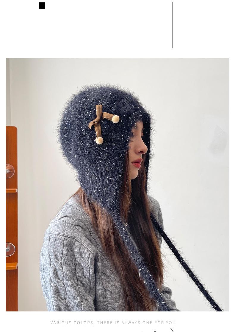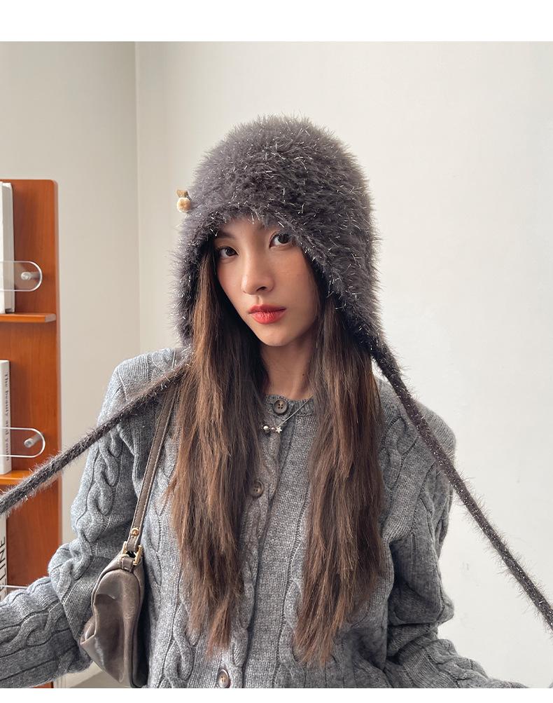 Estilo Coreano Nuevo Lindo Gorro de Lana para Mujer Otoño e Invierno Cálido con Cordones Gorro Montón Muestra Cara Pequeña Tejido Protección para Orejas Dedo