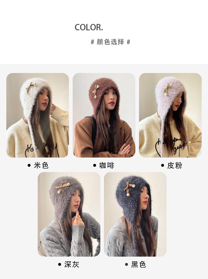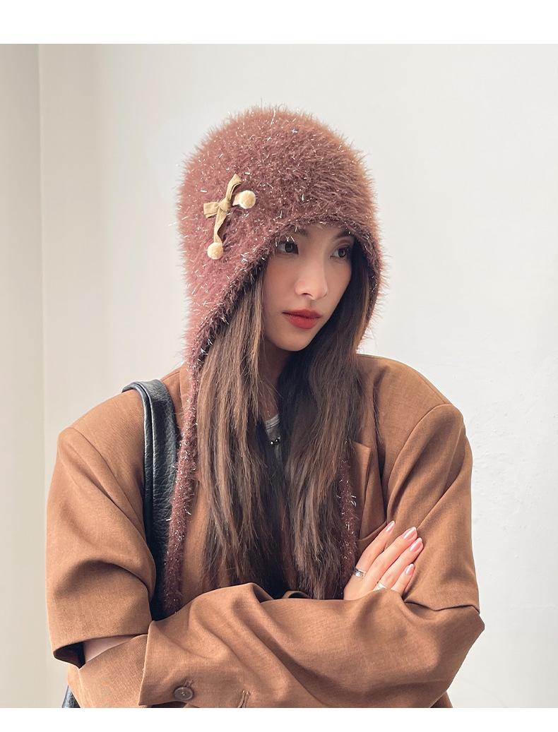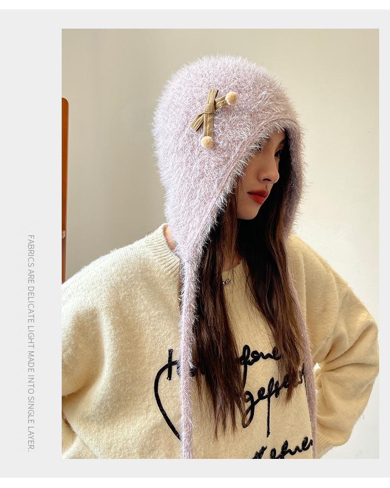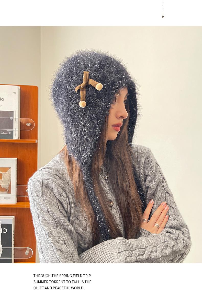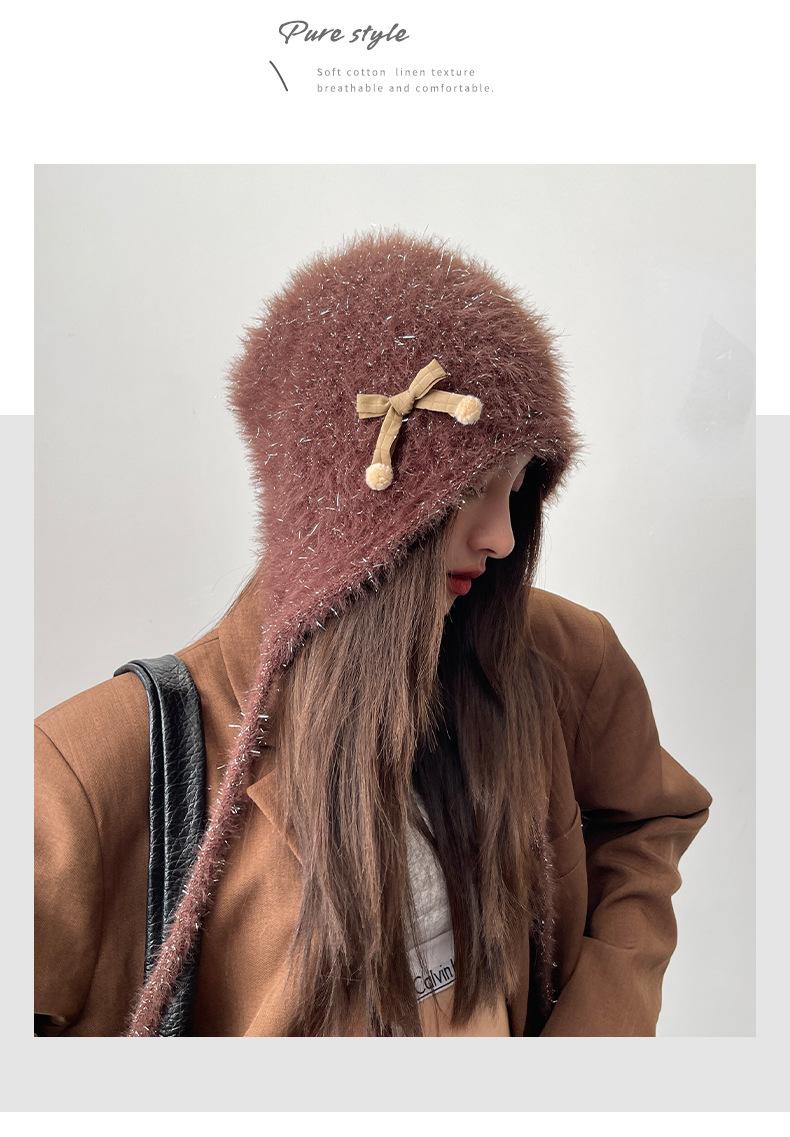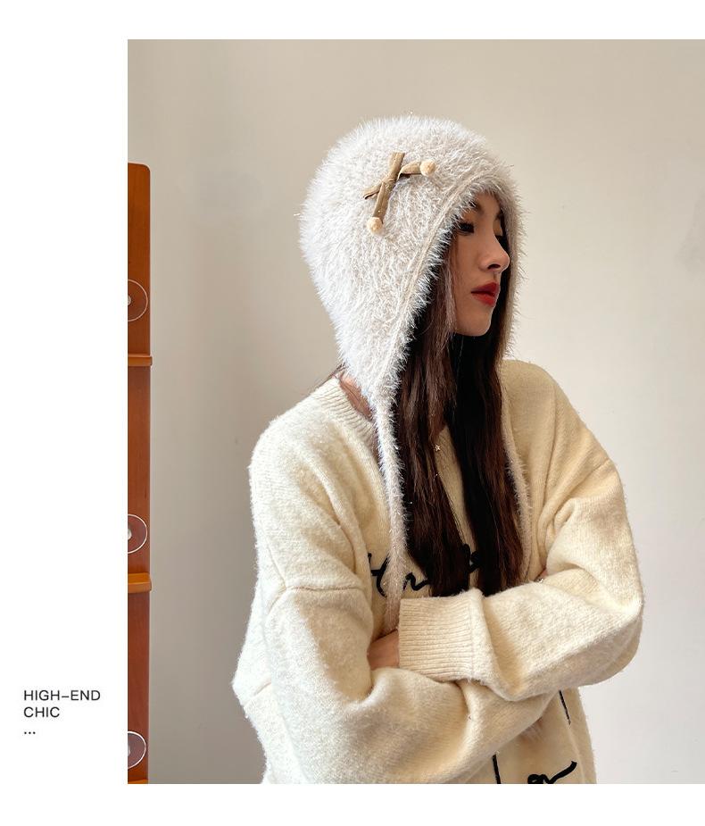 Estilo Coreano Nuevo Lindo Gorro de Lana para Mujer Otoño e Invierno Cálido con Cordones Gorro Montón Muestra Cara Pequeña Tejido Protección para Orejas Dedo