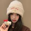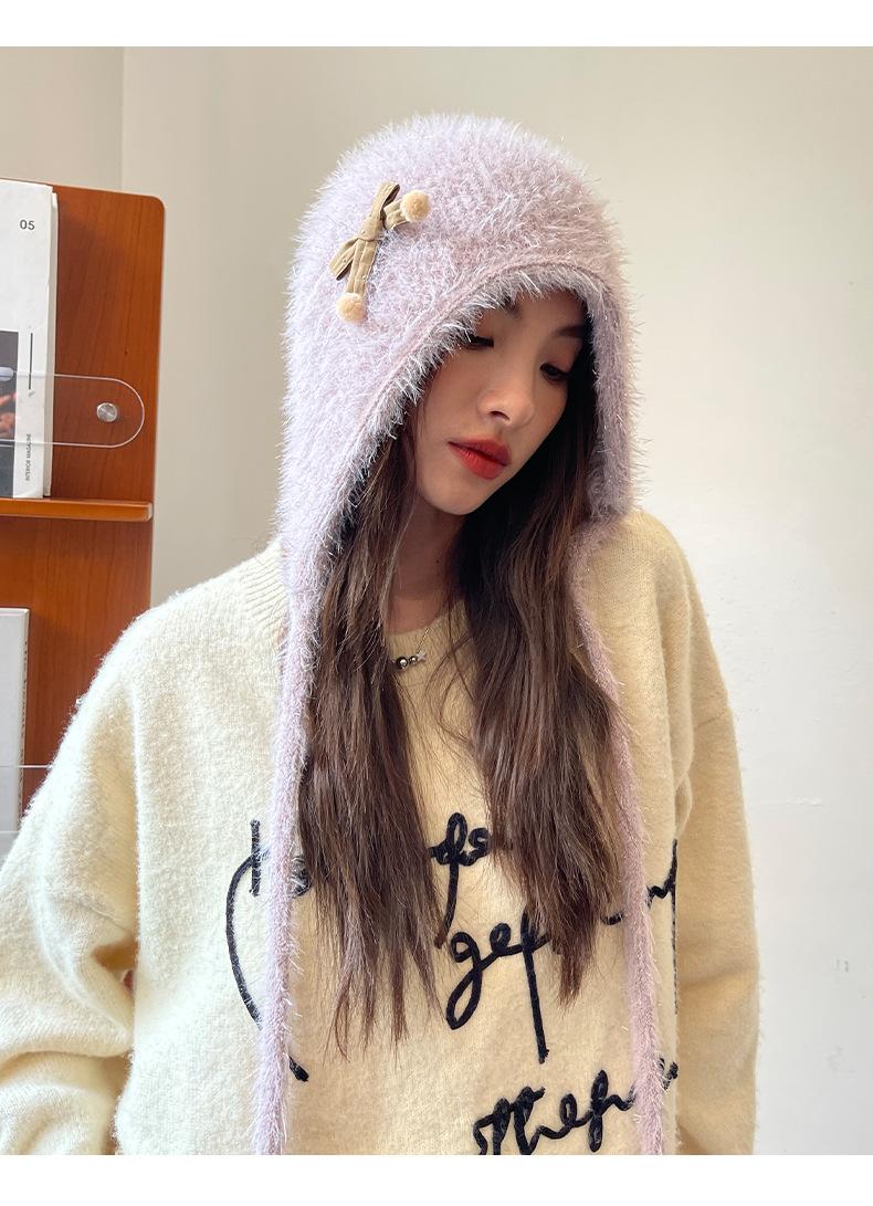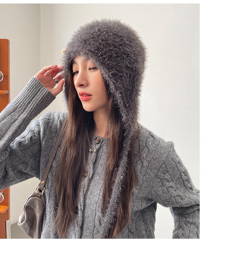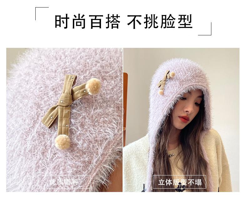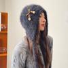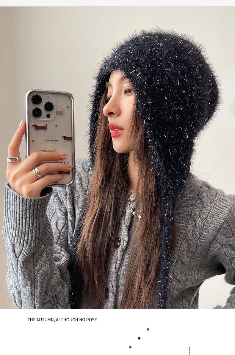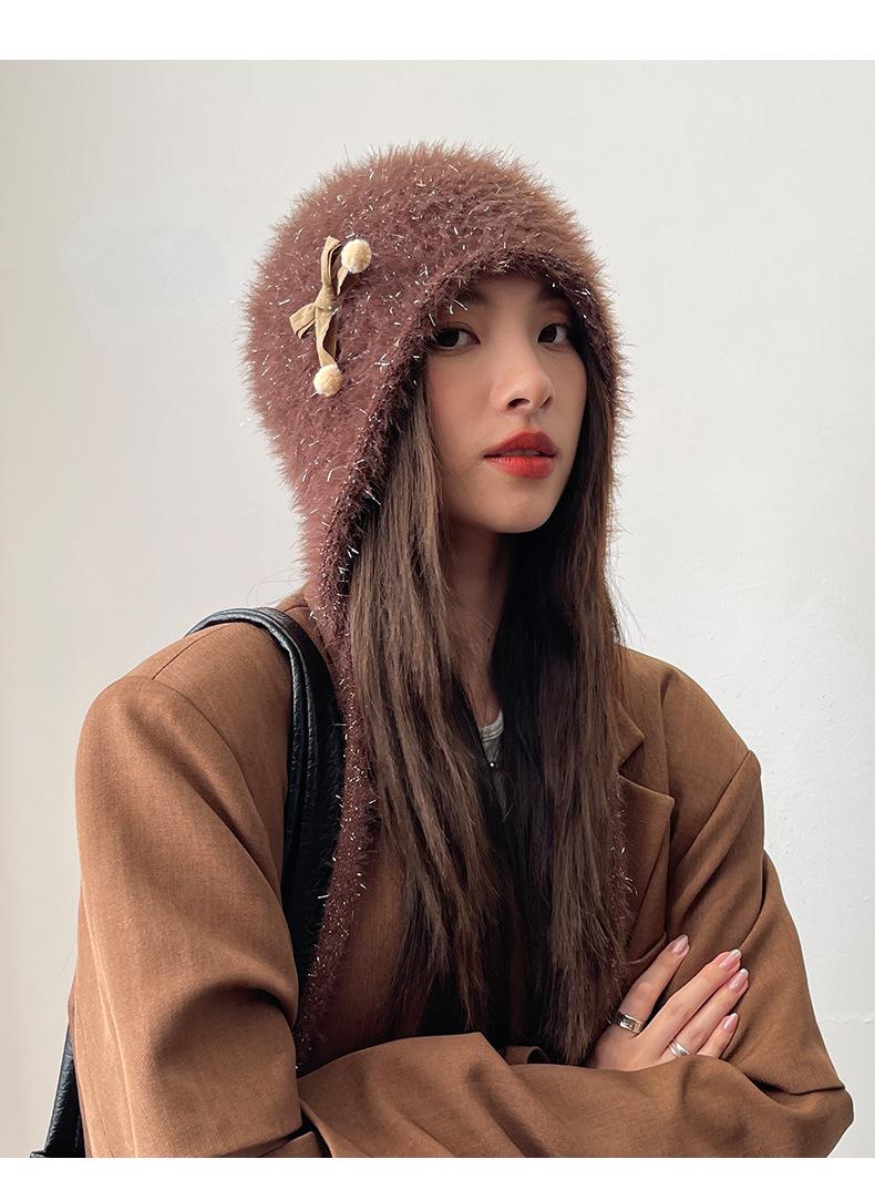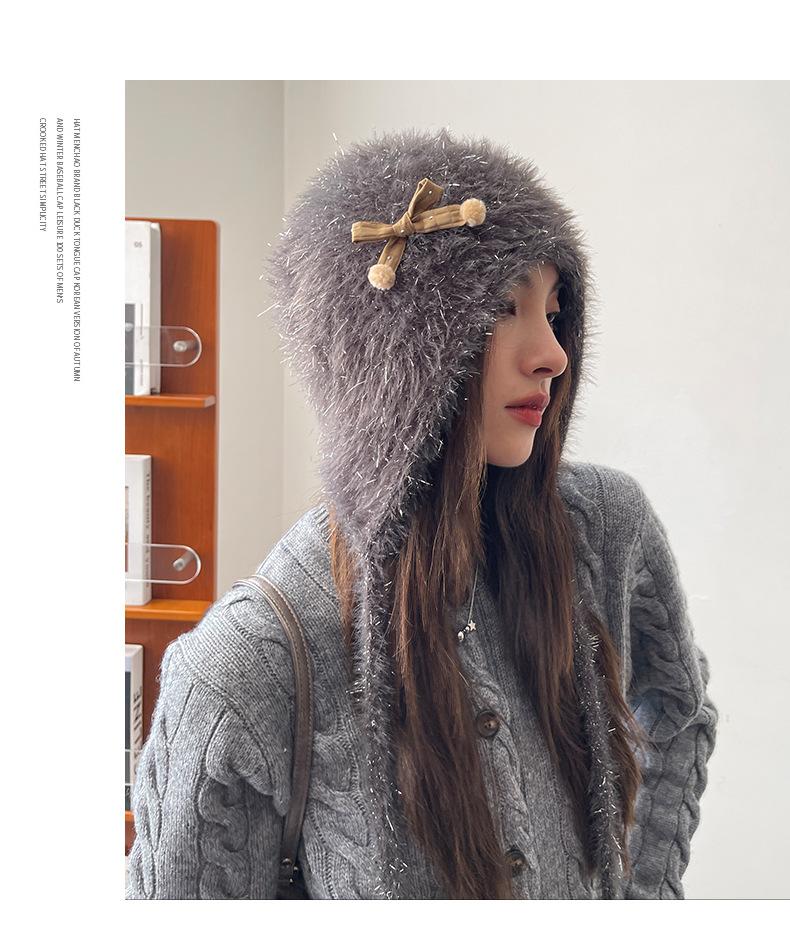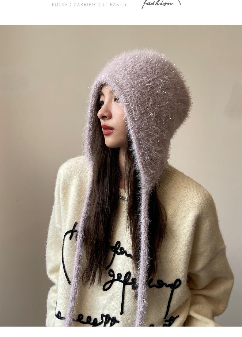 Estilo Coreano Nuevo Lindo Gorro de Lana para Mujer Otoño e Invierno Cálido con Cordones Gorro Montón Muestra Cara Pequeña Tejido Protección para Orejas Dedo