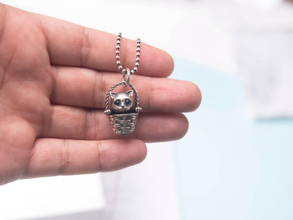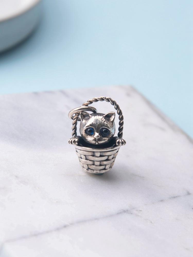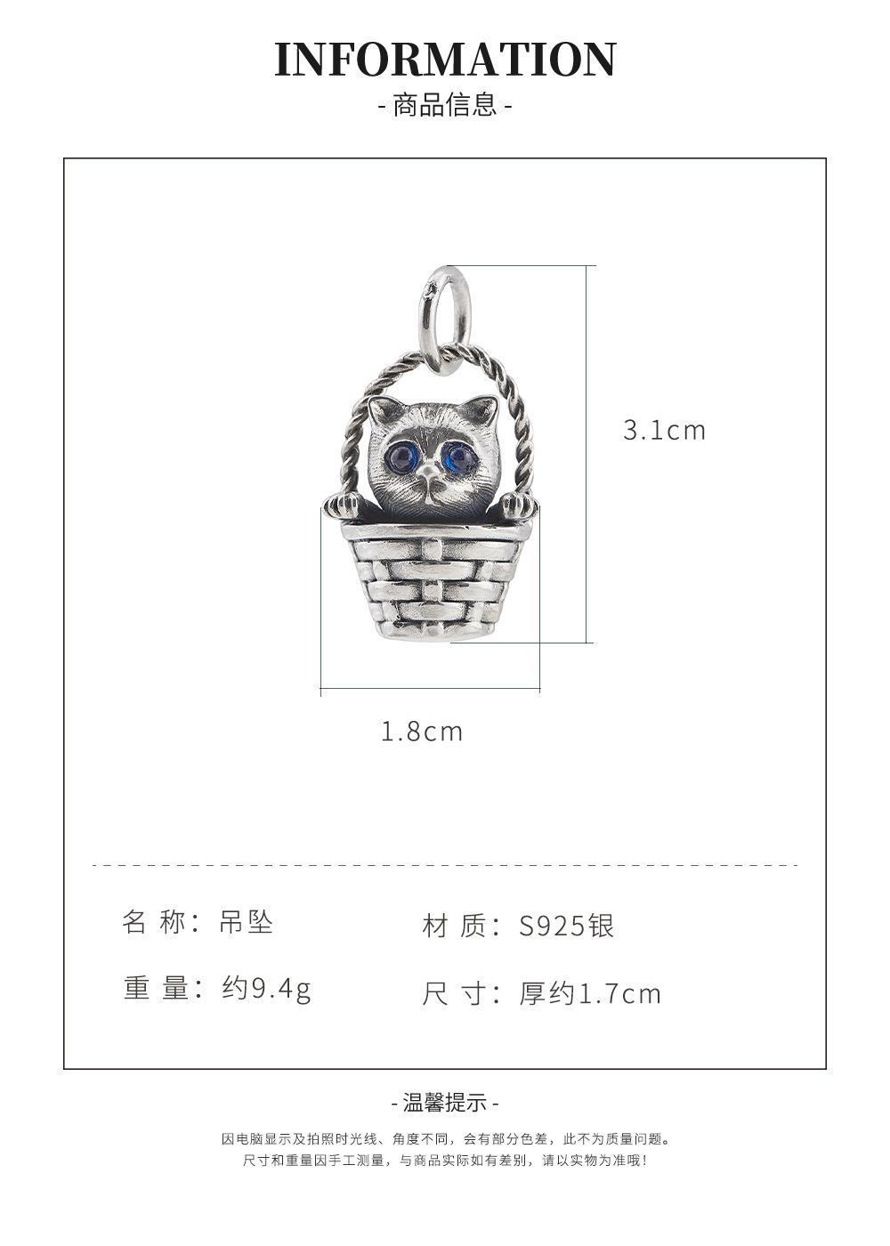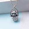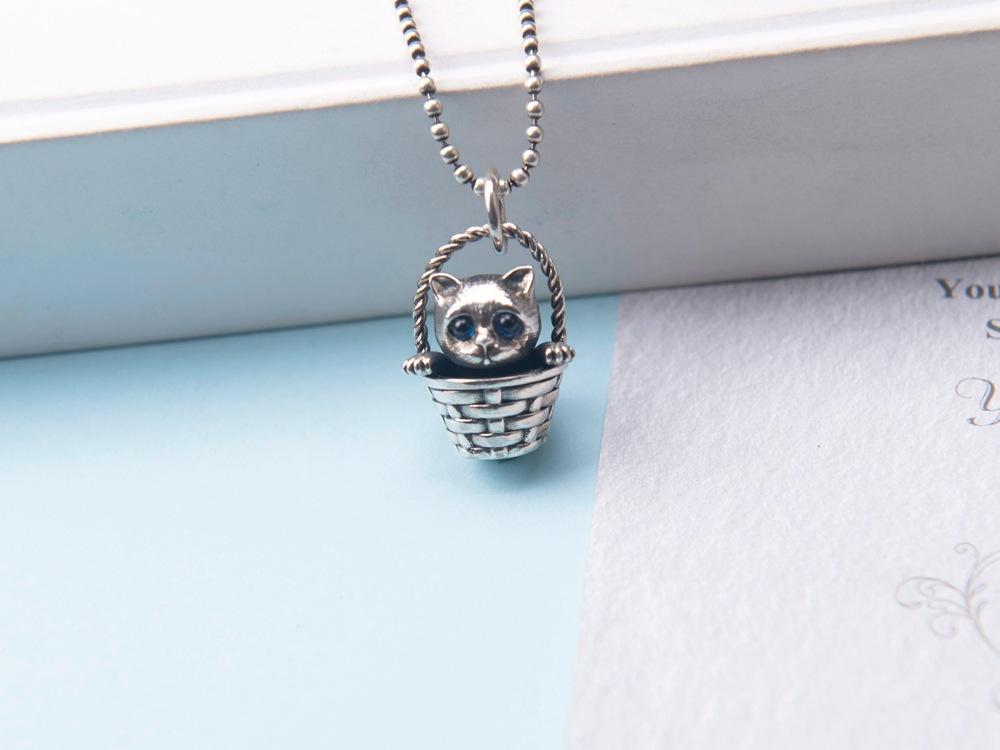 Colgante de cesta de flores vintage de moda del rey de los ciervos dorados, colgante de gatito de plata S925, colgante de clavícula para mujer