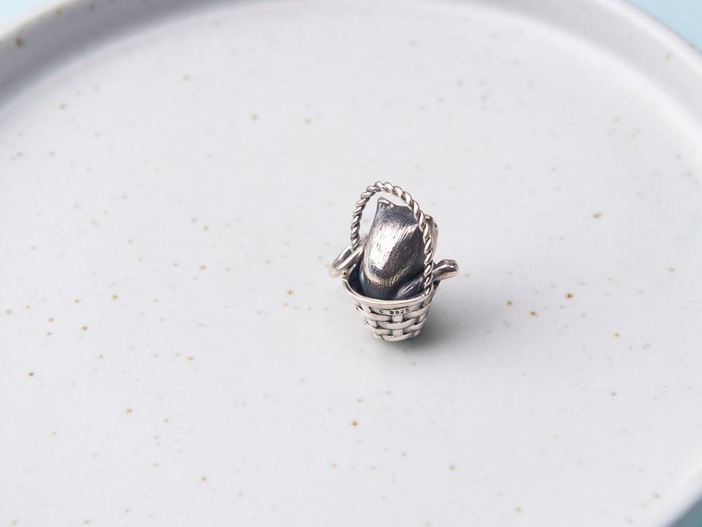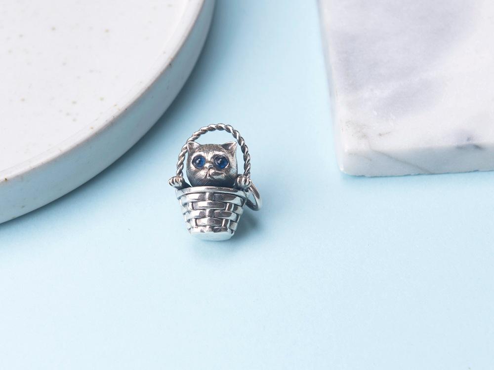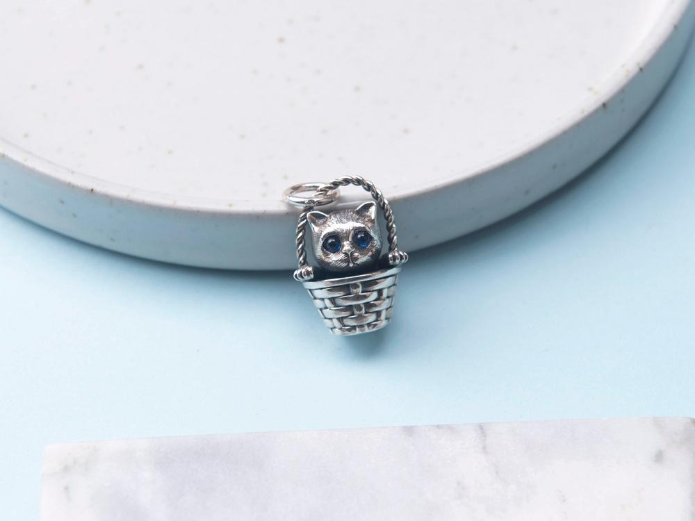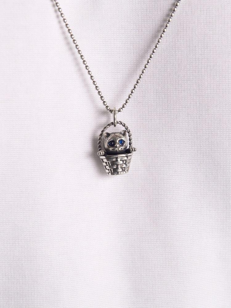 Colgante de cesta de flores vintage de moda del rey de los ciervos dorados, colgante de gatito de plata S925, colgante de clavícula para mujer