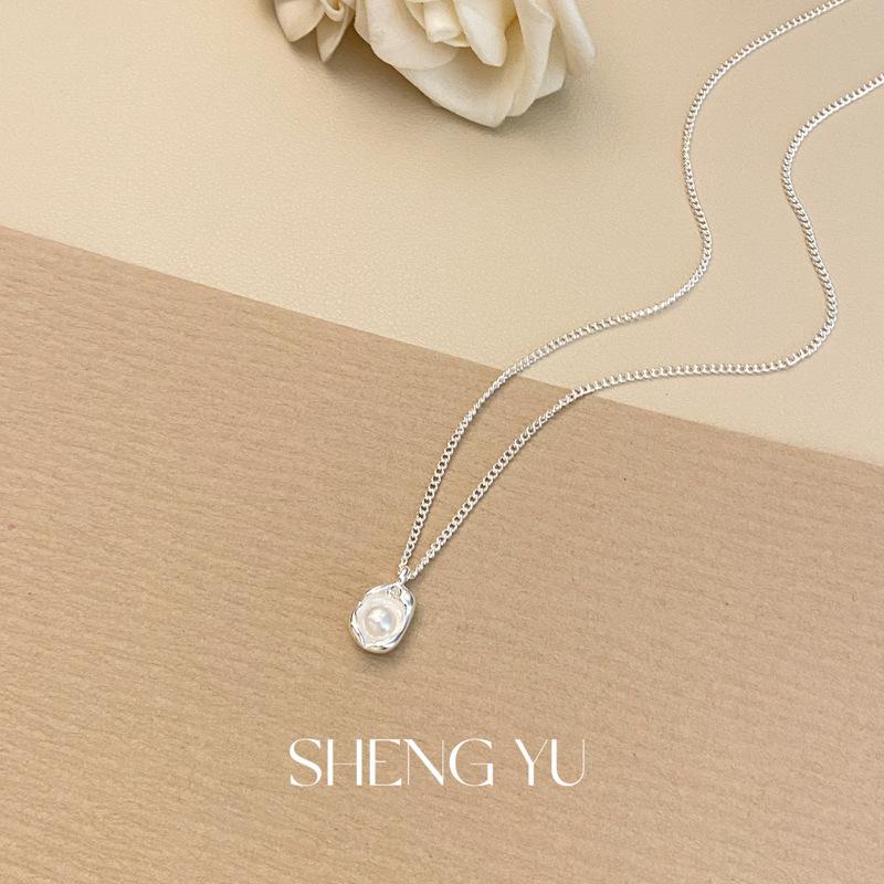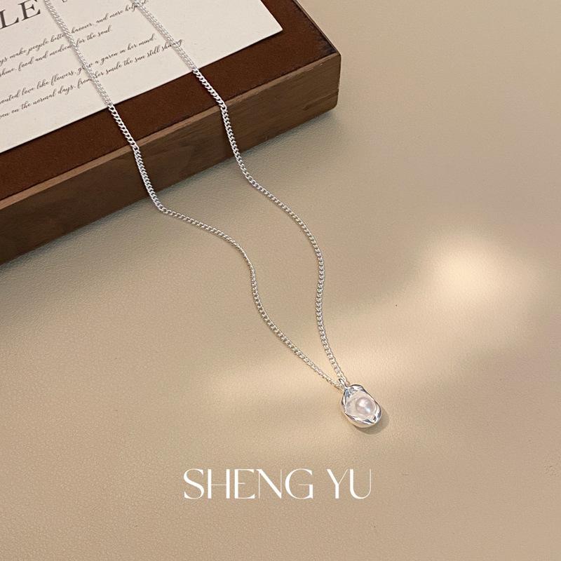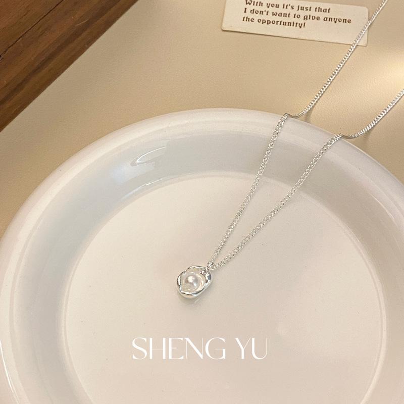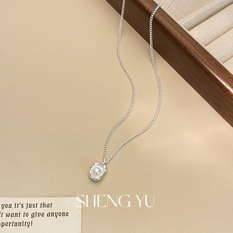 Collar de perlas de imitación de concha de moda francesa, exquisito, sencillo, combinable, de alta gama, para mujer, de lujo, ligero y con cadena de clavícula.