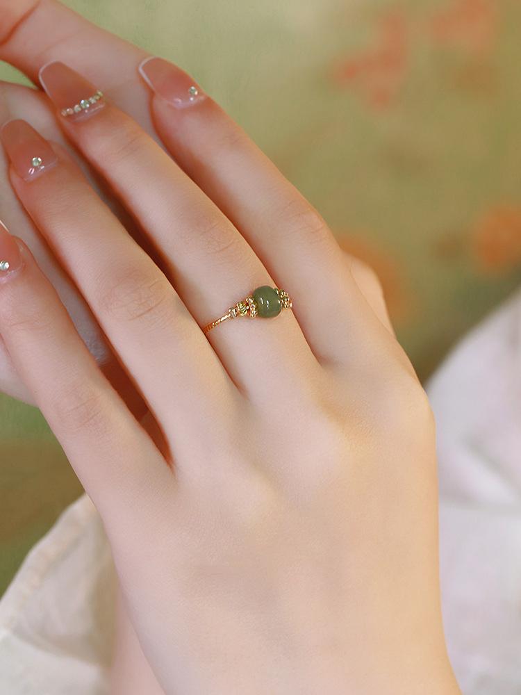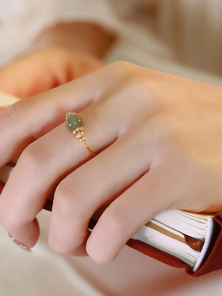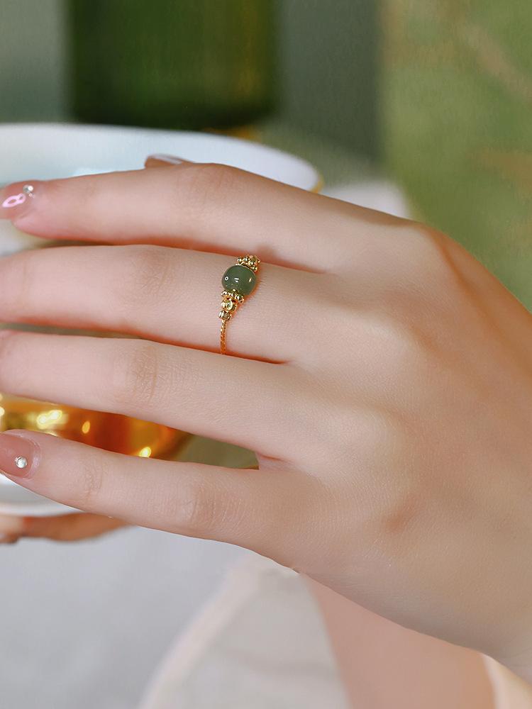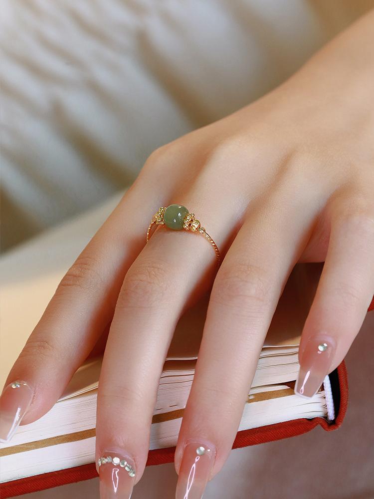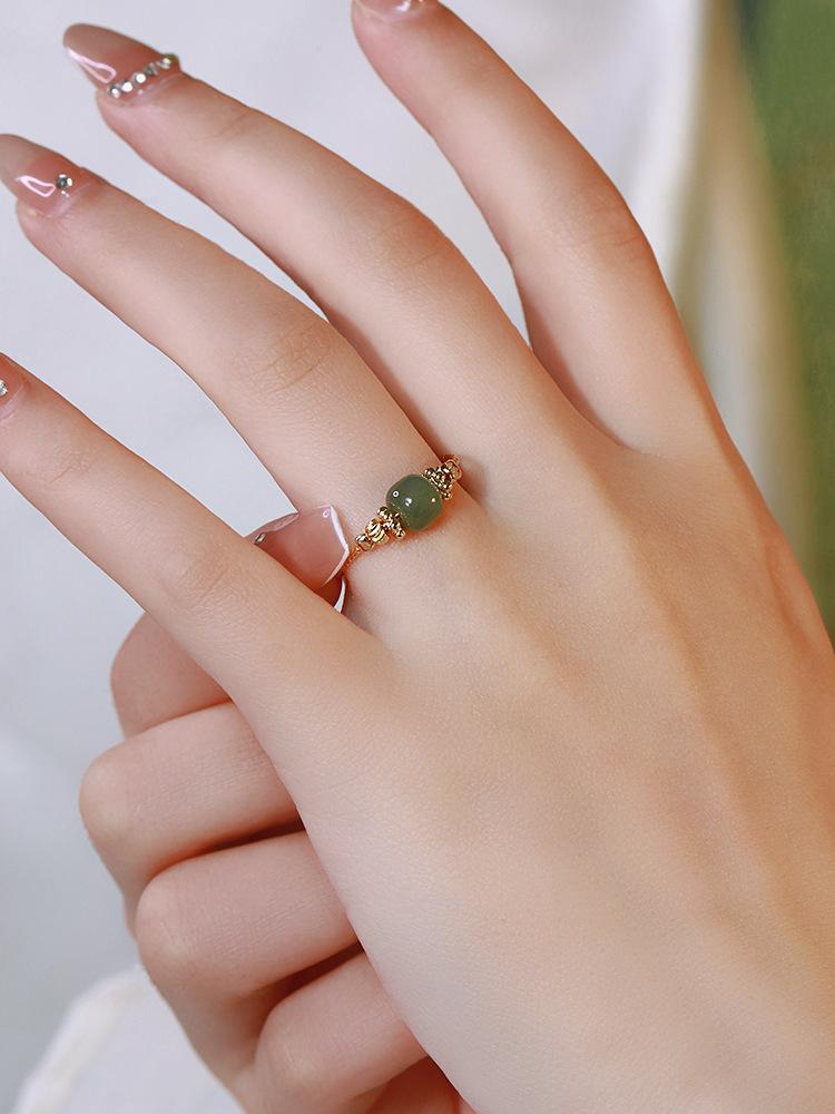 Anillo de Jade Hetian para Mujer Boca Viva Ajustable Anillo de Dedo Línea de Flor de Coche Antiguo Dulce Moda Femenina Pulsera Combinable